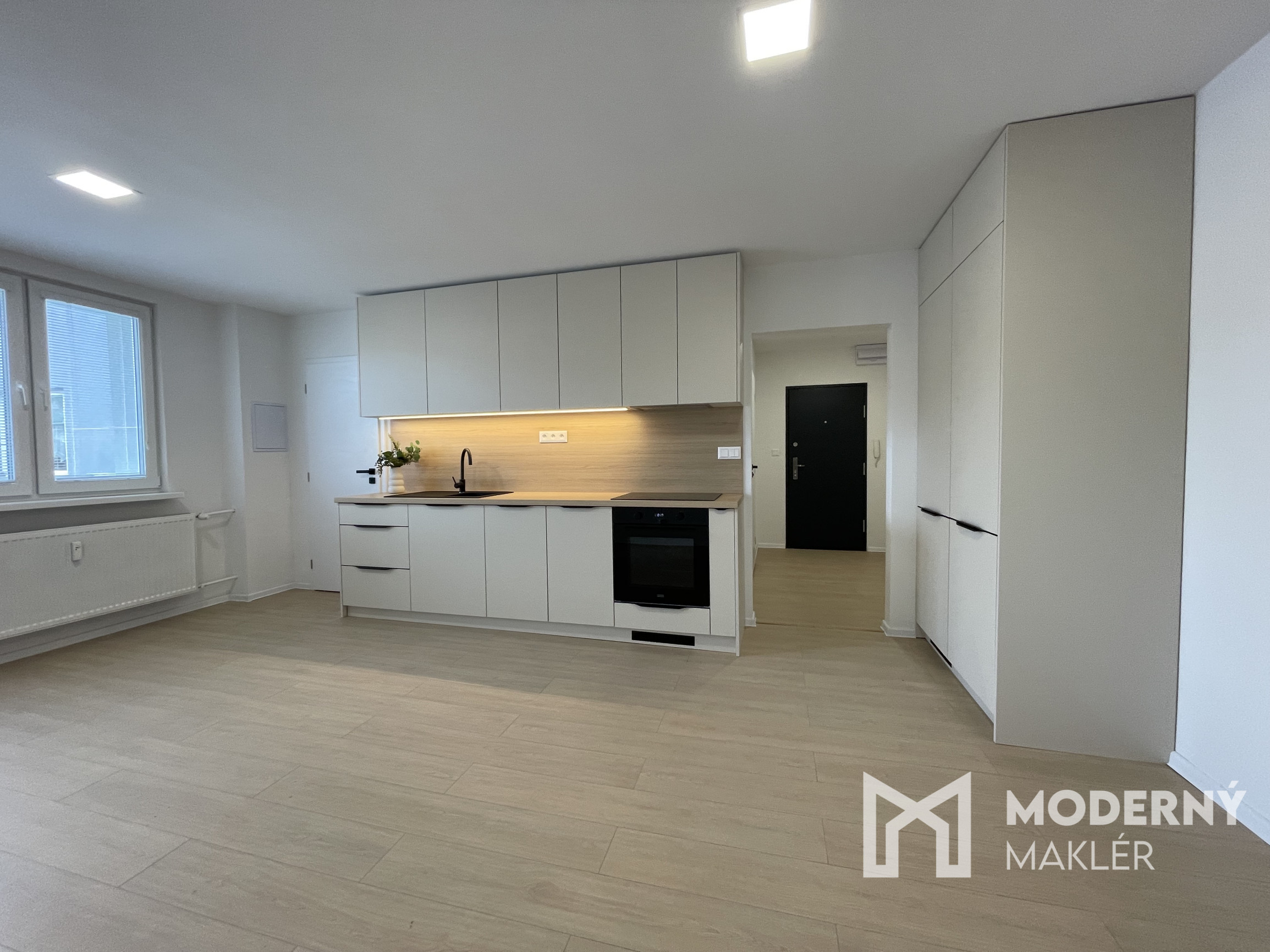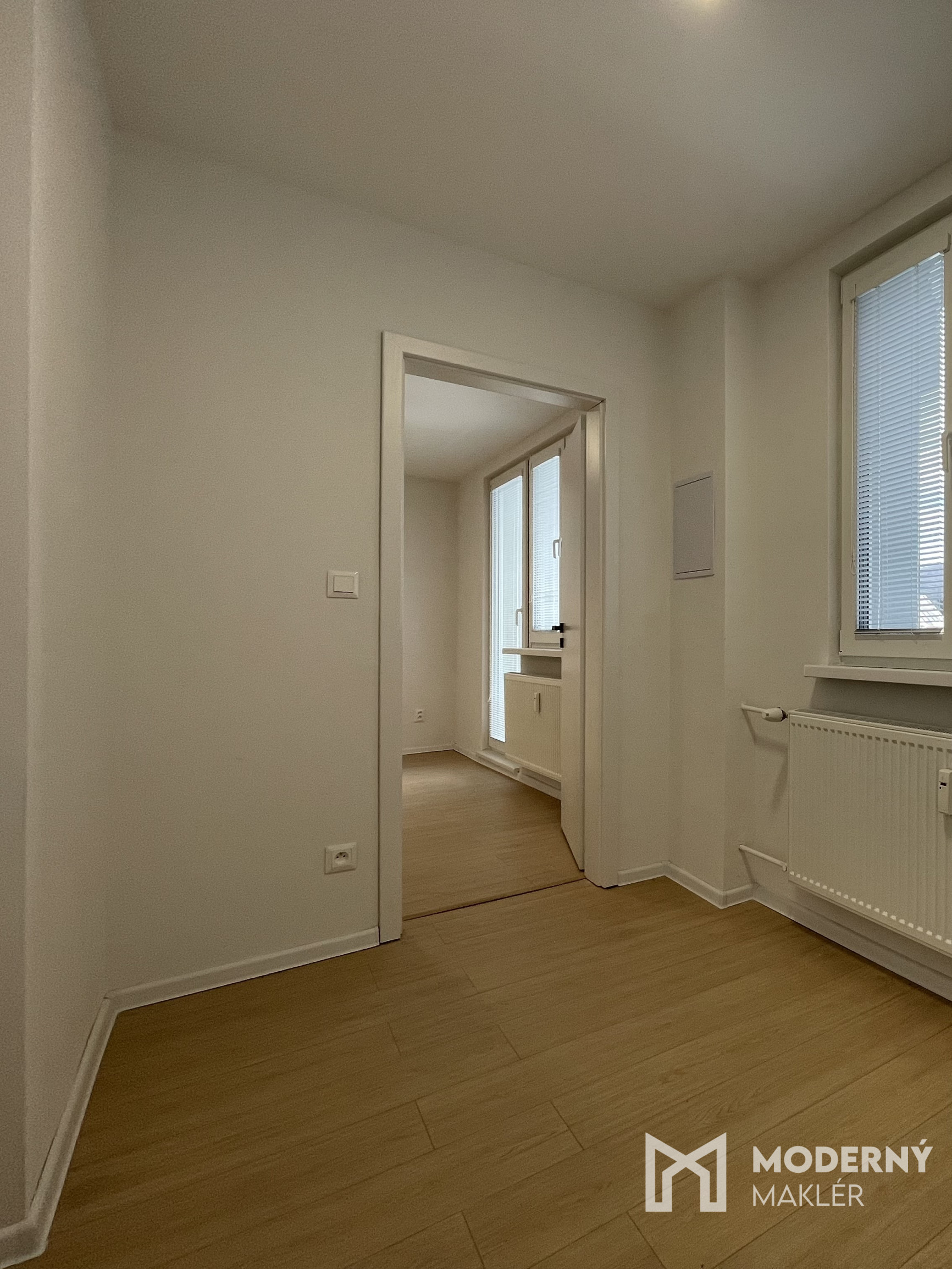 Nehnuteľnosť pozostáva zo vstupnej chodby, z ktorej sa po pravej strane nachádza vstup do kúpeľne s oddelene vyčlenenou toaletou. Z chodby pokračujete do priestrannej obývacej časti spojenej s kuchyňou, ďalej nájdete vstup do samostatnej izby, ktorá môže slúžiť ako spálňa. Z obývacej časti máte prístup na balkón s juhozápadnou orientáciou, ktorá zabezpečuje dostatočné množstvo prirodzeného svetla počas celého dňa.