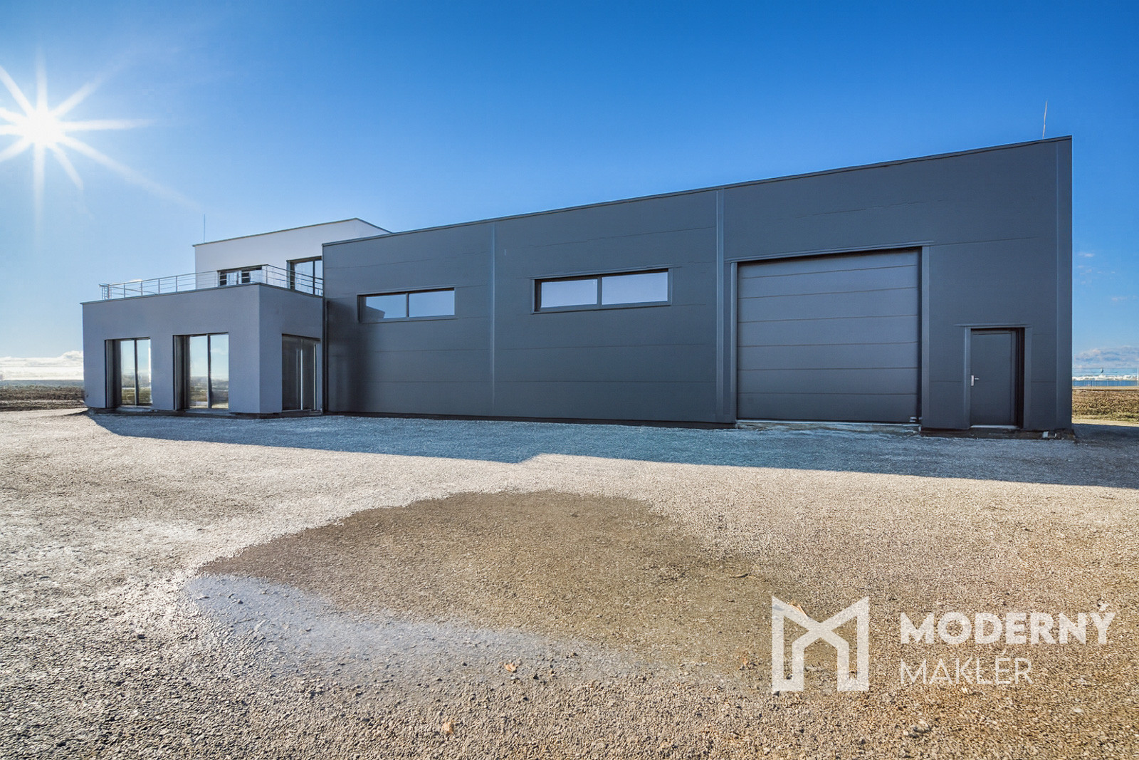 Objekt je rozdelený na administratívnu časť a skladovú halu, pričom obe sú prepojené tak, aby tvorili praktický a funkčný celok pre moderný chod firmy. Administratívna časť má spolu 177,85 m² (116,53 m² na prízemí + 61,32 m² na poschodí) a skladová hala disponuje výmerou 211,89 m². Súčasťou druhého podlažia je navyše terasa so zelenou strechou o rozlohe 39 m².