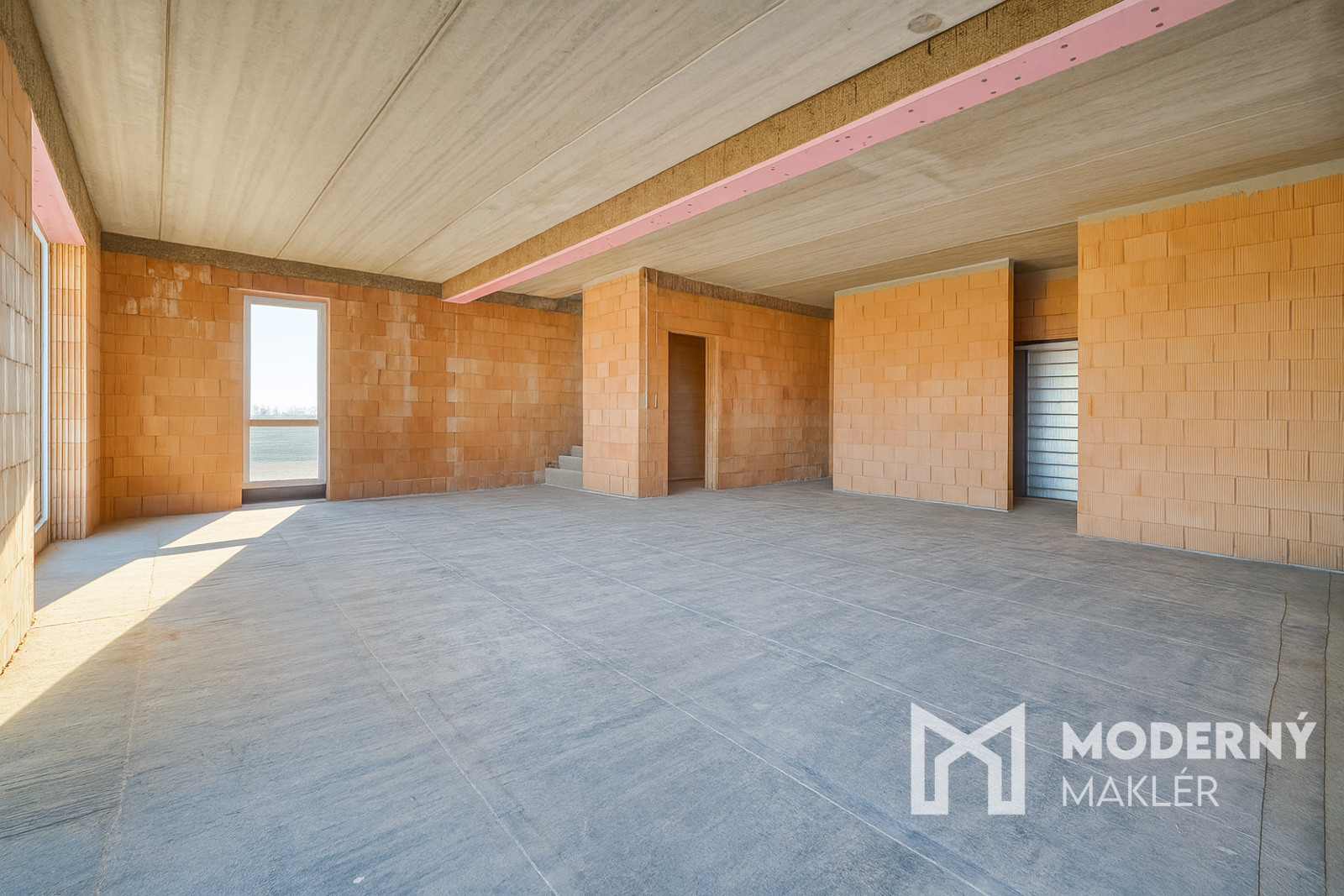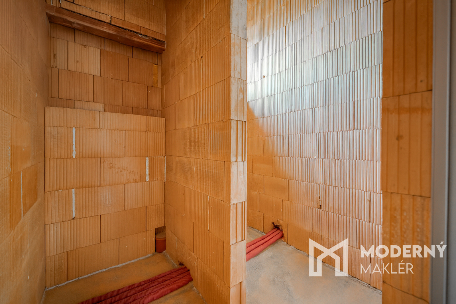 Nehnuteľnosť je postavená z kvalitných materiálov s dôrazom na pevnosť, odolnosť a nízke prevádzkové náklady. Administratívna časť je realizovaná z tehál 300 mm, vnútorné priečky majú hrúbku 100–150 mm a stropy sú zo železobetónových panelov Spiroll s hrúbkou 265 mm. Zateplenie pozostáva z kombinácie EPS a PIR v hrúbkach 150–200 mm. Strecha je jednoplášťová, tepelne izolovaná PIR/EPS a prekrytá PVC fóliou so systémom bezpečného odvodnenia. Skladová hala je vyhotovená zo sendvičových panelov, ktoré poskytujú vysokú pevnosť a dlhú životnosť. Navrhnutý zdroj vykurovania (tepelné čerpadlo) nie je súčasťou ceny, avšak rozvody podlahového kúrenia budú pripravené spolu s rozvodmi elektriny a vody. V tomto štádiu výstavby budú zároveň dokončené aj potery.