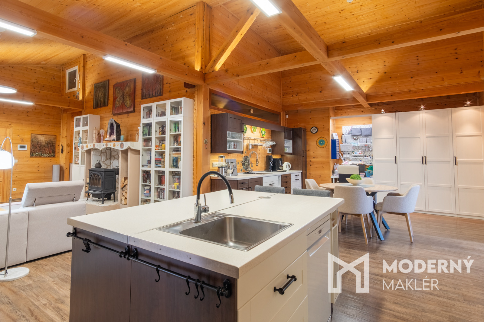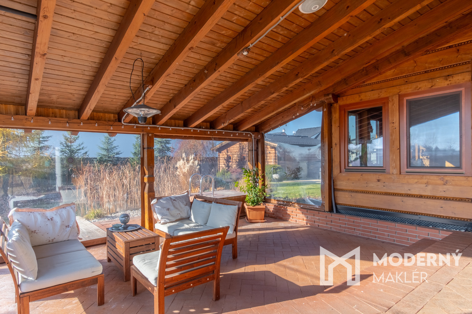 Moderný maklér ponúka na predaj jedinečný rodinný dom vo Veľkom Slavkove, postavený v roku 2014. Nehnuteľnosť predstavuje modernú drevostavbu, ktorá svojím architektonickým riešením harmonicky zapadá do okolitej prírody. Dom disponuje rozsiahlou terasou a podpivničenou dvojgarážou a nachádza sa na tichej ulici s úchvatným výhľadom na Vysoké Tatry. Výnimočným prvkom tejto nehnuteľnosti je kúpacie jazierko s rybičkami, ktoré vytvára jedinečnú atmosféru pokoja a relaxu. Pozemok s rozlohou 2 073 m² ponúka množstvo priestoru a možností na realizáciu rôznych predstáv nových majiteľov – od oddychovej zóny, cez záhradu až po ďalšie doplnkové stavby.