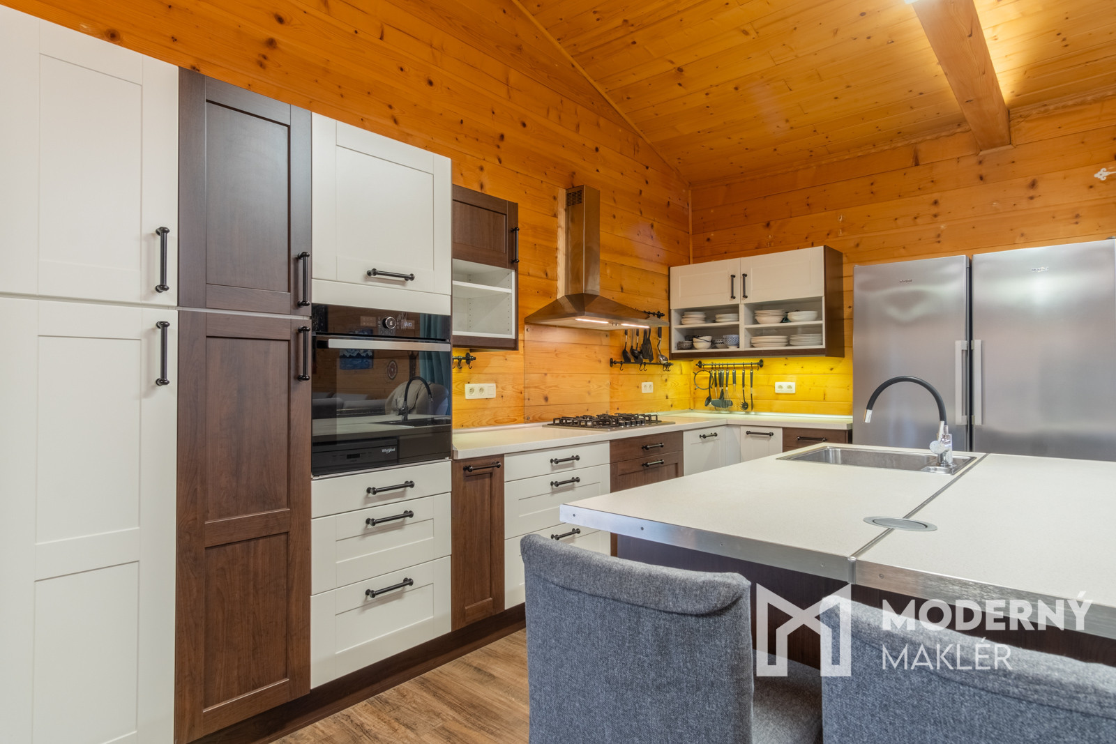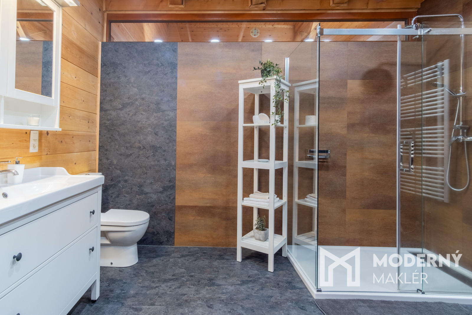 Nehnuteľnosť je výsledkom kombinácie kvalitnej drevostavby a murovaných prvkov, čo zabezpečuje výborné tepelnoizolačné vlastnosti a dlhú životnosť. Obvodová konštrukcia je zhotovená z masívnych smrekových hranolov (16×25 cm) s vnútorným zateplením z minerálnej vlny (10 cm) a obkladom zo smrekového dreva. Vnútorné priečky sú taktiež drevokonštrukčné, čo prispieva k prirodzenej mikroklíme v interiéri. Dom disponuje drevenými a plastovými oknami s izolačným trojsklom, smrekovými dverami z masívu, betónovými podlahami so zateplením (20 cm polystyrénu) a sedlovou strechou s krytinou Bramac. O vykurovanie sa starajú elektrické konvektory Atlantic v kombinácii s liatinovými krbovými kachľami Jotul s dvojitým spaľovaním.