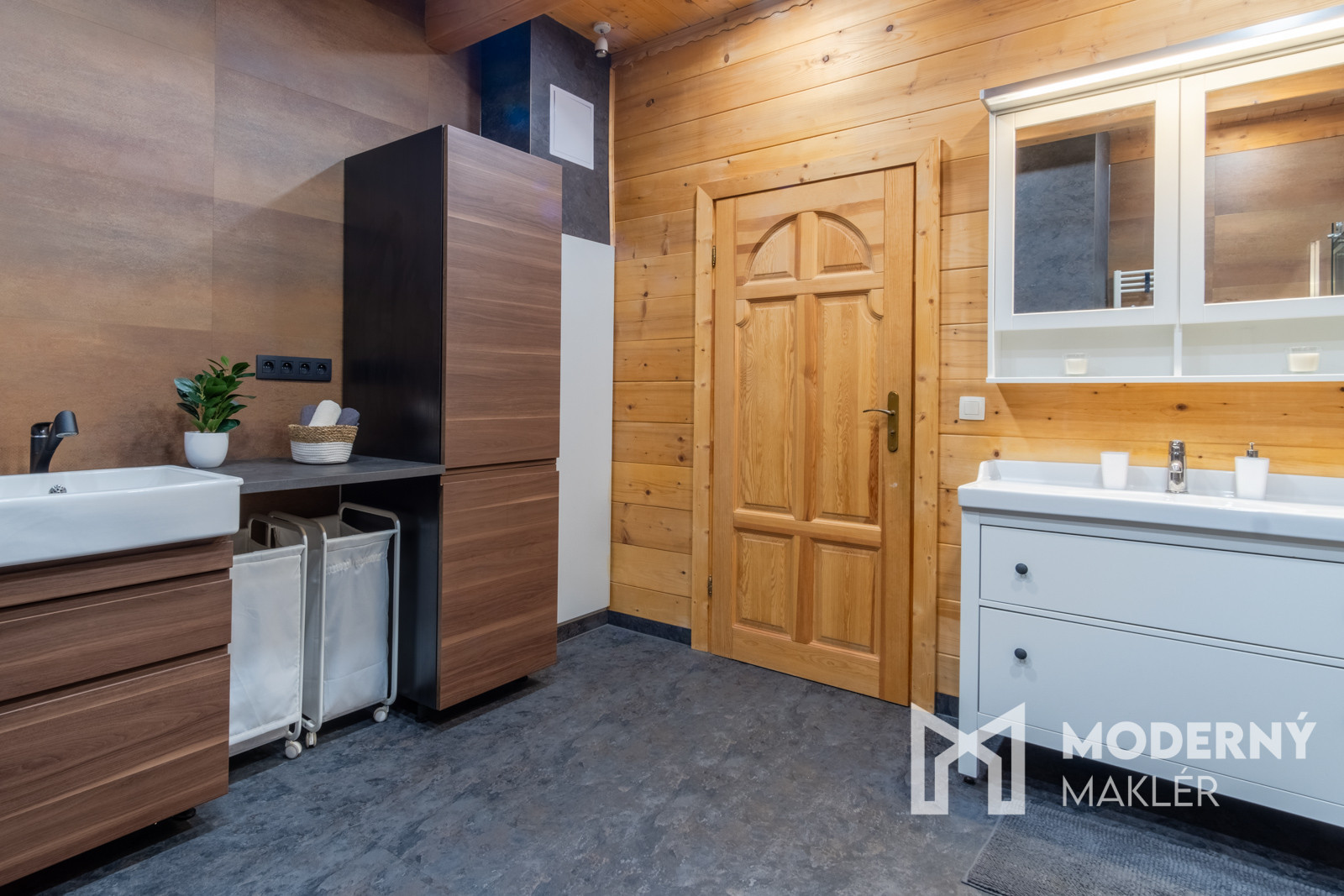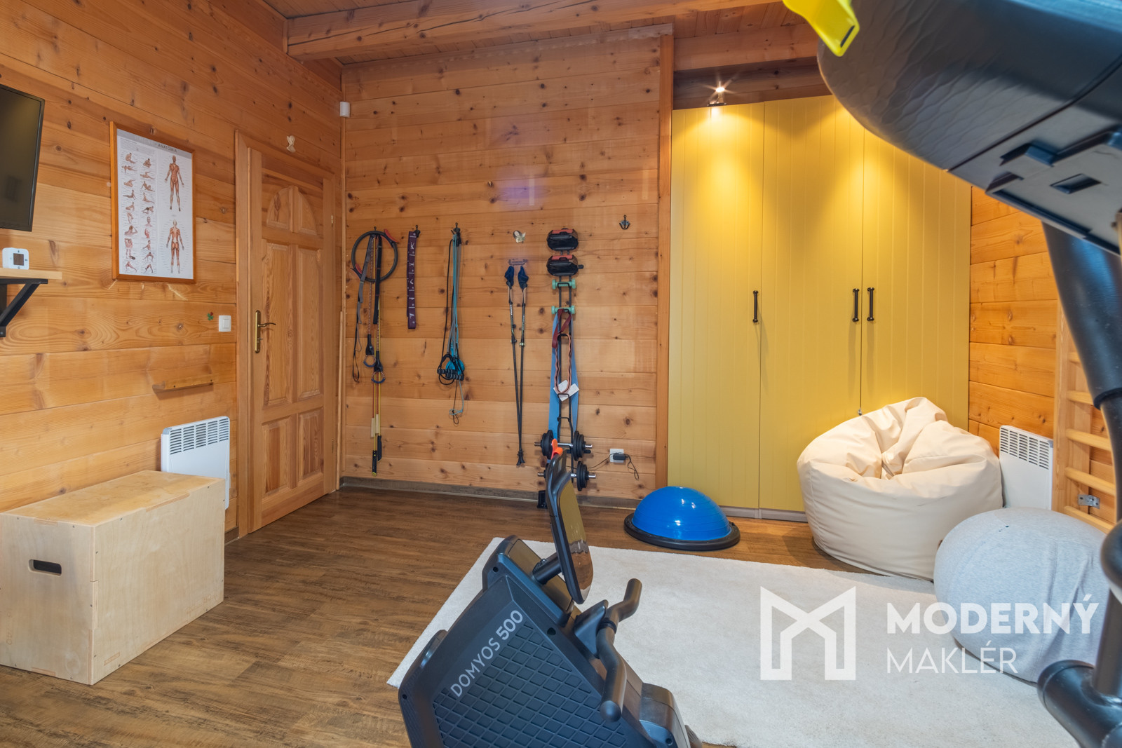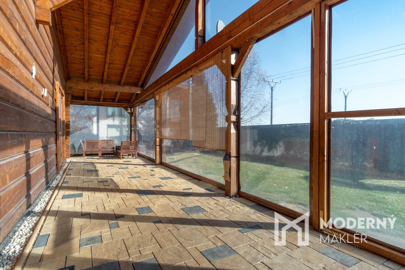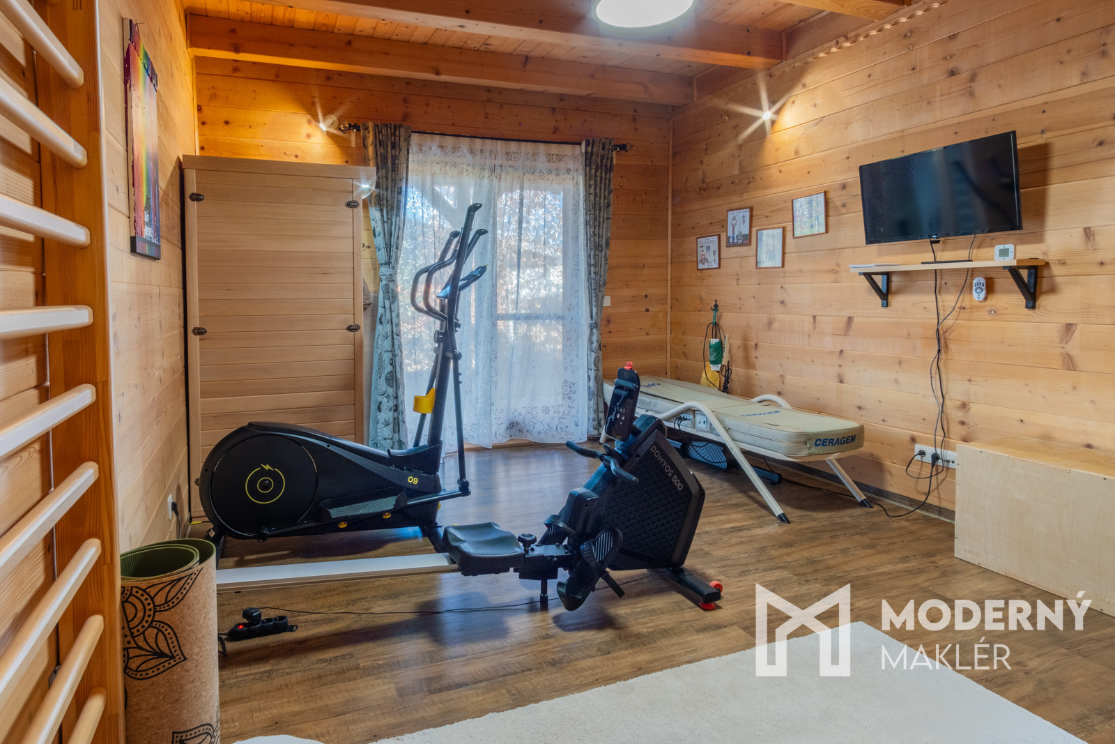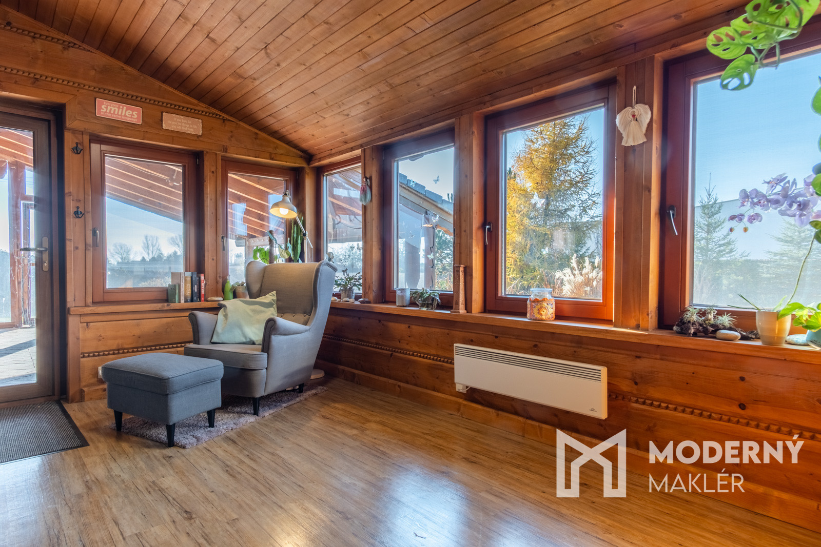 Dom bol navrhnutý s dôrazom na maximálny komfort, funkčnosť a súkromie pre všetkých členov rodiny. Už pri vstupe vás privíta priestranné zádverie, ktoré plynule prechádza do svetlej obývacej izby spojenej s kuchyňou a jedálňou. Tento otvorený priestor pôsobí vzdušne a útulne zároveň a jeho dominantu tvorí krbová pec, ktorá v chladnejších mesiacoch dotvára príjemnú atmosféru domova. Dom disponuje štyrmi spálňami, pričom dve z nich majú vlastnú kúpeľňu. Samostatne sa v dome nachádza aj toaleta pre hostí, špajza a hlavná kúpeľňa s práčovňou. Pre dokonalý oddych a regeneráciu slúžia dve sauny – fínska a infrasauna, zatiaľ čo zimná záhrada poskytuje pokojné útočisko na relax počas celého roka.