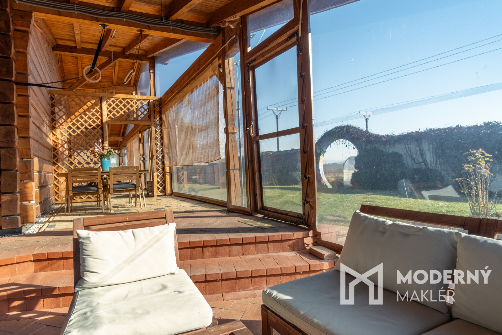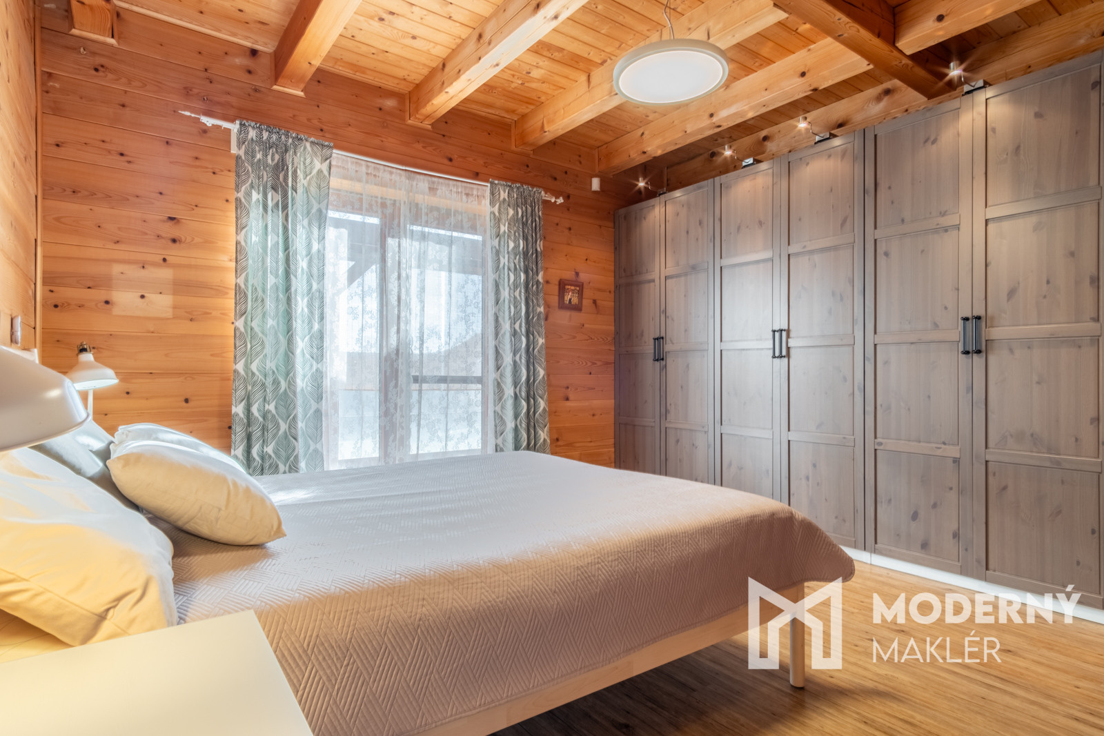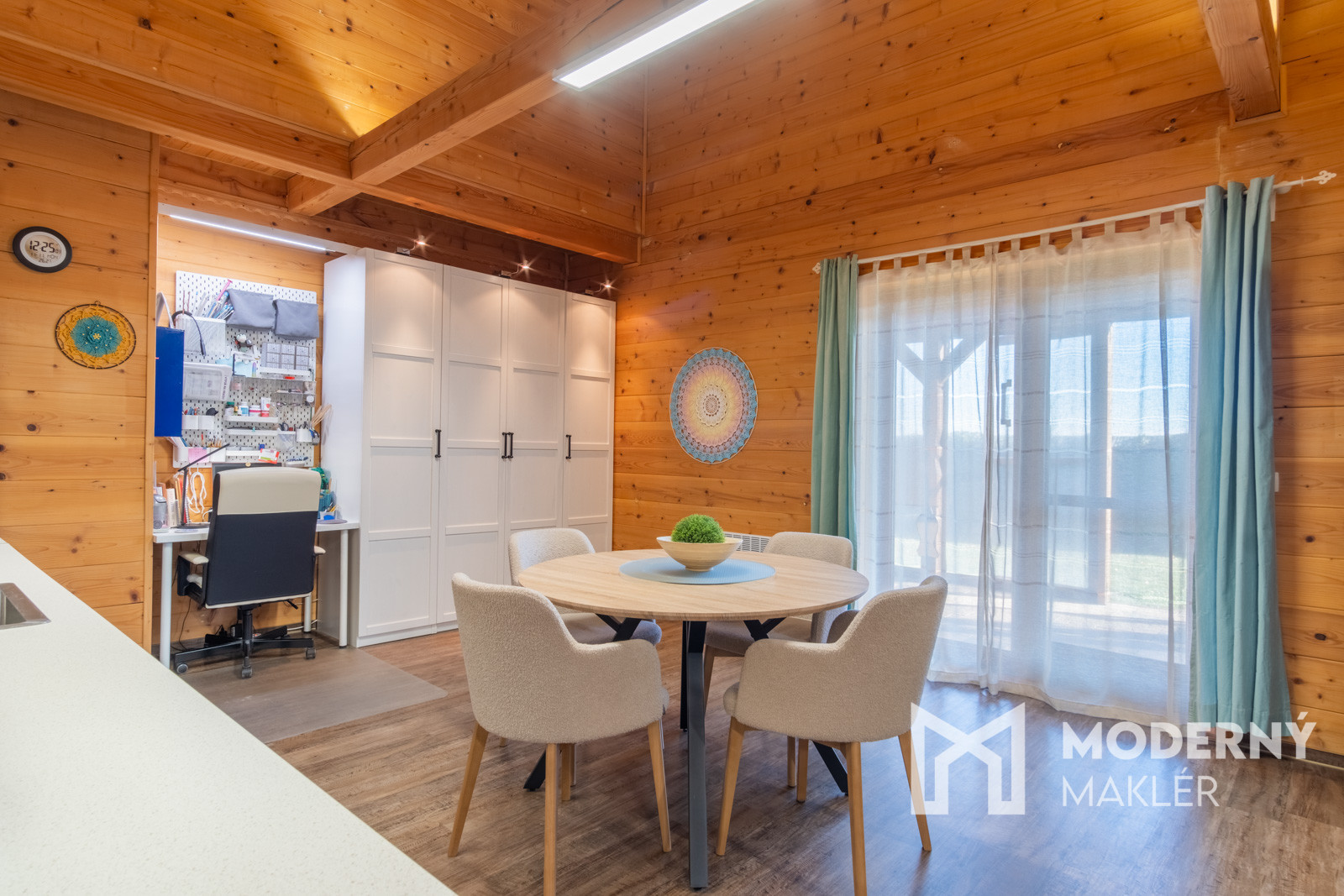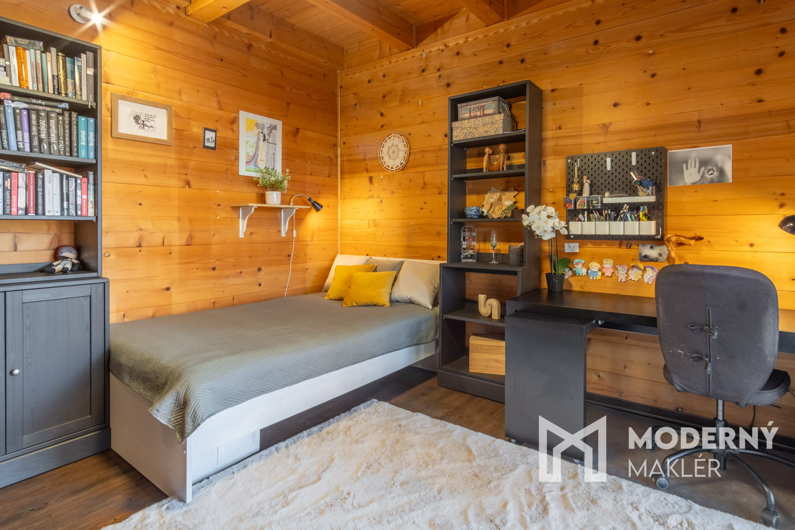 Dom bol navrhnutý s dôrazom na maximálny komfort, funkčnosť a súkromie pre všetkých členov rodiny. Už pri vstupe vás privíta priestranné zádverie, ktoré plynule prechádza do svetlej obývacej izby spojenej s kuchyňou a jedálňou. Tento otvorený priestor pôsobí vzdušne a útulne zároveň a jeho dominantu tvorí krbová pec, ktorá v chladnejších mesiacoch dotvára príjemnú atmosféru domova. Dom disponuje štyrmi spálňami, pričom dve z nich majú vlastnú kúpeľňu. Samostatne sa v dome nachádza aj toaleta pre hostí, špajza a hlavná kúpeľňa s práčovňou. Pre dokonalý oddych a regeneráciu slúžia dve sauny – fínska a infrasauna, zatiaľ čo zimná záhrada poskytuje pokojné útočisko na relax počas celého roka.