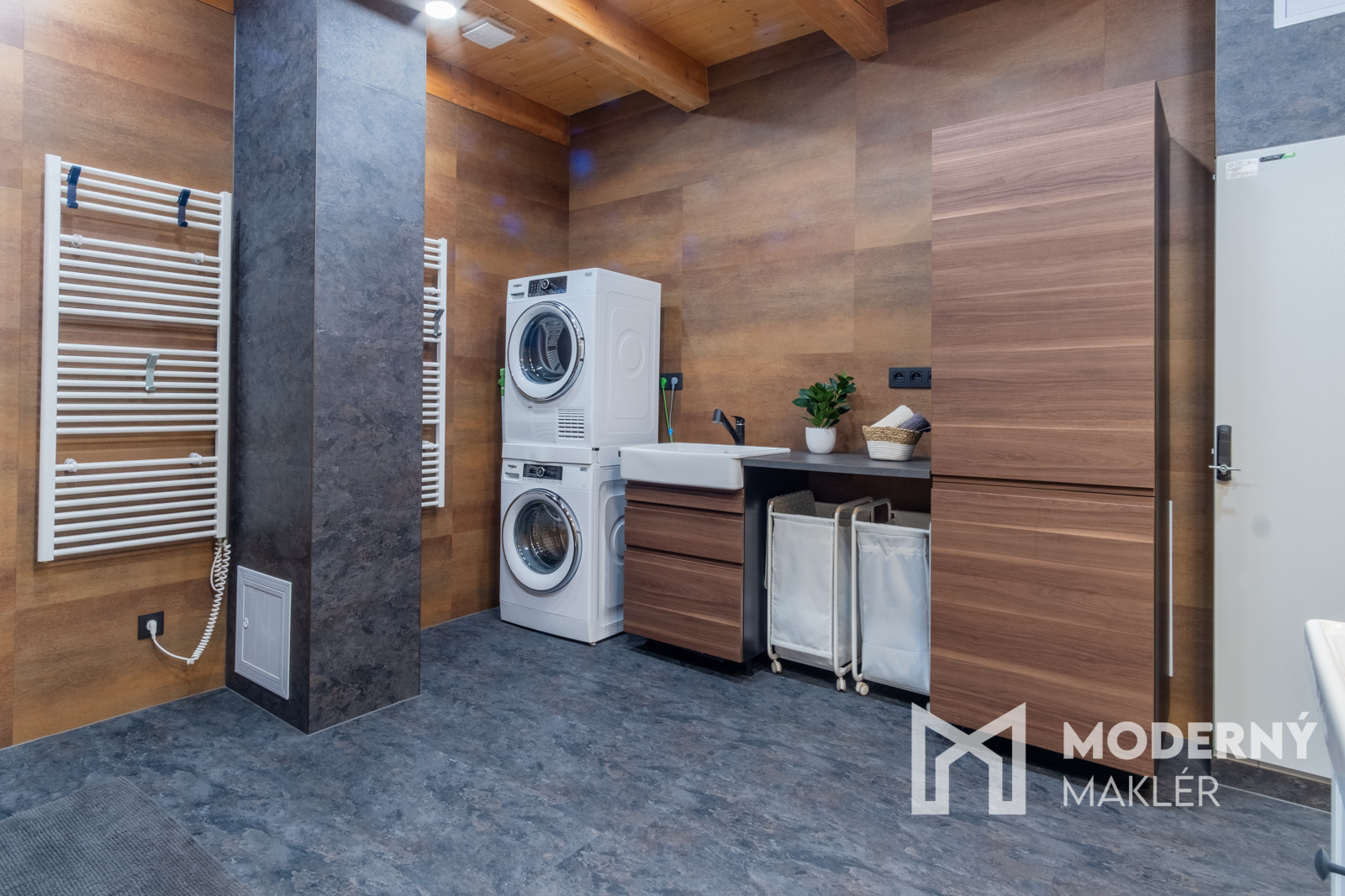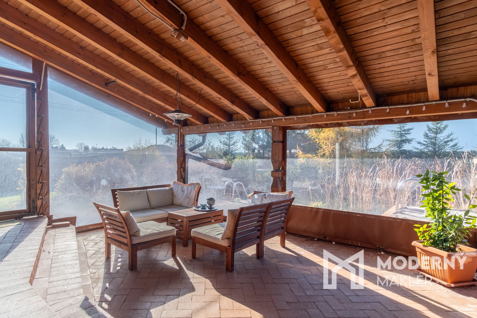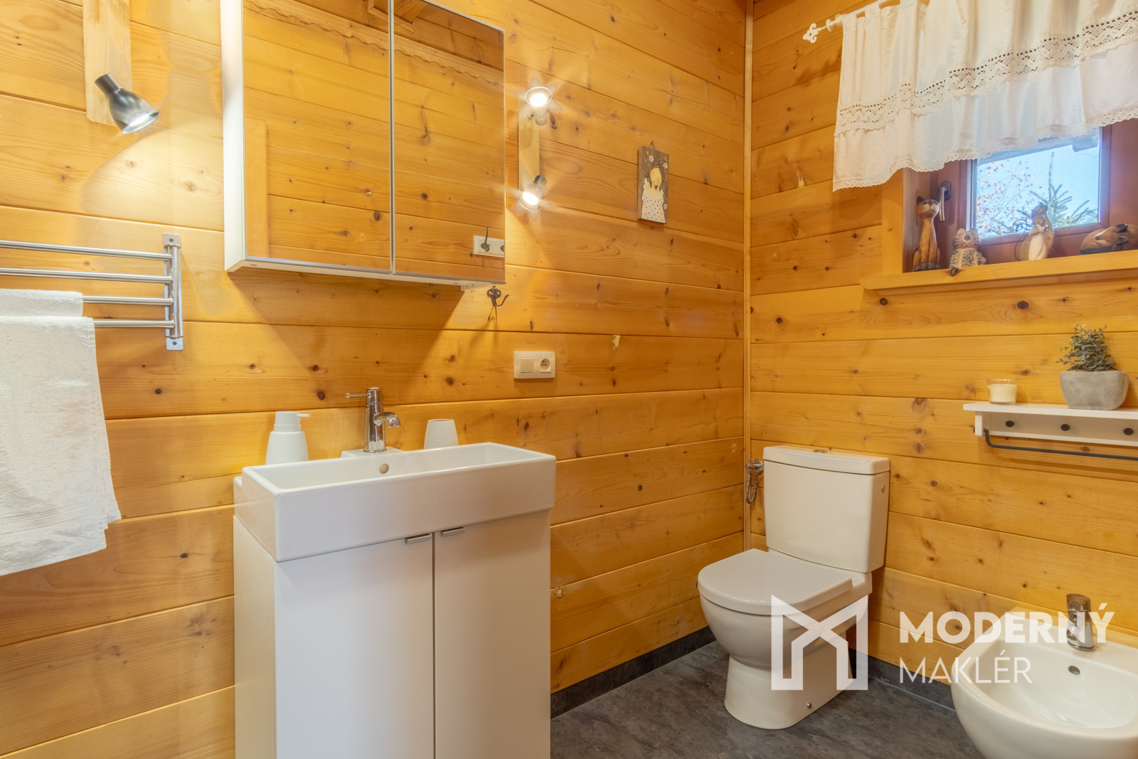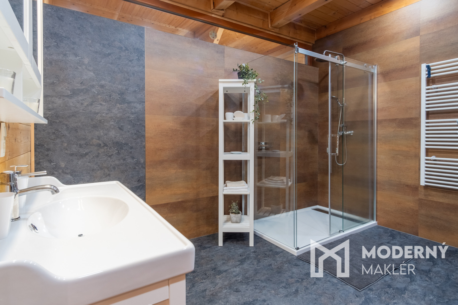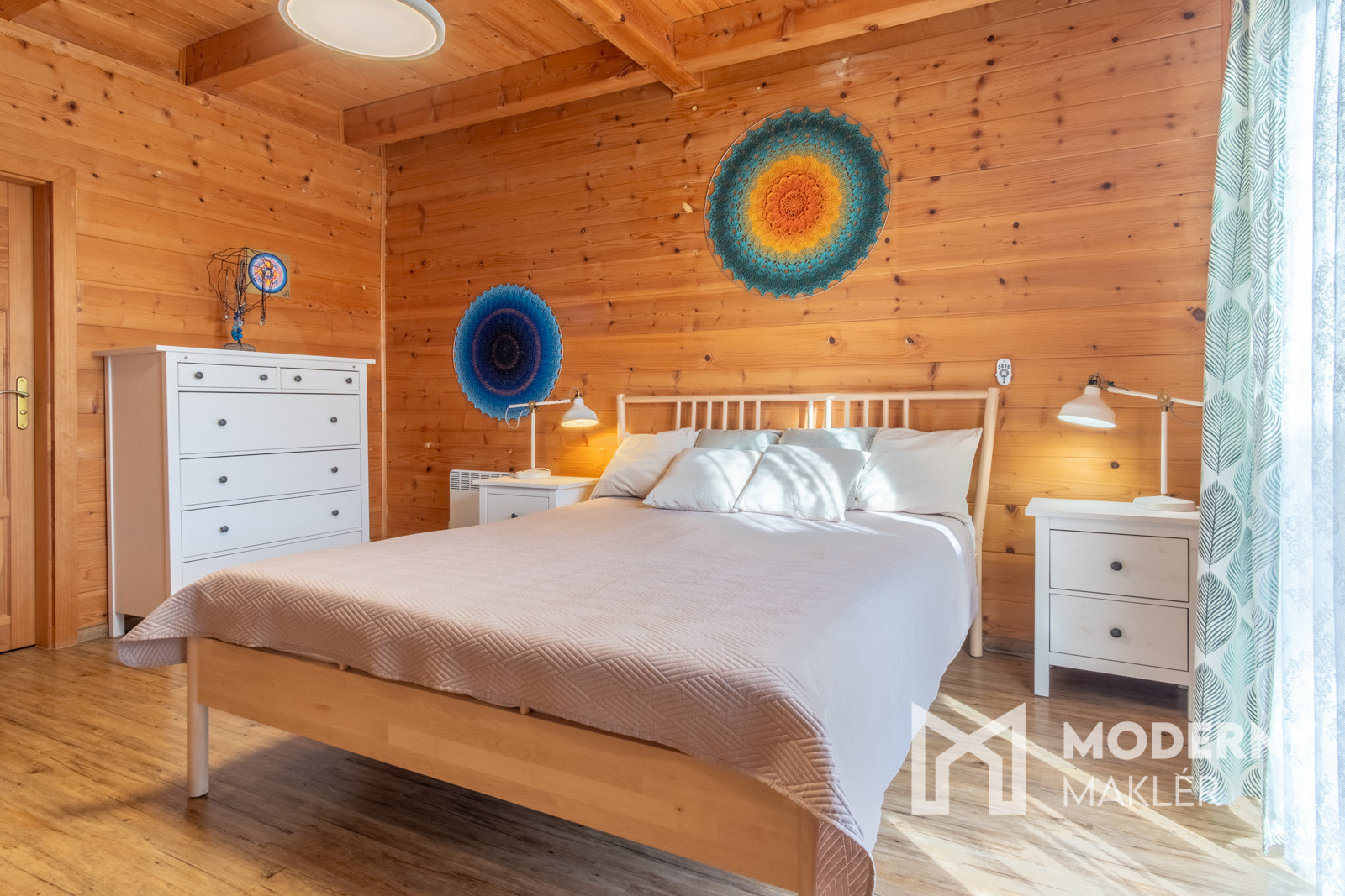 Dom bol navrhnutý s dôrazom na maximálny komfort, funkčnosť a súkromie pre všetkých členov rodiny. Už pri vstupe vás privíta priestranné zádverie, ktoré plynule prechádza do svetlej obývacej izby spojenej s kuchyňou a jedálňou. Tento otvorený priestor pôsobí vzdušne a útulne zároveň a jeho dominantu tvorí krbová pec, ktorá v chladnejších mesiacoch dotvára príjemnú atmosféru domova. Dom disponuje štyrmi spálňami, pričom dve z nich majú vlastnú kúpeľňu. Samostatne sa v dome nachádza aj toaleta pre hostí, špajza a hlavná kúpeľňa s práčovňou. Pre dokonalý oddych a regeneráciu slúžia dve sauny – fínska a infrasauna, zatiaľ čo zimná záhrada poskytuje pokojné útočisko na relax počas celého roka.