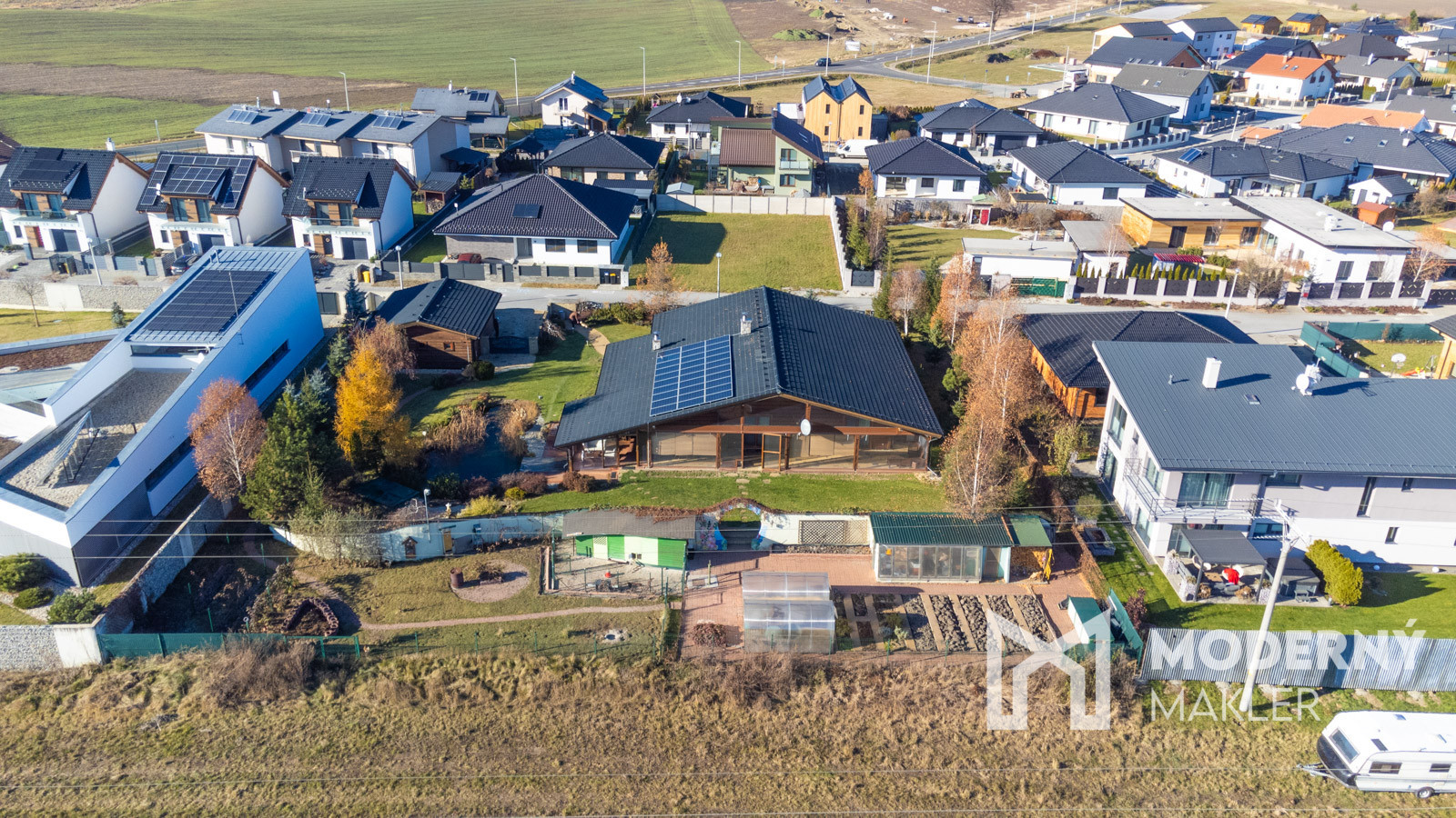 Ohrev vody zabezpečujú dva bojlery – 120 l (elektrický) a 80 l (s tepelným čerpadlom vzduch–voda). Dom využíva fotovoltickú elektráreň Huawei (8,5 kW), ktorá výrazne znižuje náklady na energie. Celý objekt funguje prostredníctvom inteligentného systému Loxone, ktorý umožňuje ovládanie osvetlenia, kúrenia, fotovoltiky či zabezpečenia – lokálne aj na diaľku cez mobil.