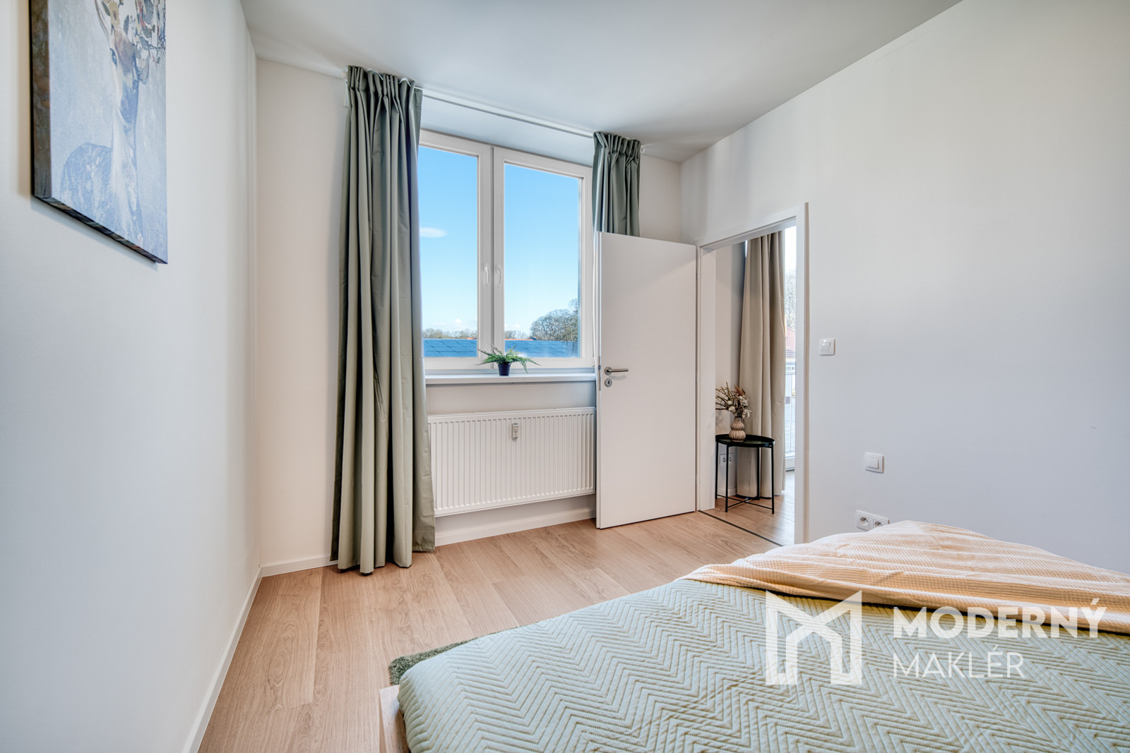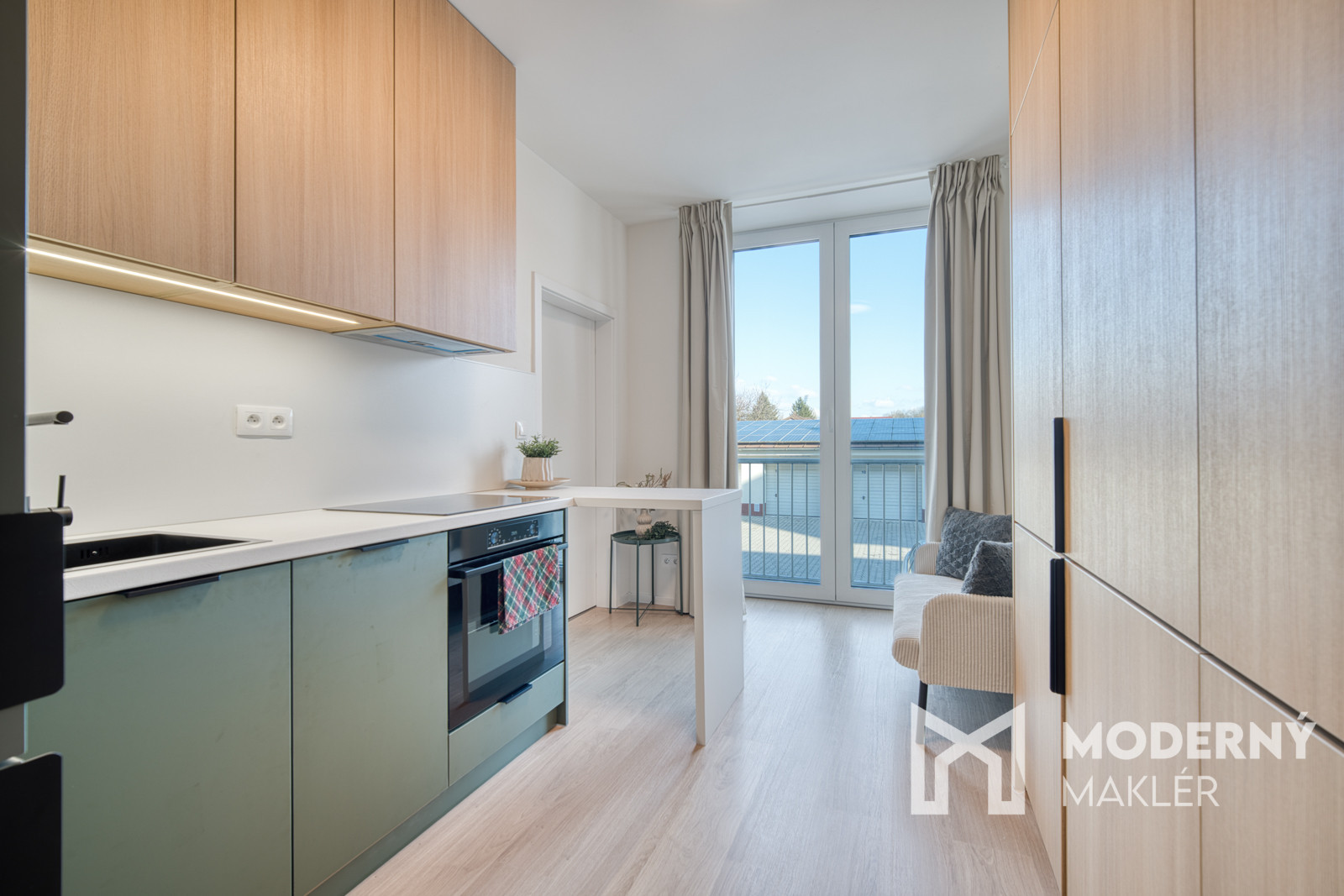 Nehnuteľnosť pozostáva zo vstupnej chodby, kúpeľne so sprchovým kútom a toaletou, kuchyne s výstupom na balkón a spálne. Kuchyňa ponúka pohodlný prístup na balkón, ktorý rozširuje obytný priestor a poskytuje možnosť relaxácie na čerstvom vzduchu. Dispozícia bytu je funkčne riešená s logickým rozdelením jednotlivých miestností pre maximálne využitie priestoru. Byt je orientovaný do vnútrobloku, čo zabezpečuje pokojné bývanie.