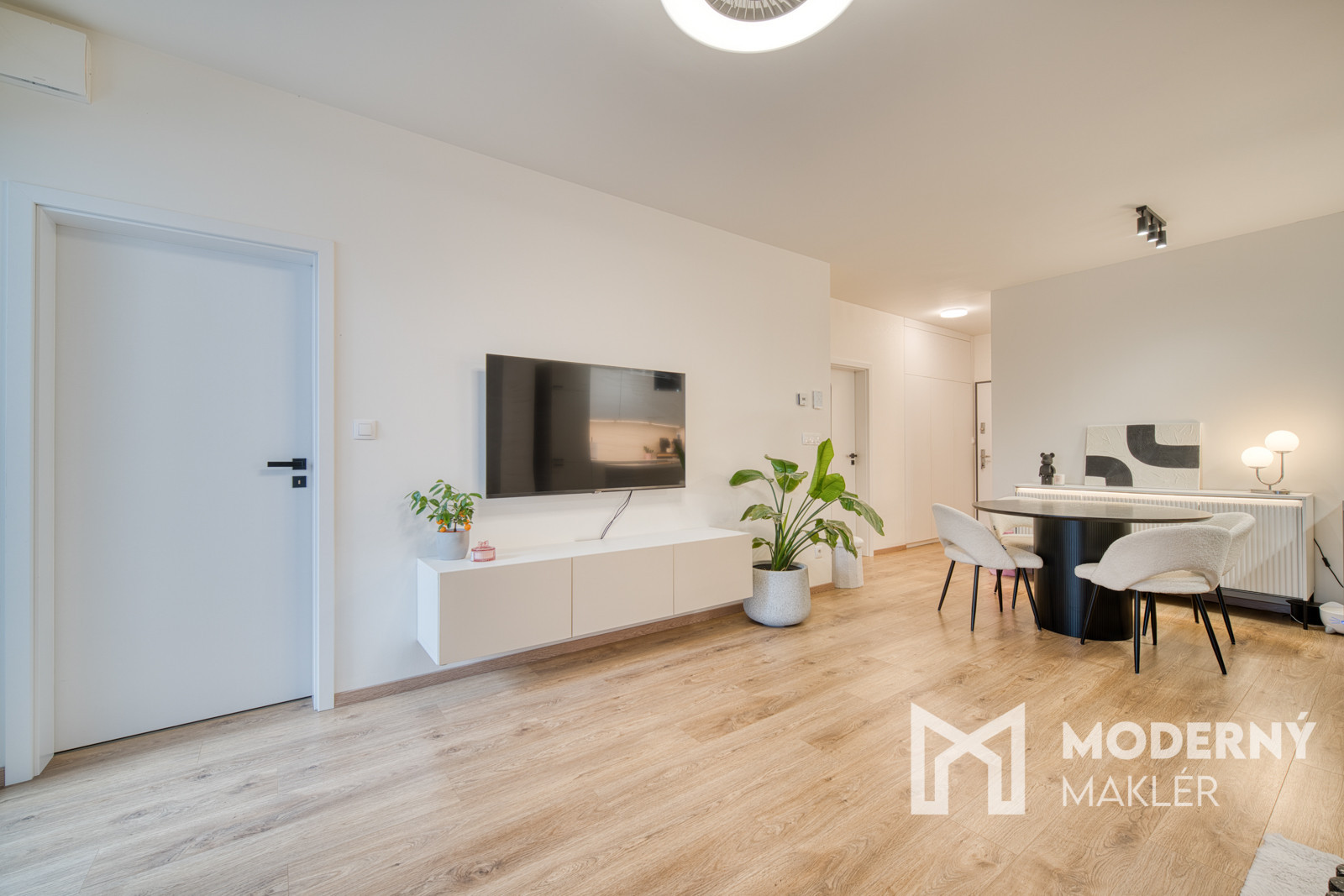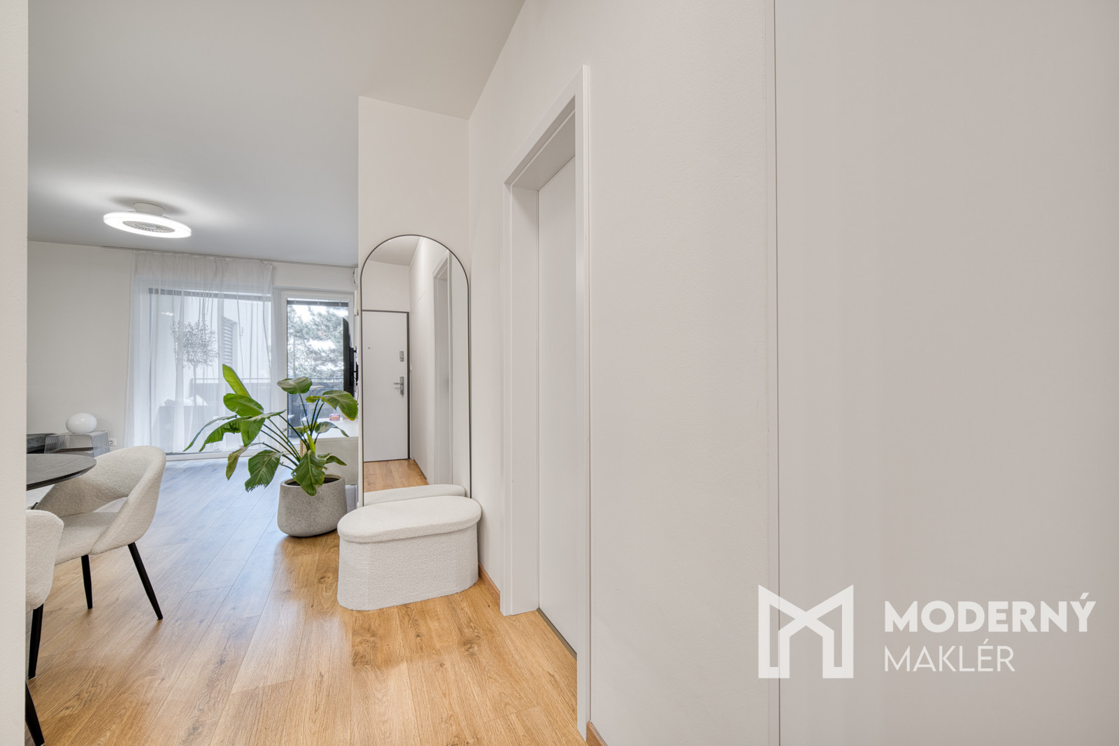 Ponuka predstavuje výnimočne výhodnú investičnú príležitosť v atraktívnej lokalite Broskyňovej ulice v Rovinke. Nachádza sa v pokojnej obci s výborným dopravným spojením do Bratislavy. Byt sa predáva kompletne zariadený, čo značne uľahčuje a urýchľuje proces nasťahovania. Kombinácia modernej novostavby, komplexnej výbavy a strategickej polohy v blízkosti hlavného mesta robí z tejto nehnuteľnosti mimoriadne atraktívnu voľbu pre komfortné bývanie aj investičné účely.