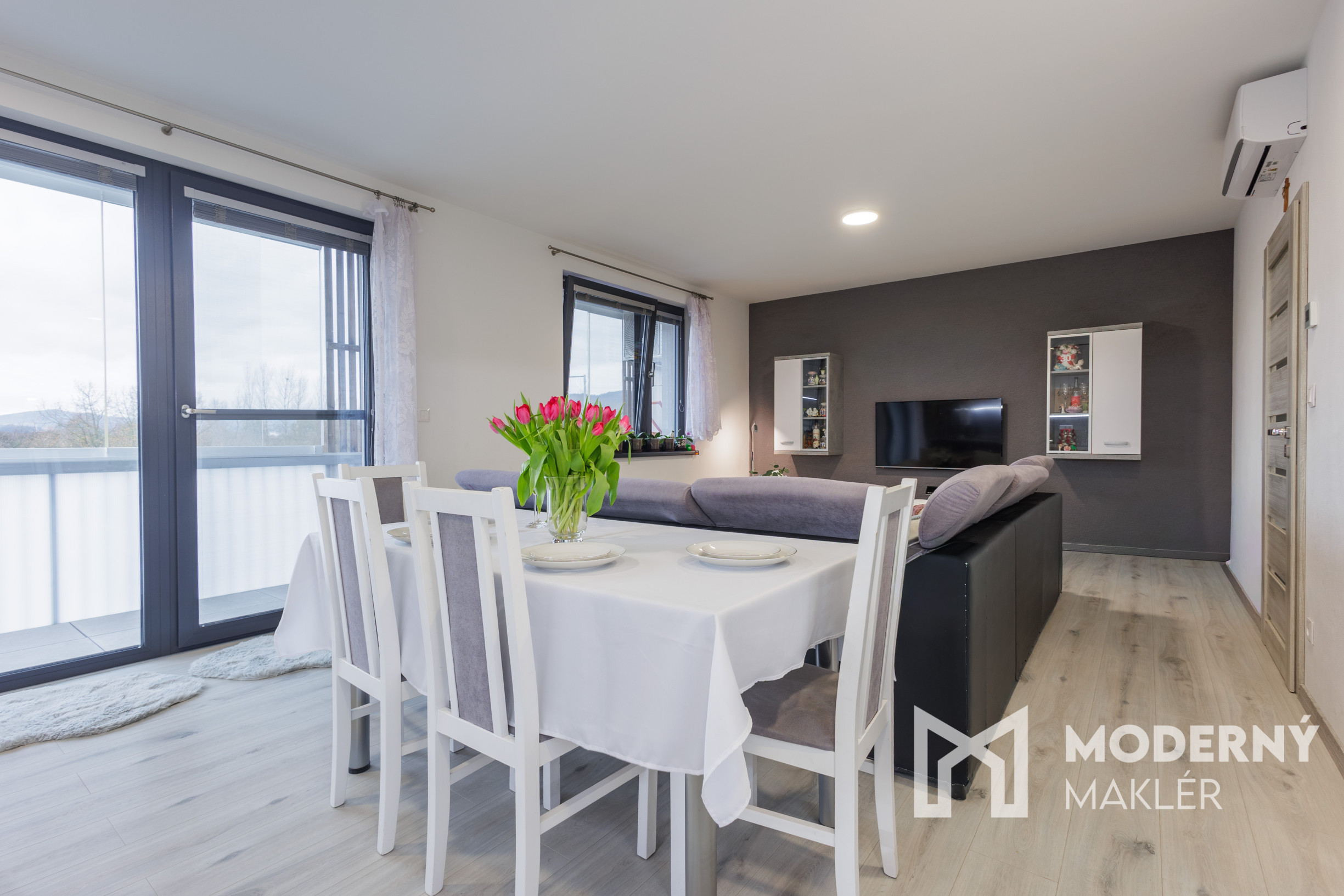 Moderný maklér ponúka na predaj priestranný 3-izbový byt v obľúbenej lokalite Nimnica, ktorá sa nachádza len pár minút jazdy autom od centra Púchova. Ide o ideálnu kombináciu pokojného bývania v kúpeľnom prostredí a výbornej dostupnosti do mesta. Byt sa nachádza na 2/3 v modernej a udržiavanej novostavbe z roku 2020. Vlastné parkovacie miesto je zahrnuté v cene bytu.