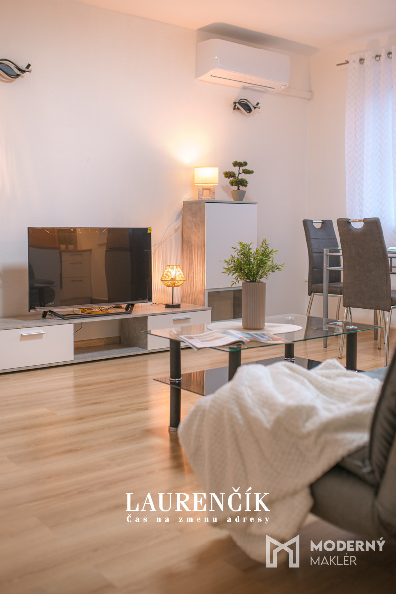 V roku 2025 prešiel byt kompletnou rekonštrukciou a dostal úplne nový, moderný vzhľad – nová kuchyňa, nová kúpeľňa a vkusne zladené zariadenie s tohto bytu urobilo jedinečnú ponuku. Príjemným bonusom je aj klimatizácia, ktorá spríjemní bývanie počas celého roka, a zároveň vlastné kúrenie cez plynový kotol, vďaka čomu máte teplotu aj náklady plne pod kontrolou.