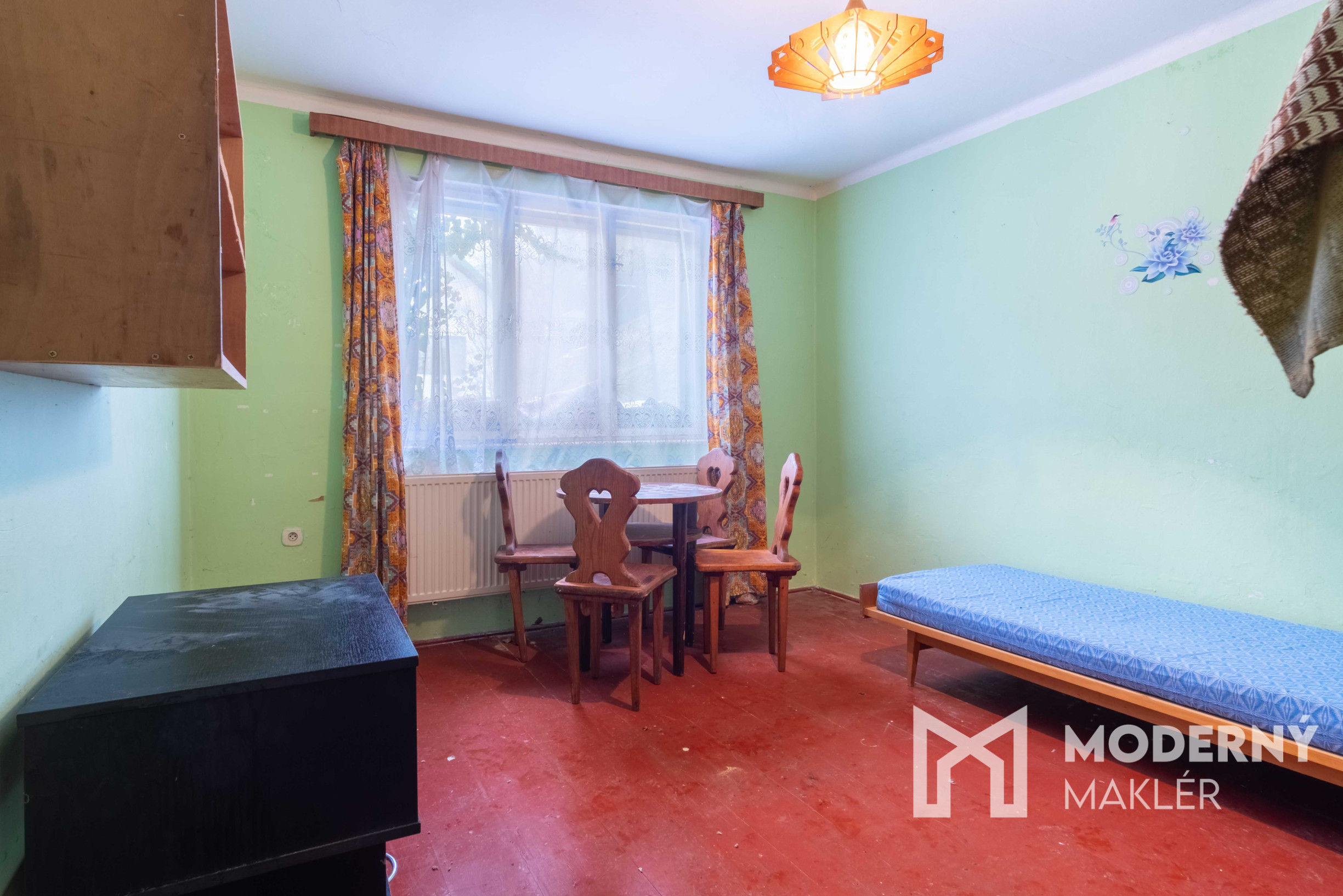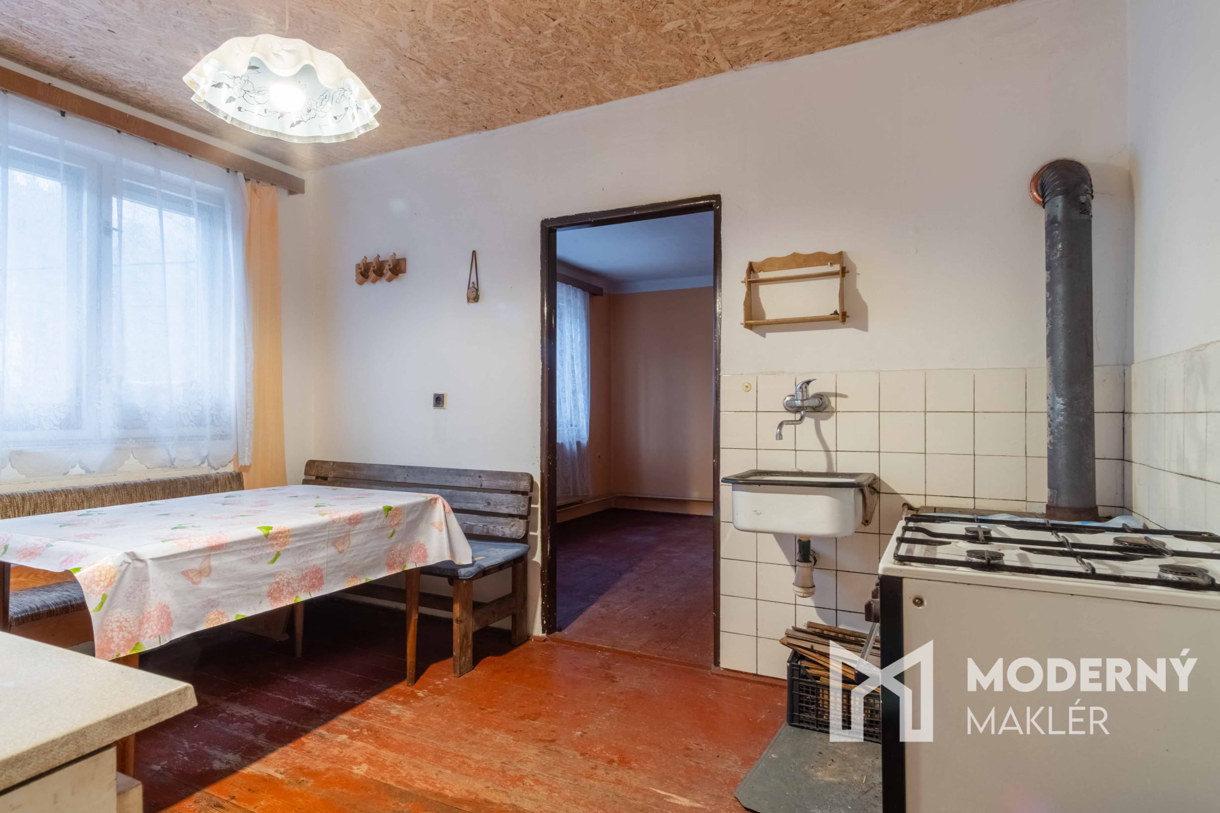 Nehnuteľnosť sa skladá zo vstupnej chodby, z ktorej sa dostanete do malého šatníka a následne do kuchyne. Cez kuchyňu prejdete do obývacej izby s juhovýchodnou orientáciou, ktorá zabezpečuje príjemné prirodzené osvetlenie počas celého dňa. Po pravej strane sa nachádza ešte jedna izba, praktická špajza pre uskladnenie, samostatné WC a kúpeľňa. K domu prináleží pekný slnečný pozemok s juhovýchodnou orientáciou, ktorý poskytuje dostatok svetla a vytvára príjemné prostredie pre relaxáciu.