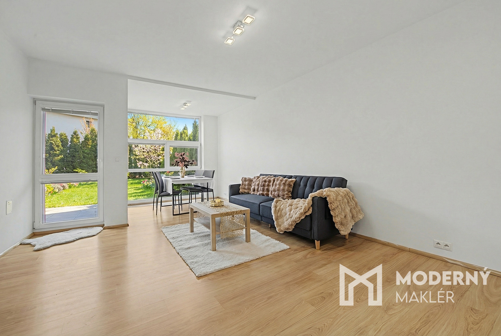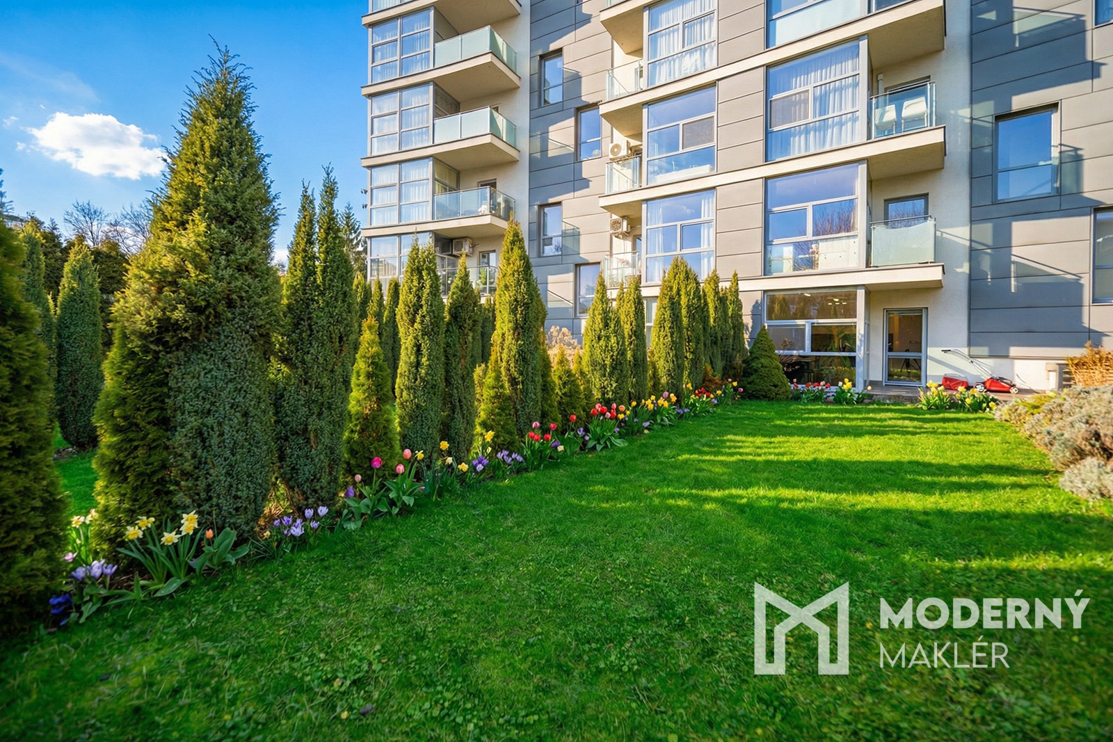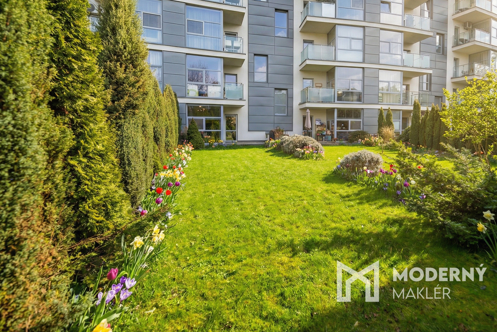 Moderný maklér ponúka na predaj moderný 2-izbový byt so súkromnou záhradou, nachádzajúci sa v obľúbenom rezidenčnom projekte s priamym vstupom na terasu a do záhrady a maximálny komfort bývania porovnateľný s rodinným domom.