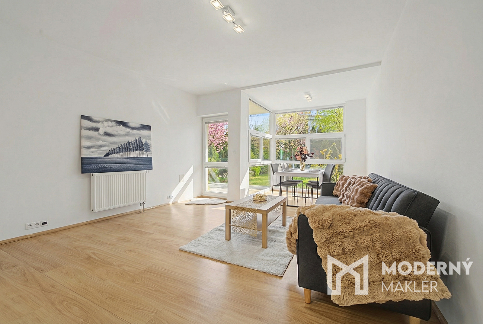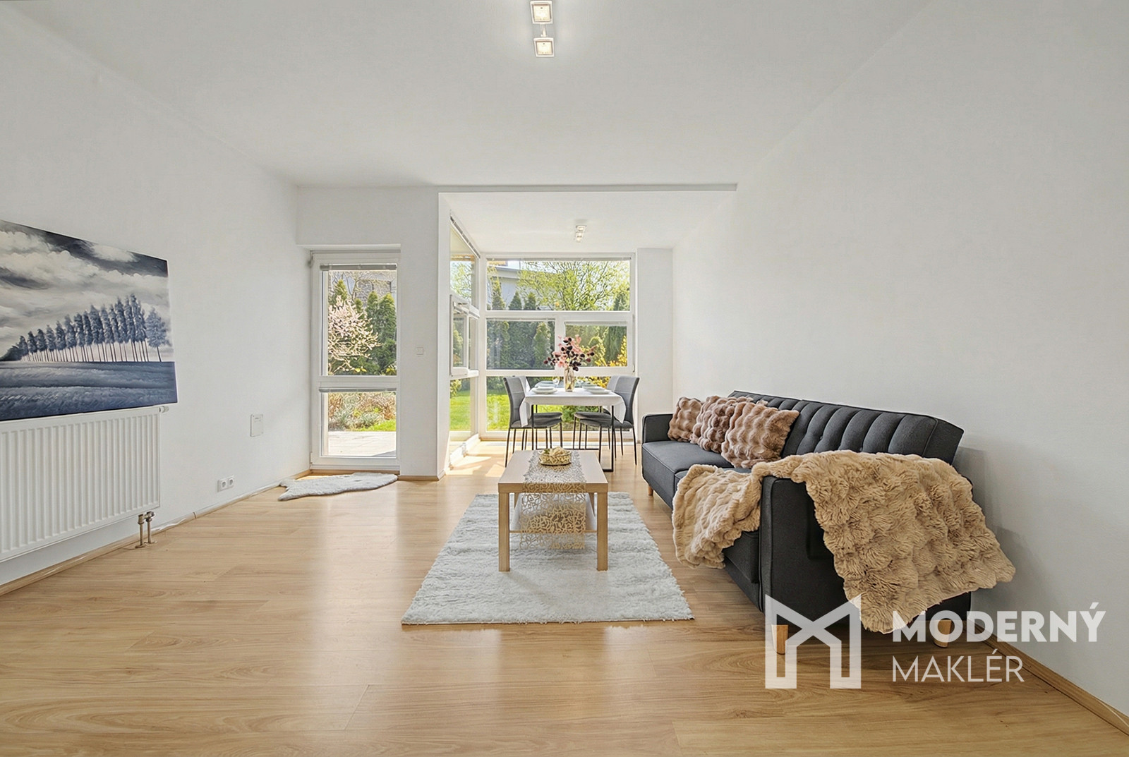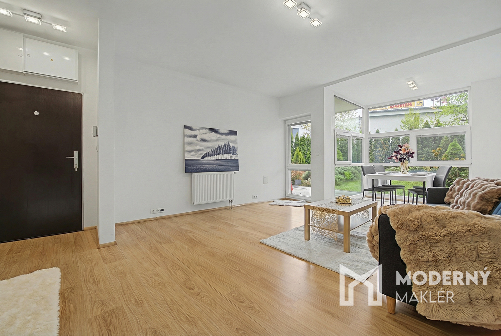 Moderný maklér ponúka na predaj moderný 2-izbový byt so súkromnou záhradou, nachádzajúci sa v obľúbenom rezidenčnom projekte s priamym vstupom na terasu a do záhrady a maximálny komfort bývania porovnateľný s rodinným domom.
