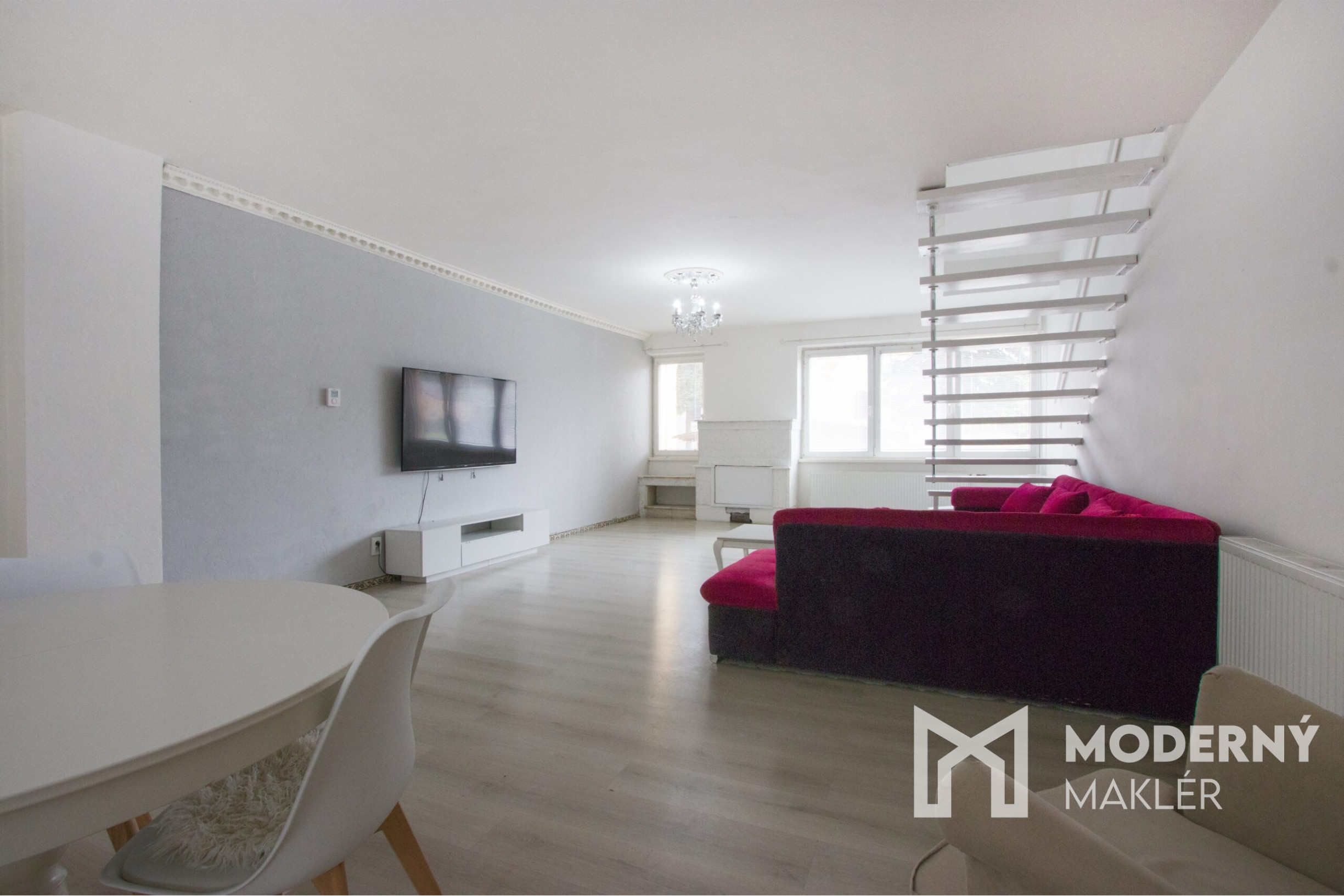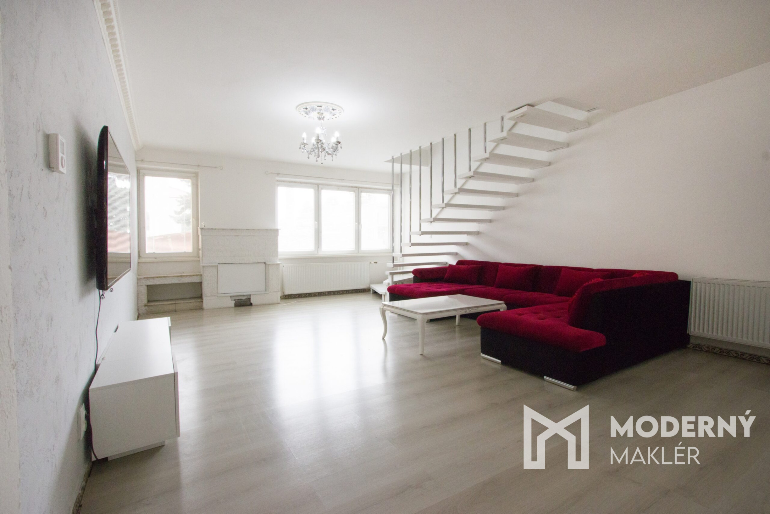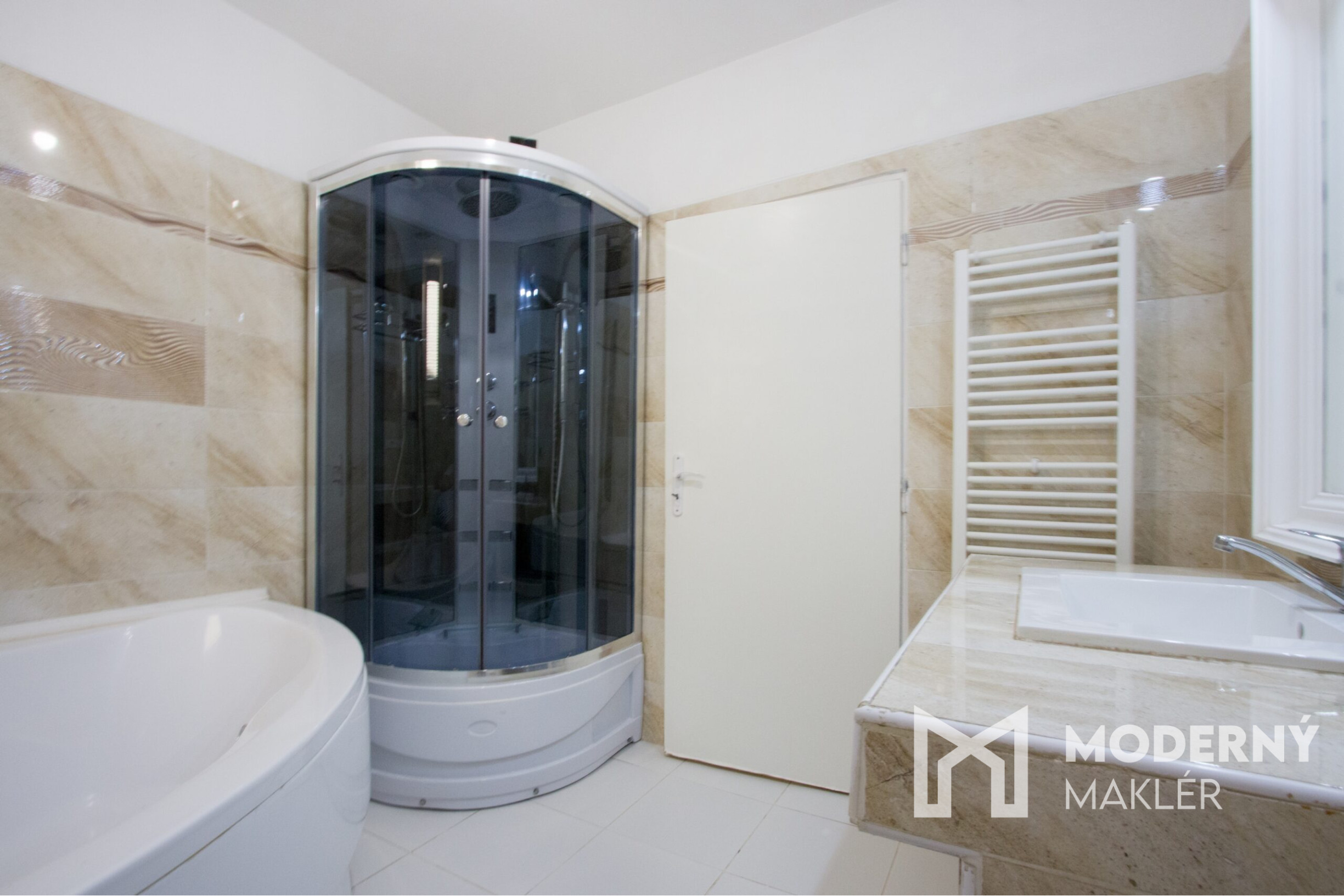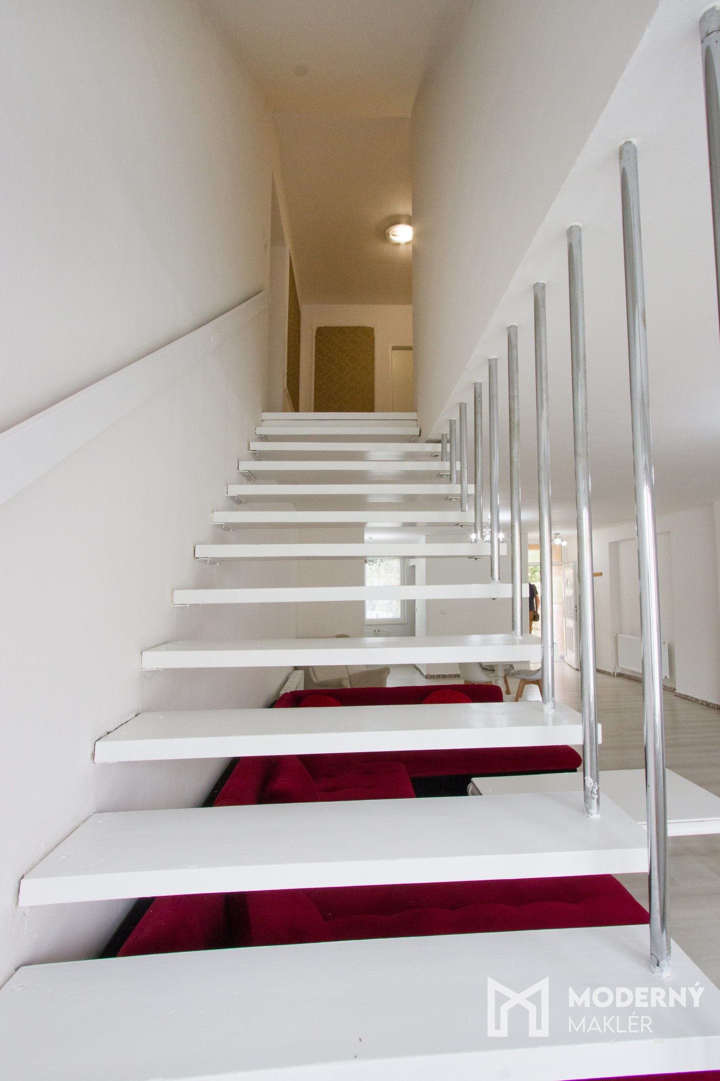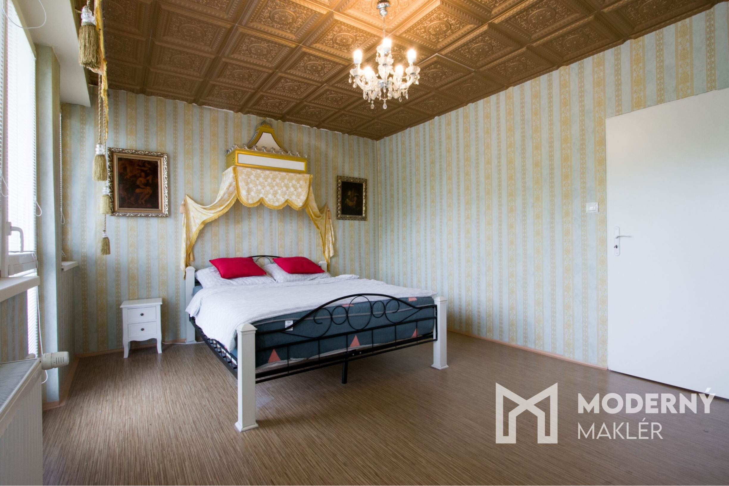 Nehnuteľnosť sa skladá z dvoch bytových jednotiek. V prvom byte nájdete na prízemí vstupnú chodbu, samostatnú toaletu, kuchyňu s komorou, pracovňu, ktorá môže slúžiť aj ako šatník a priestrannú obývaciu izbu s krbom. Na poschodí sa nachádza moderná zrekonštruovaná kúpeľňa s veľkou vaňou a spálňa s výstupom na loggiu a do záhrady.