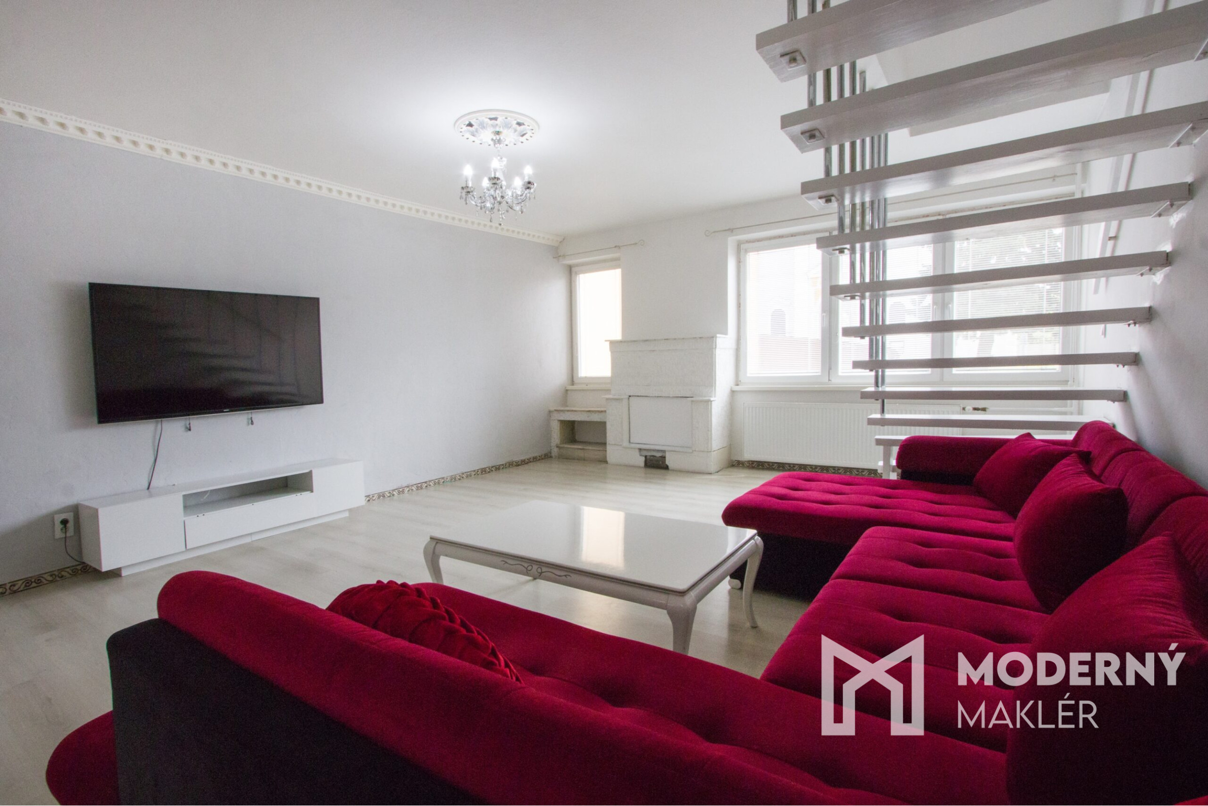Druhý byt pozostáva zo vstupnej chodby, samostatnej toalety, veľkej obývacej izby s krbom a kuchyne s komorou na prízemí. Na poschodí sú tri priestranné spálne, dve orientované do ulice a jedna s orientáciou do záhrady a s výstupom na loggiu a tiež novozrekonštruovaná kúpeľňa s veľkou vaňou, sprchovým kútom a priestorom na práčku.