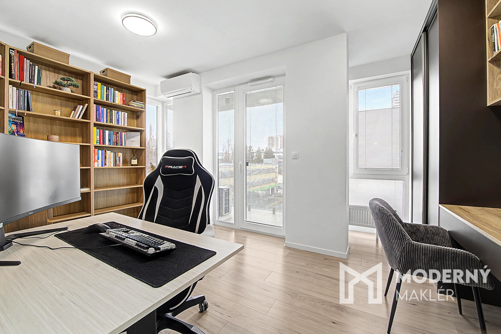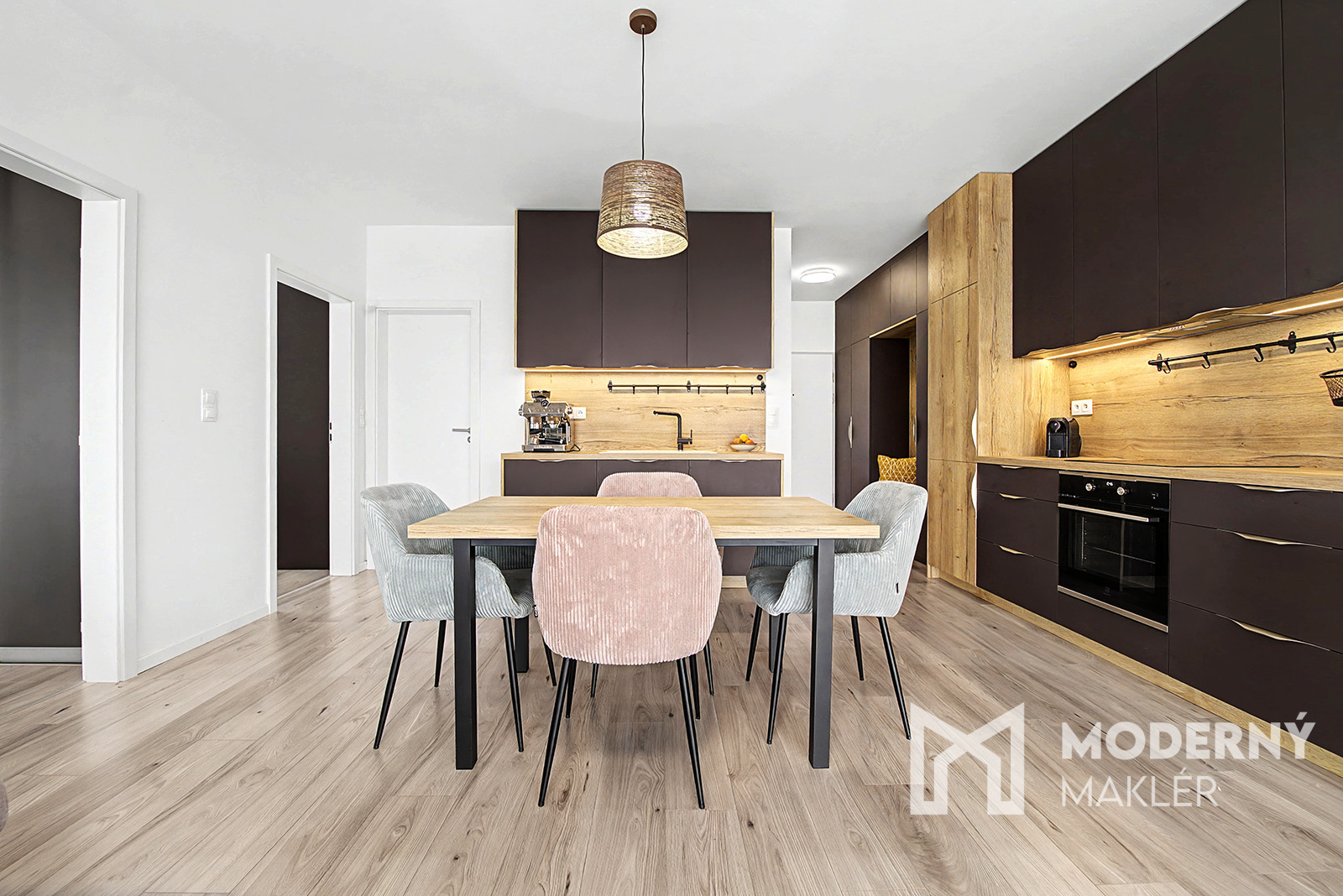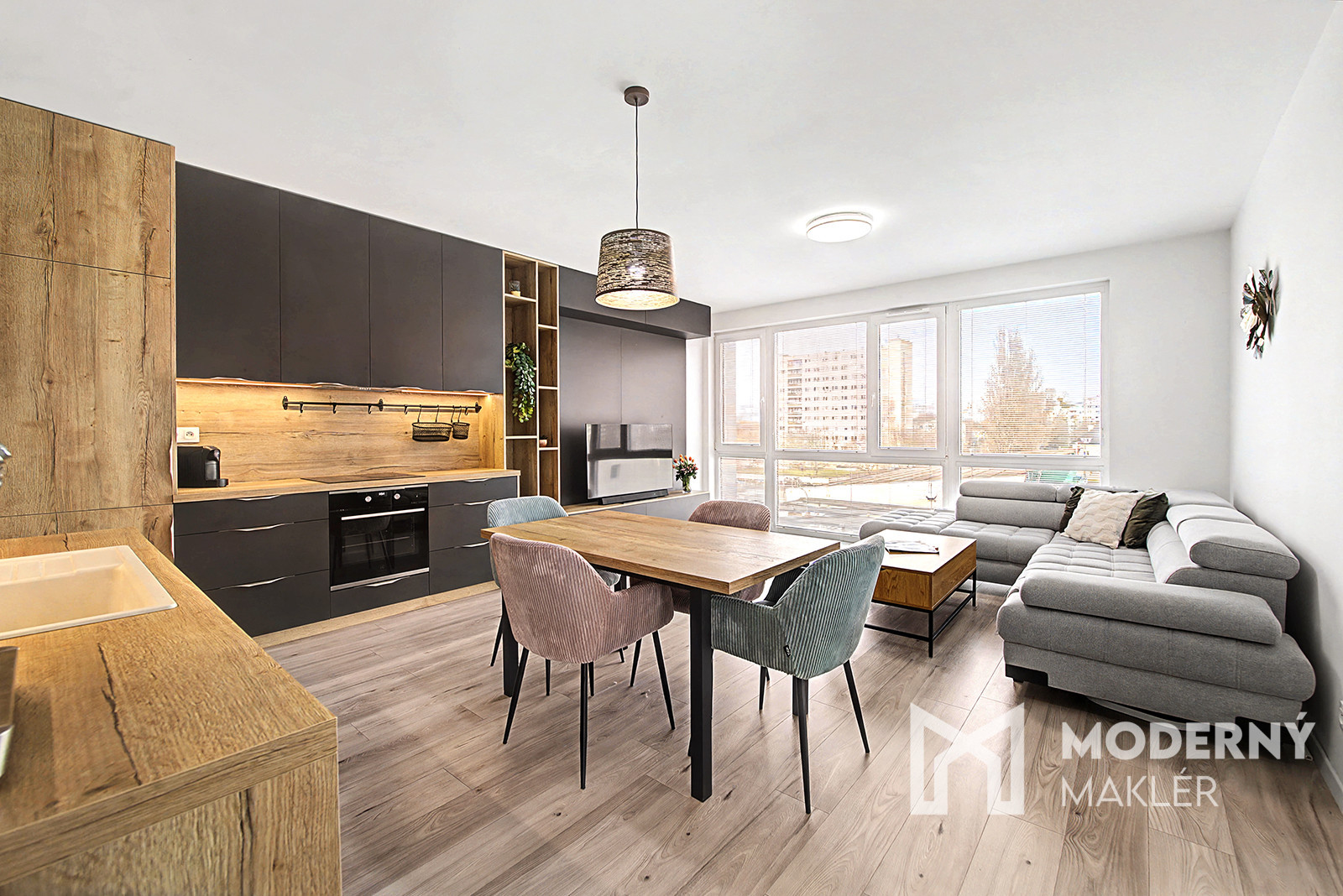 Moderný maklér ponúka na predaj kompletne zariadenú novostavbu 3 izbového bytu na Gogoľovej ulici, Bratislava - Petržalka, s vkusným nábytkom na mieru, plne vybavenou kuchyňou so vstavanými spotrebičmi, elegantnou spálňou, praktickou pracovňou s výstupom na balkón a vonkajším, súkromným, parkovacím miestom.