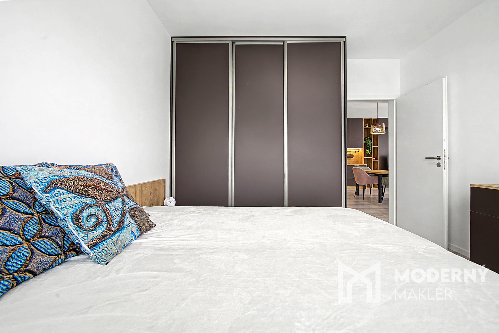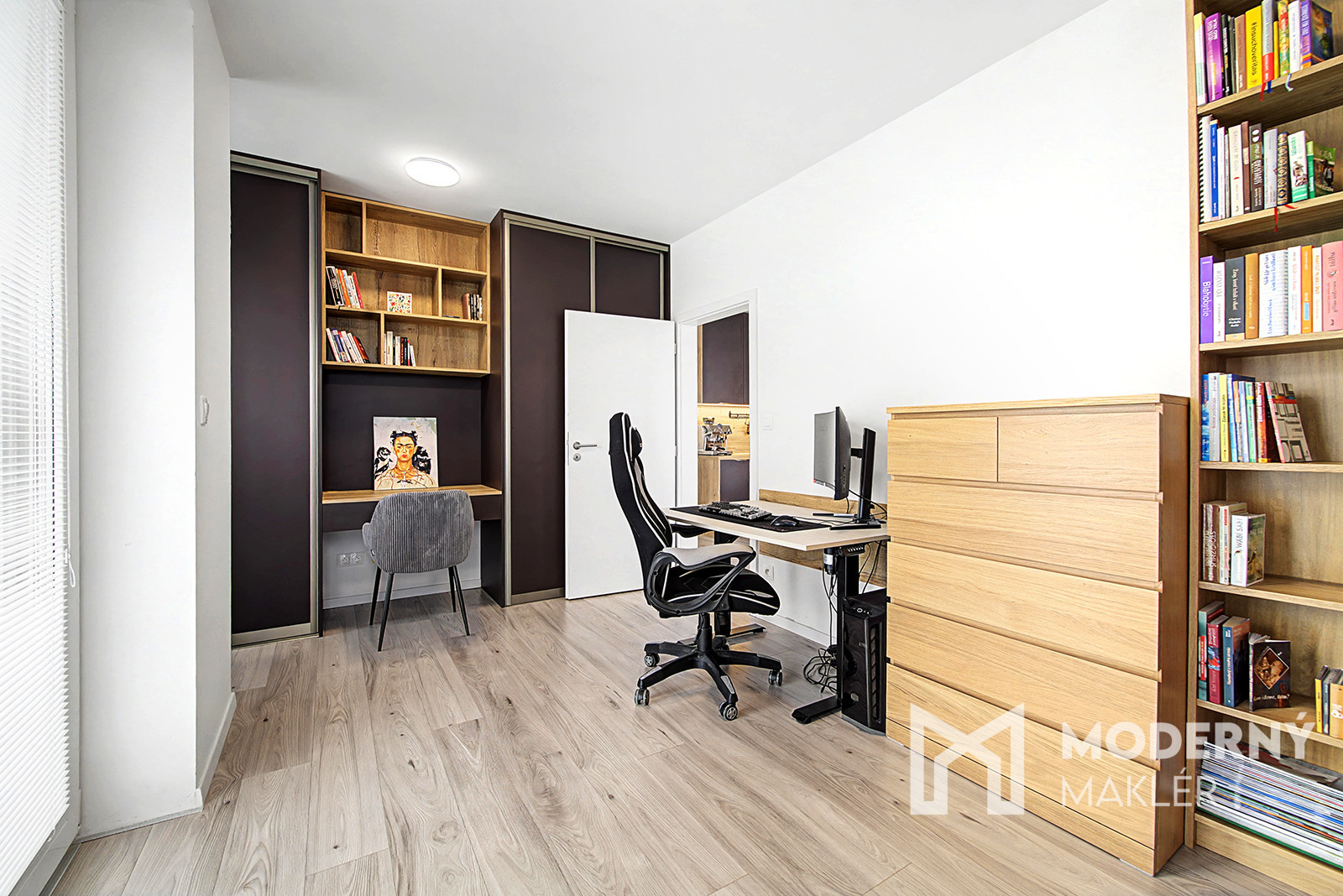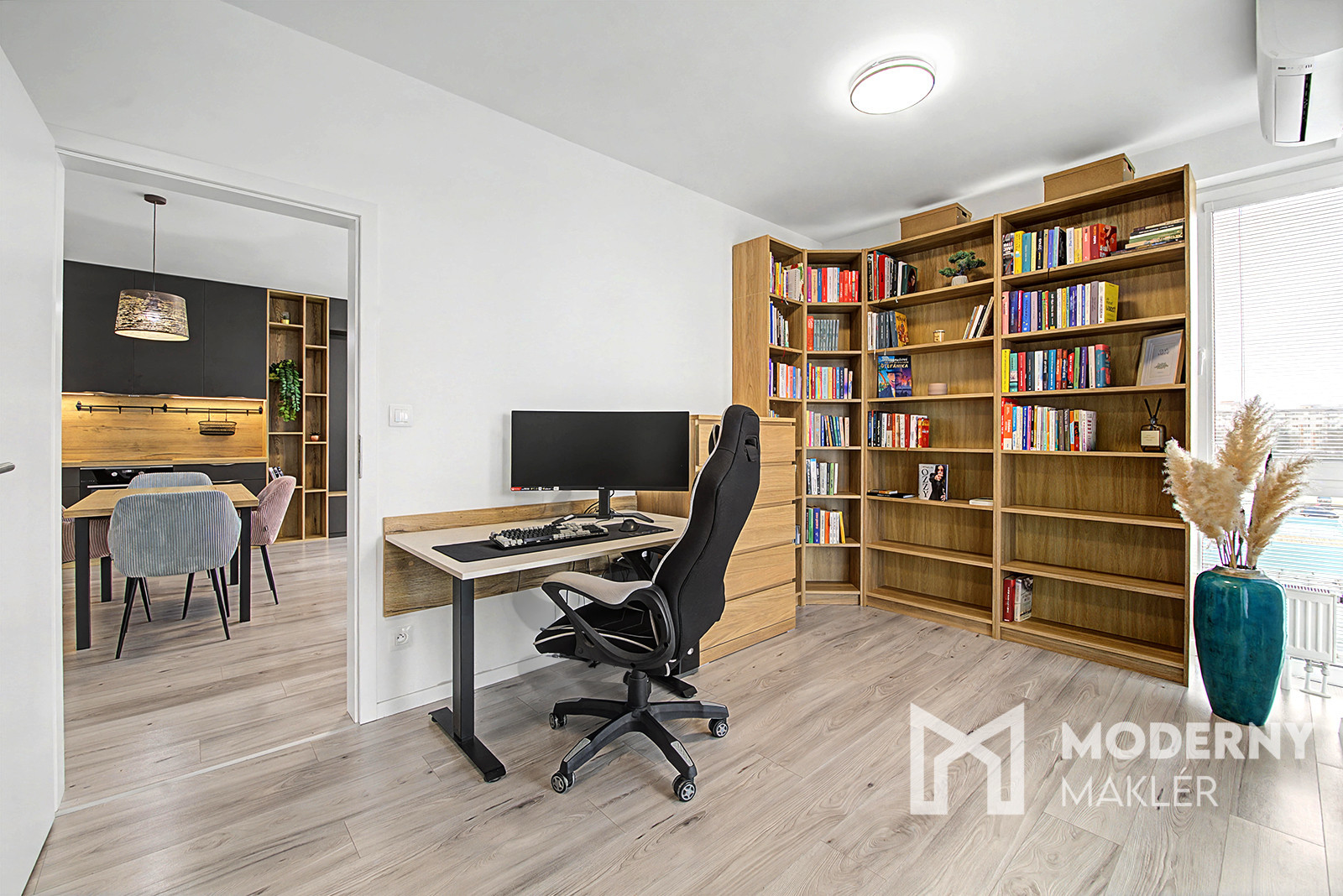 Moderný maklér ponúka na predaj kompletne zariadenú novostavbu 3 izbového bytu na Gogoľovej ulici, Bratislava - Petržalka, s vkusným nábytkom na mieru, plne vybavenou kuchyňou so vstavanými spotrebičmi, elegantnou spálňou, praktickou pracovňou s výstupom na balkón a vonkajším, súkromným, parkovacím miestom.