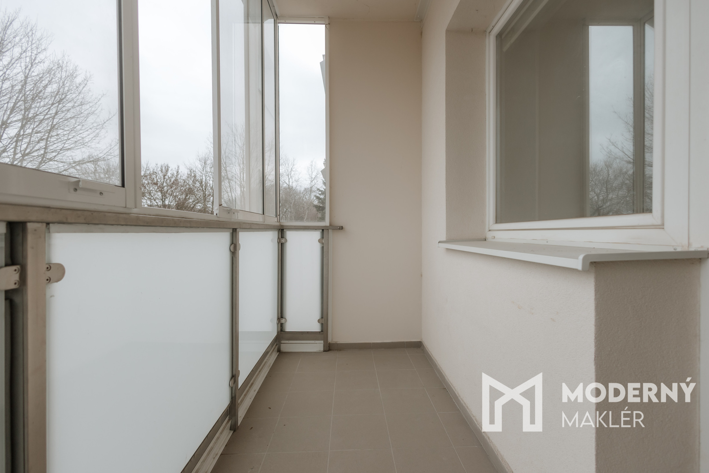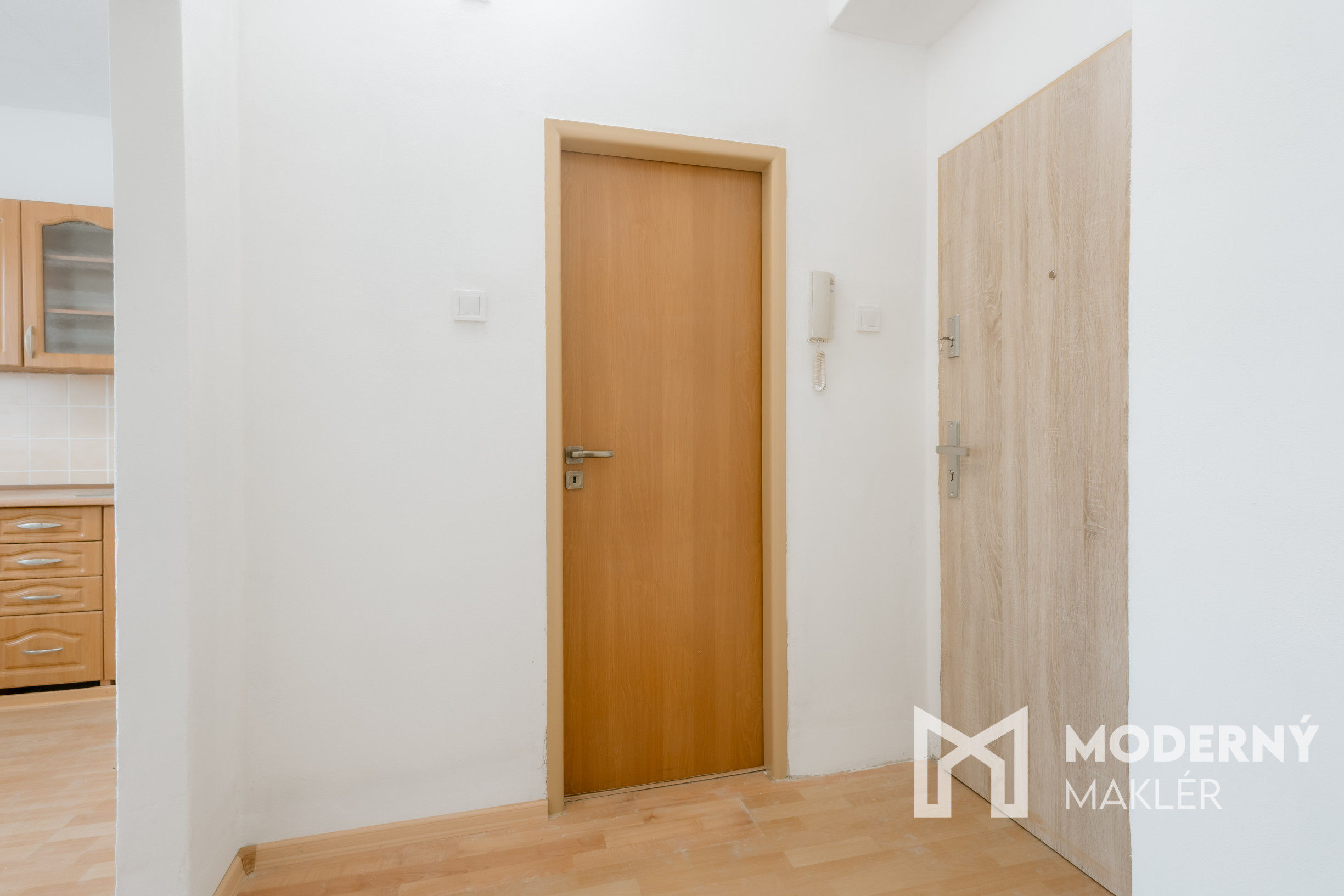 Nehnuteľnosť sa skladá zo vstupnej chodby. Ďalej sa tu nachádza kúpeľňa s WC, praktická kuchyňa a samostatná izba s priamym výstupom na loggiu. Obytné priestory sú orientované na východnú stranu, čím je zabezpečené príjemné ranné osvetlenie.