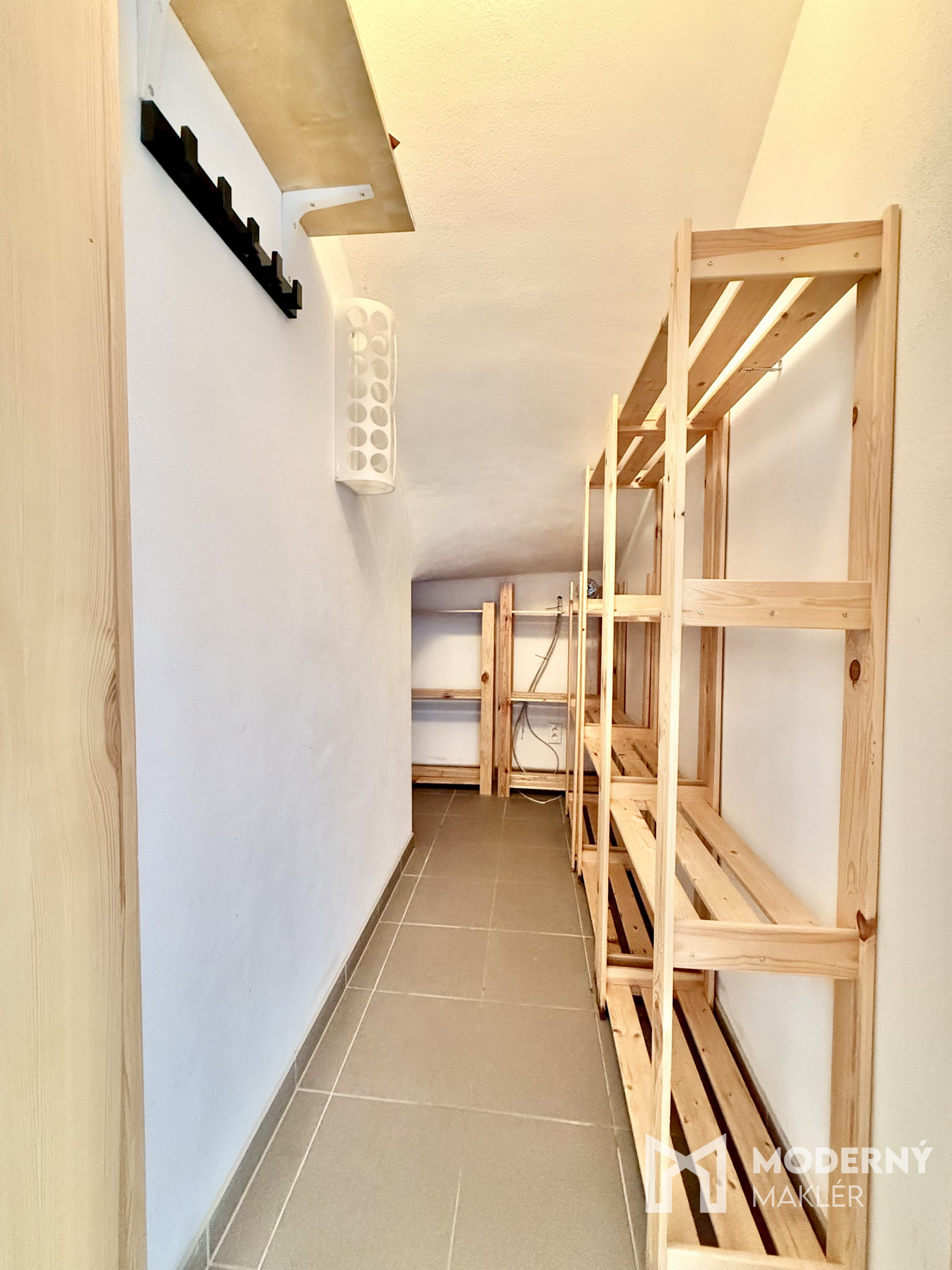 K dispozícii je aj veľký podkrovný priestor, ktorý slúži ako praktické úložisko pre sezónne veci.