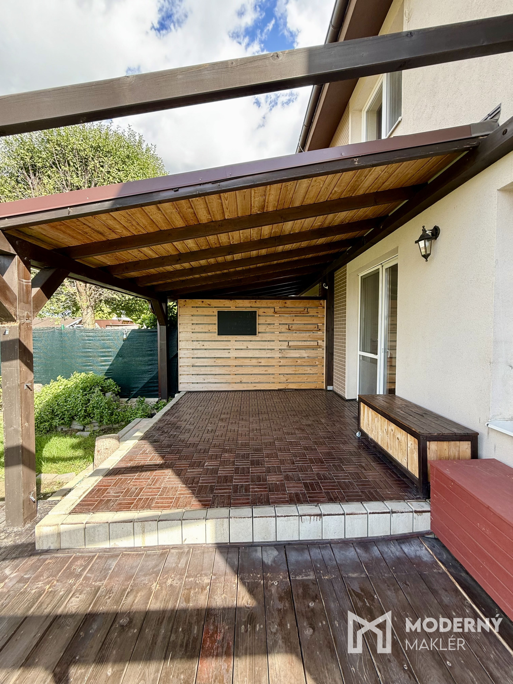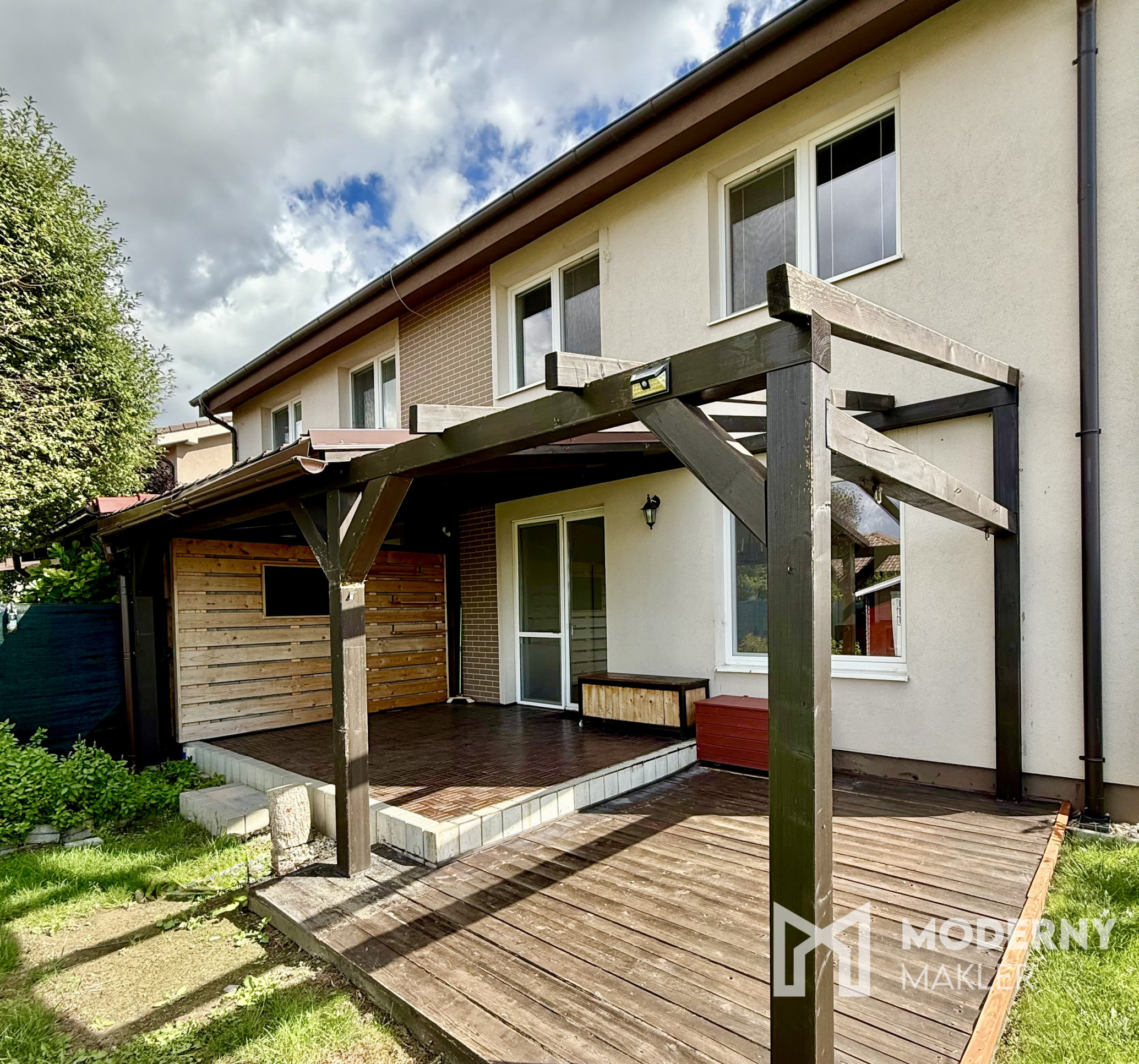 Veľkým benefitom nehnuteľnosti je nízkoenergetická prevádzka a súkromie, ktoré znásobuje čiastočne prestrešená terasa a pergola, ideálna na rodinné posedenia či relax.