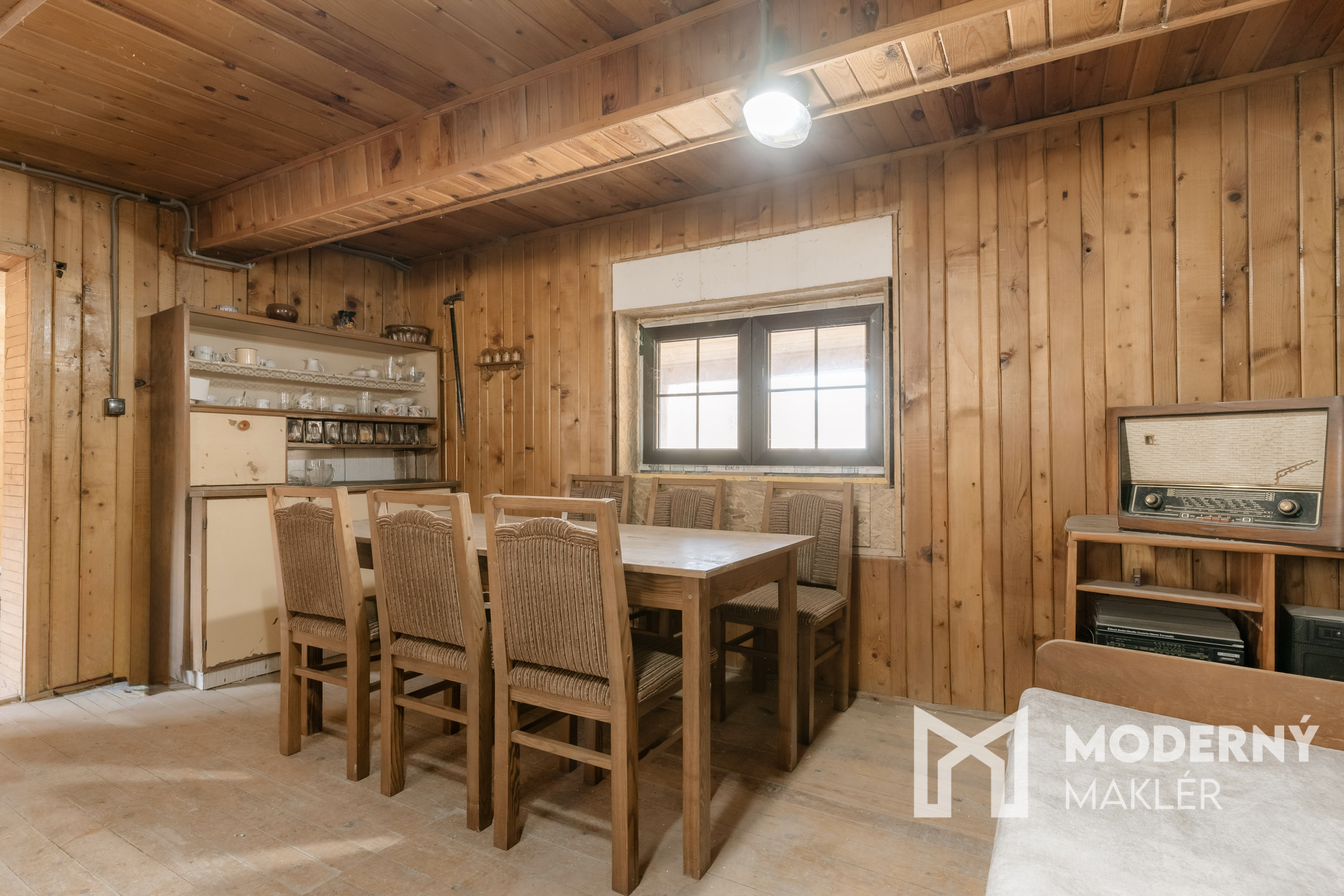 Nehnuteľnosť sa predáva čiastočne zariadená. Nachádza sa tu vybavená kúpeľňa a samostatná toaleta. V kuchyni je inštalovaná piecka, ktorá sa nachádza aj na dolnom, aj na hornom poschodí. Obytný priestor je vybavený jedálenským stolom so stoličkami.