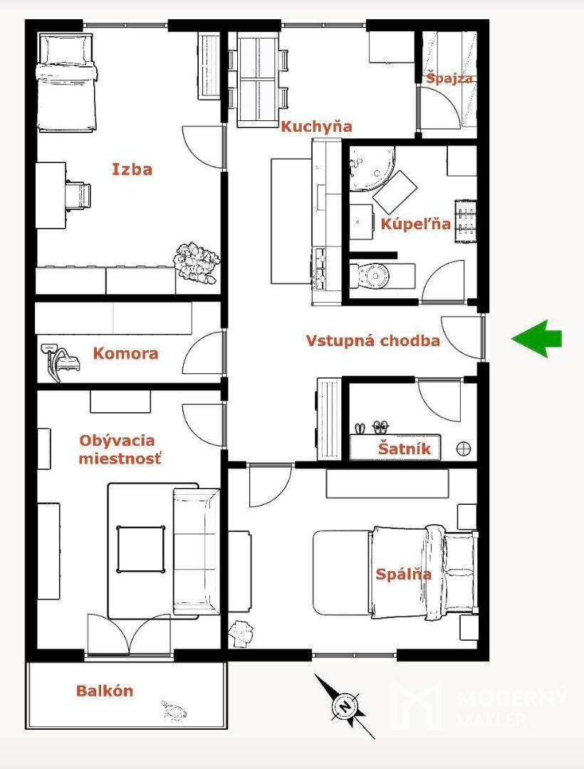 | Typ bytu: | 3-izbový byt |