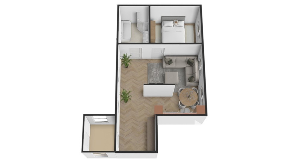 Nehnuteľnosť vyniká nadštandardnou mierou súkromia vďaka vlastnému samostatnému vstupu, ktorý je určený výhradne pre túto nehnuteľnosť. Hneď za dverami vás privíta súkromné schodisko, pod ktorým sa nachádza veľkorysý odkladací priestor – ideálny pre bezpečné umiestnenie bicyklov či kočíka. Samotná dispozícia bytu pozostáva zo vstupnej chodby, funkčne navrhnutej kuchyne spojenej s jedálenskou časťou a priestrannej obývacej izby. Nočnú časť tvorí samostatná izba, ktorú dopĺňa kúpeľňa spojená s toaletou.