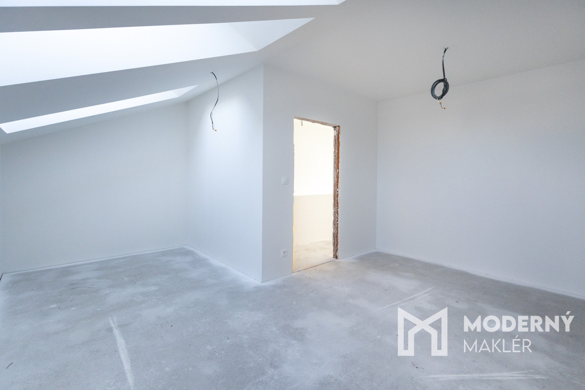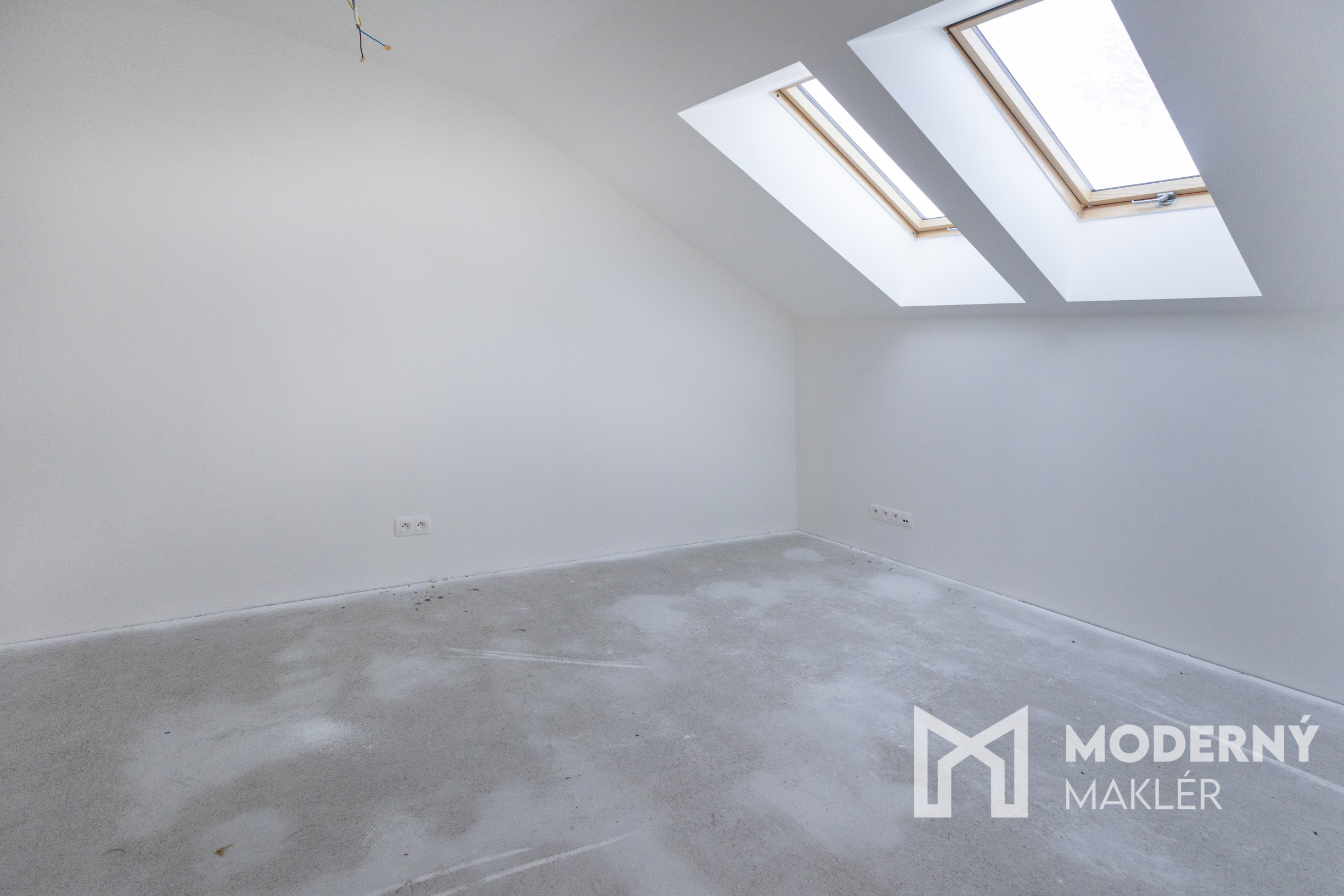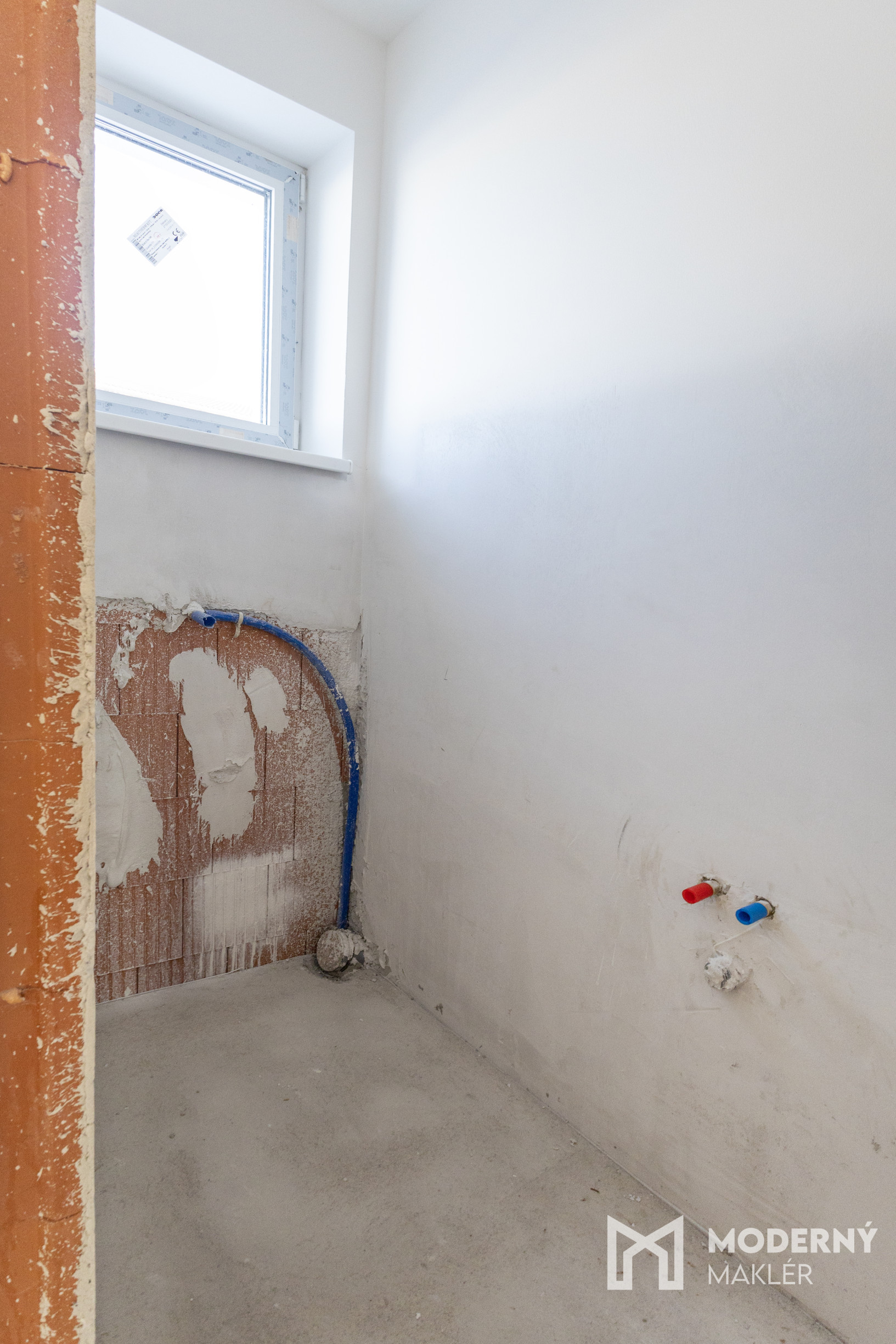 Dom bol postavený v roku 2025 z kvalitných tehál. Okná a vstupné dvere sú plastové, zabezpečujúce dobrú tepelnú izoláciu a ľahkú údržbu. V spodnej kúpeľni je predpríprava na toaletu s umývadlom a sprchovacím kútom pre každodenné použitie. Horná kúpeľňa je predpripravená na vaňu, sprchový kút, toaletu a priestranné umývadlo, čo poskytuje komfortné podmienky pre celú rodinu. Rodičovská spálňa ponúka prakticky riešený priestor pre zabudovaný šatník a je osvetlená podkrovnými oknami, ktoré zabezpečujú príjemné prirodzené osvetlenie.