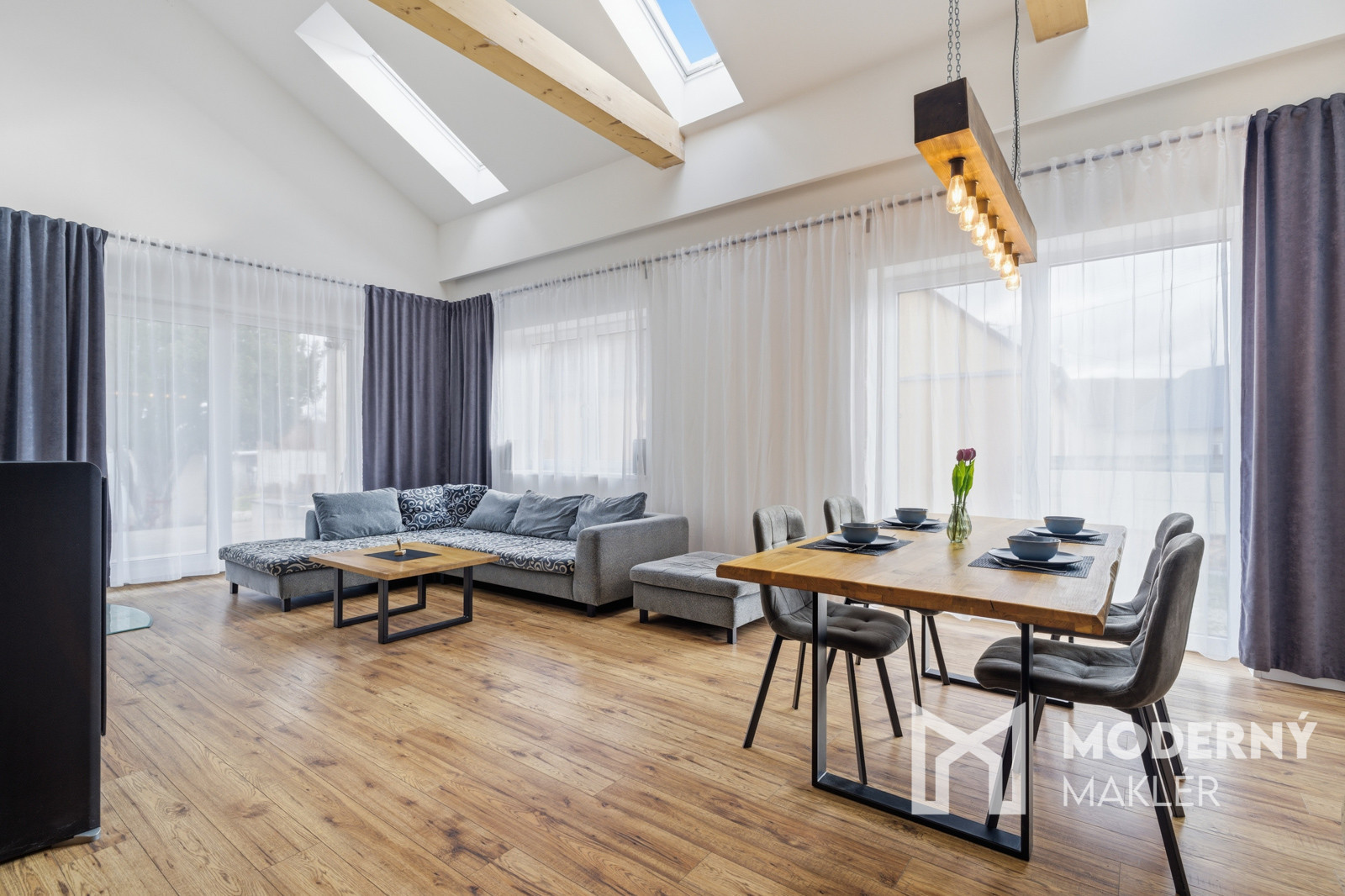 Nehnuteľnosť v obci Bučany predstavuje veľmi zaujímavú príležitosť pre každého, kto hľadá komfortné bývanie v pokojnom prostredí, no zároveň chce mať mesto na dosah ruky. Vďaka vzdialenosti približne 9 kilometrov od Trnavy je dostupnosť do mesta rýchla a pohodlná či už za prácou, školou alebo službami. Dom prešiel krásnou kompletnou rekonštrukciou, vďaka čomu ponúka moderné a príjemné bývanie bez nutnosti ďalších veľkých investícií. Interiér je pripravený tak, aby novému majiteľovi poskytol komfort, dostatok priestoru a pocit domova hneď od prvého momentu. Veľkým benefitom je krásny bazén s upraveným okolím, ktorý vytvára dokonalý priestor na relax a oddych priamo vo vlastnej záhrade. Budúci majiteľ si tak môže vychutnávať atmosféru letnej pohody a súkromia počas celého roka. Dom je ideálnou voľbou najmä pre rodinu s deťmi alebo pre ľudí, ktorí hľadajú priestranné bývanie v pokojnom prostredí s výbornou dostupnosťou do mesta.
