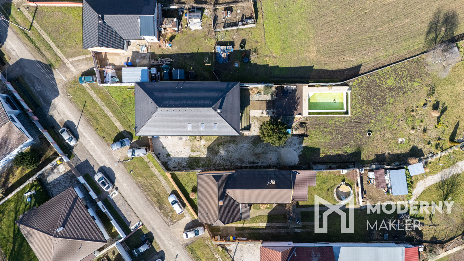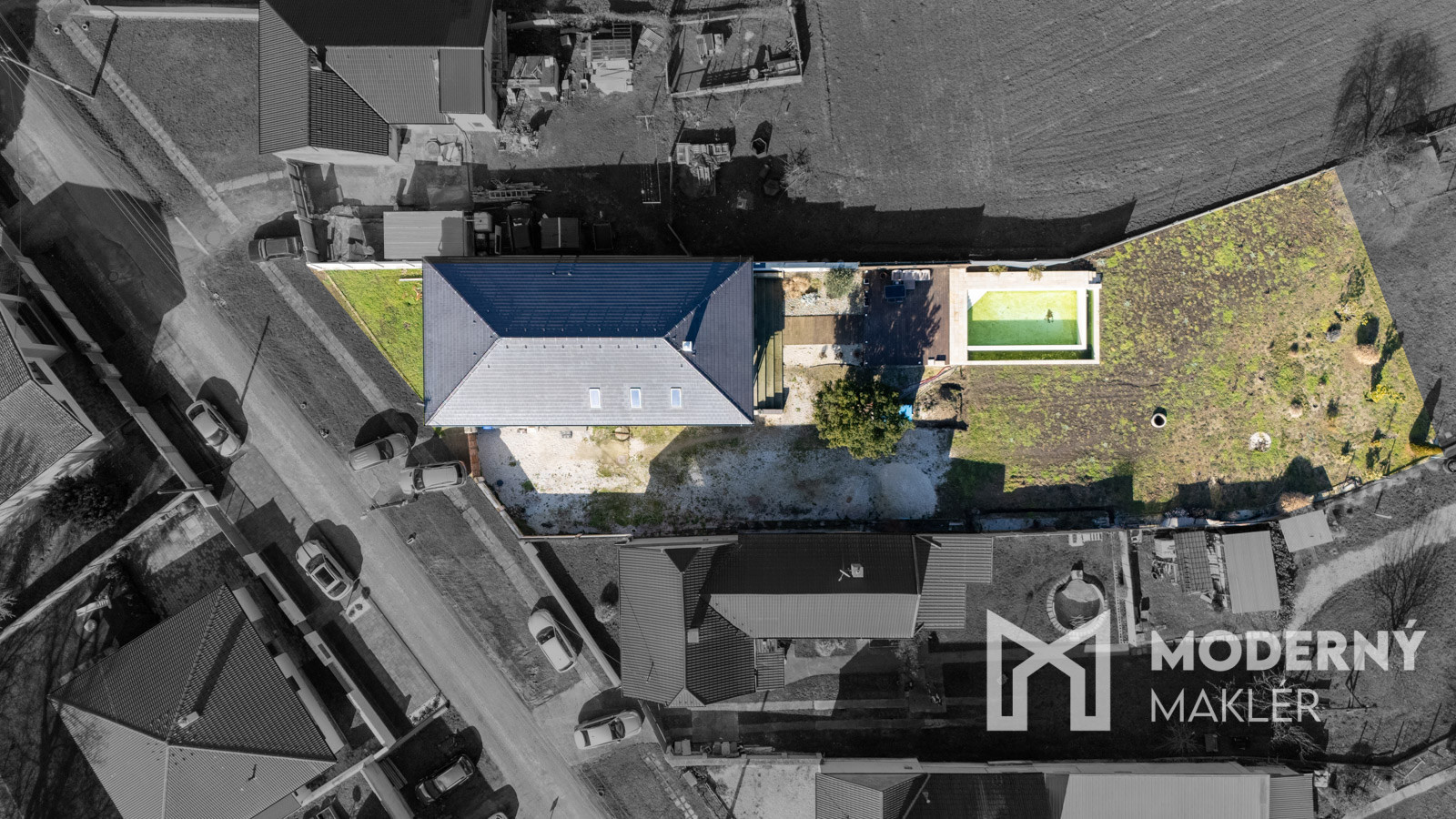 Rodinný dom bol postavený v roku 1975 a prešiel kompletnou rekonštrukciou začatou v roku 2017. Bazén bol vybudovaný z polystyrénových tvárnic. Dom je vybavený kvalitnými trojkomorovými oknami značky Salamander a veľkými posuvnými dverami v obývacej izbe aj spálni. Priestory majú predprípravu na žalúzie s integrovanými kaslami. Kúrenie zabezpečuje moderný systém podlahového vykurovania v kombinácii s plynovým kotlom a klimatizáciou, čo zabezpečuje komfort počas celého roka. Súčasťou systému je aj zásobník teplej vody s objemom 120 litrov. V obývačke sa nachádza sadrokartónový podhľad s dodatočnou tepelnou izoláciou z minerálnej vaty s hrúbkou 10 cm. Pod celou strechou je aplikovaná striekaná izolácia, ktorá výrazne zvyšuje energetickú efektívnosť domu a zároveň znižuje náklady na vykurovanie.