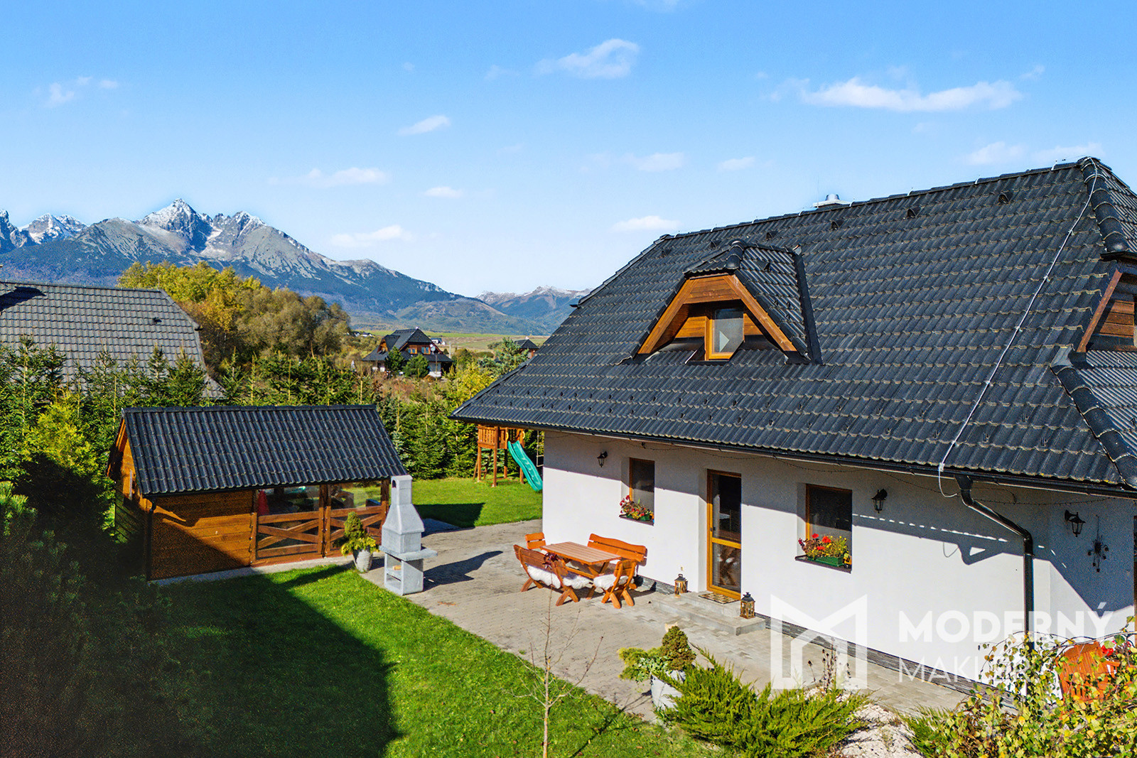 Moderný maklér ponúka na prenájom štýlovú a moderne zariadenú rekreačnú chatu situovanú v tichej a atraktívnej lokalite Tatranský Dvor, v obci Stará Lesná, okres Kežmarok. Chata sa nachádza v pokojnej časti novej zástavby s výborným prístupom, ponúka výnimočné súkromie a nádherný výhľad na Lomnický štít. Ide o ideálnu nehnuteľnosť pre milovníkov hôr, ticha a čistej tatranskej prírody, ktorá spája komfort celoročného bývania s vysokým investičným potenciálom na krátkodobý aj dlhodobý prenájom.