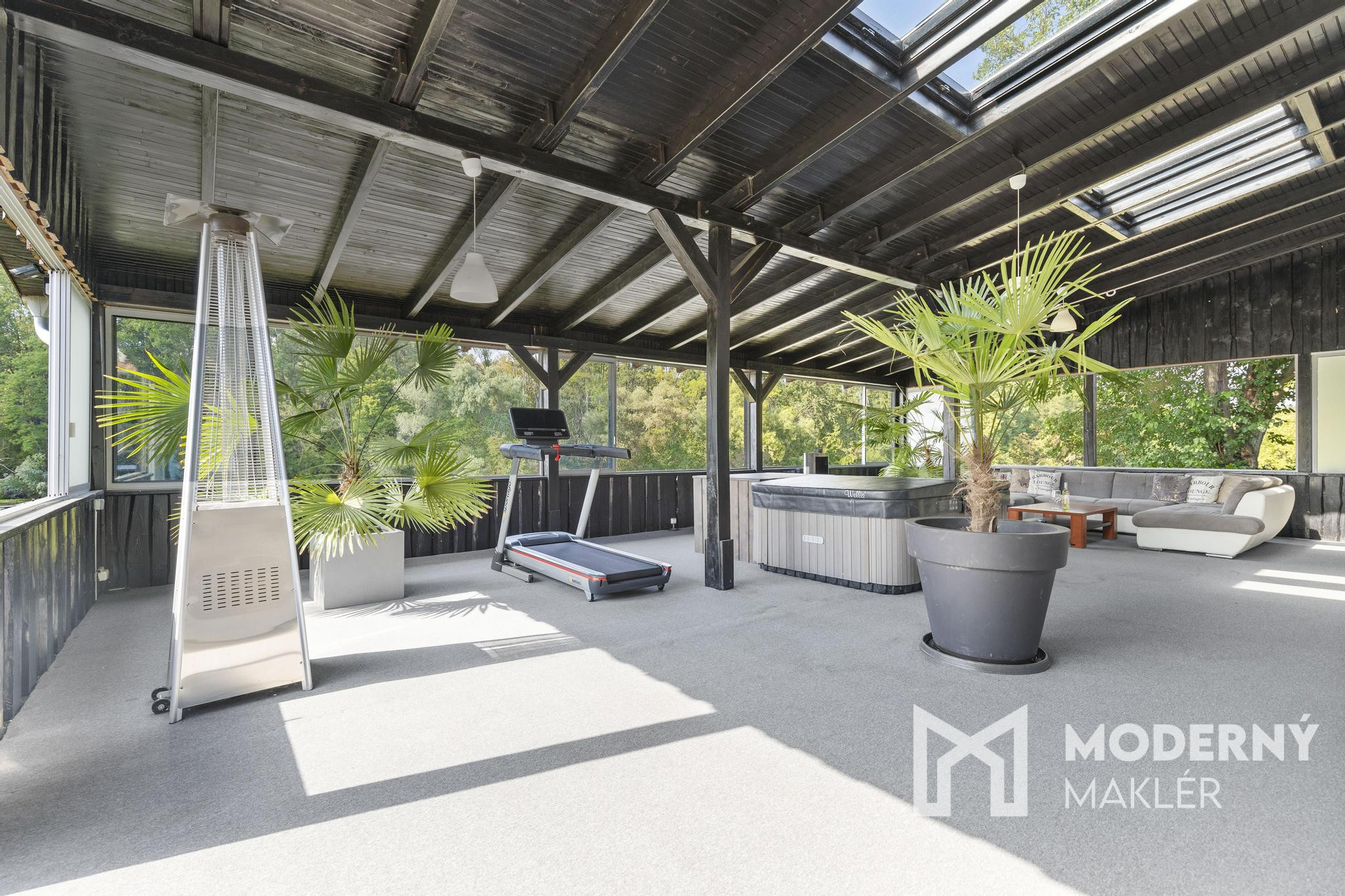 Veľkým benefitom objektu je priestranná krytá terasa s jedinečným výhľadom na Malý Dunaj, ktorá je ideálna ako vonkajšie posedenie pre hostí alebo relaxačná zóna. Priamo pri budove je zabezpečené parkovanie pre 5 vozidiel, ďalšie parkovacie možnosti sa nachádzajú v blízkej dostupnosti.