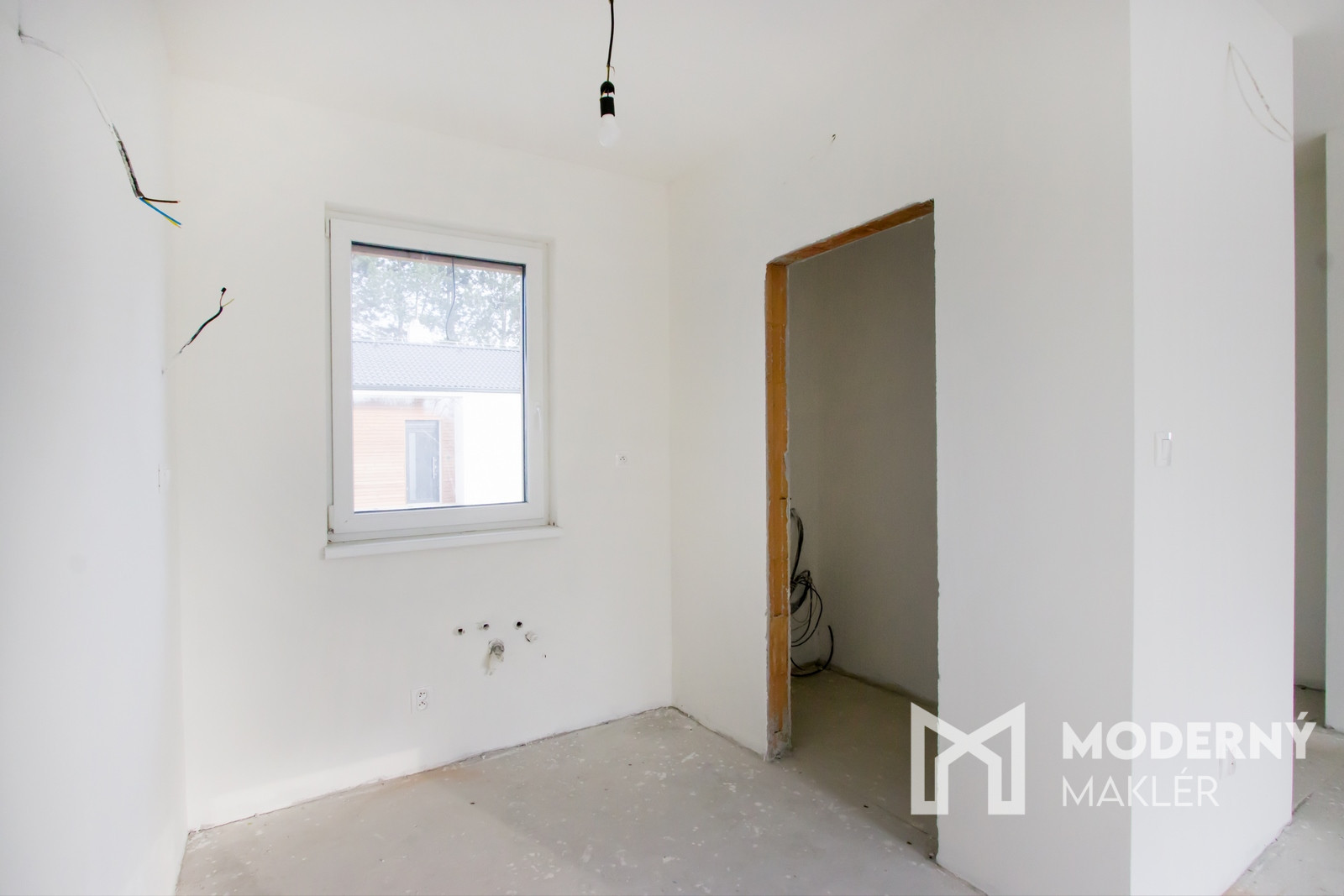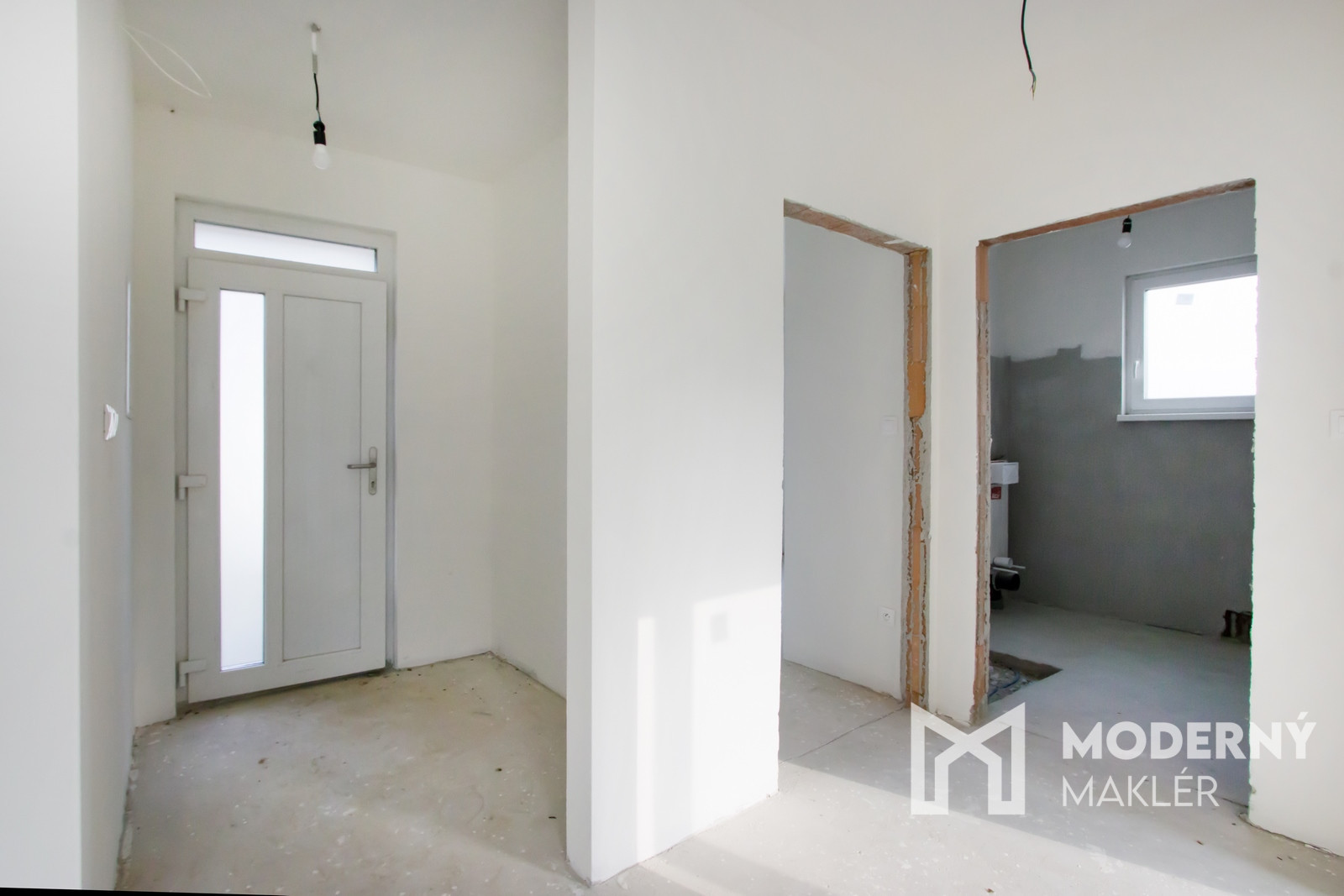 Nehnuteľnosť sa predáva v stave HOLODOM. V obývacej miestnosti je predpríprava na krb, ktorý šetrí náklady na vykurovanie a vytvára útulnú atmosféru. Stavba prebehla v roku 2023 a postavená je z kvalitných tehál (25 cm + 10 cm izolácia). Disponuje predprípravou na alarm a na vonkajšie žalúzie. V celom dome je podlahové kúrenie vodou a plastové okná. Nehnuteľnosť má izolovanú povalu. Na pozemku je voda riešená vŕtanou studňou (12 m) a odpad septikom. Vodárnička sa nachádza v šachte. Zásobník vody a kotol majú možnosť napojenia na fotovoltiku.