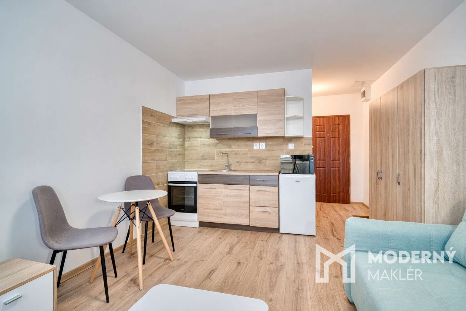Garsónka pozostáva zo vstupnej chodby, ktorá vás privíta pri vstupe do nehnuteľnosti. Nachádza sa tu priestranná obývačka spojená s kuchyňou, ktorá vytvára moderný otvorený priestor ideálny pre každodenný život aj pre prijímanie hostí. Súčasťou garsónky je tiež kúpeľňa spojená so záchodom, čo zabezpečuje praktické riešenie hygienických potrieb.