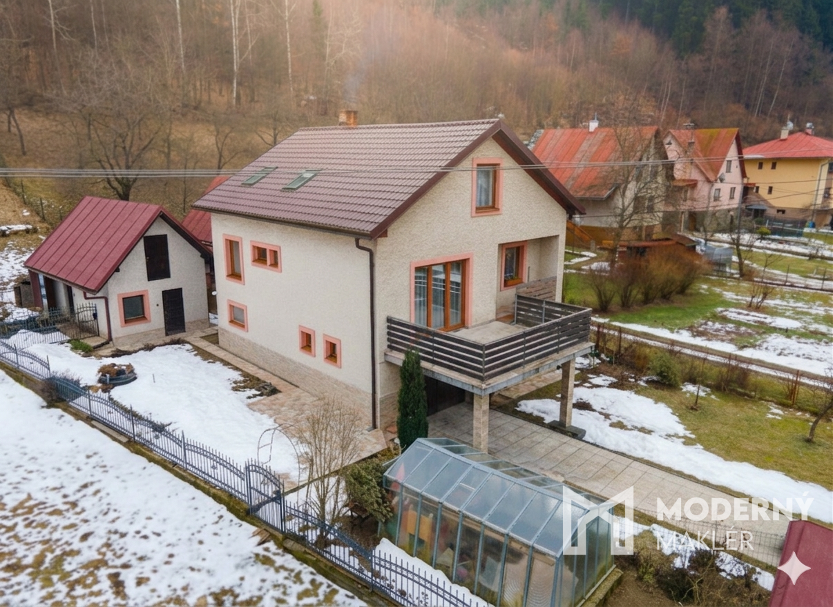 Dom sa predáva čiastočne zariadený. Okná boli v roku 2018 vymenené za kvalitné drevo okná s trojsklom, ktoré zabezpečujú výbornú tepelnú izoláciu. Kúrenie a strecha boli kompletne zrekonštruované. V celom dome sú položené drevené podlahy, s výnimkou kuchyne a detskej izby na prvom poschodí. Dom má vlastnú studňu, čo významne znižuje prevádzkové náklady. Na pozemku sa nachádza hospodárska budova s rozmermi 4x6 metrov, ktorá poskytuje dodatočný úložný priestor.