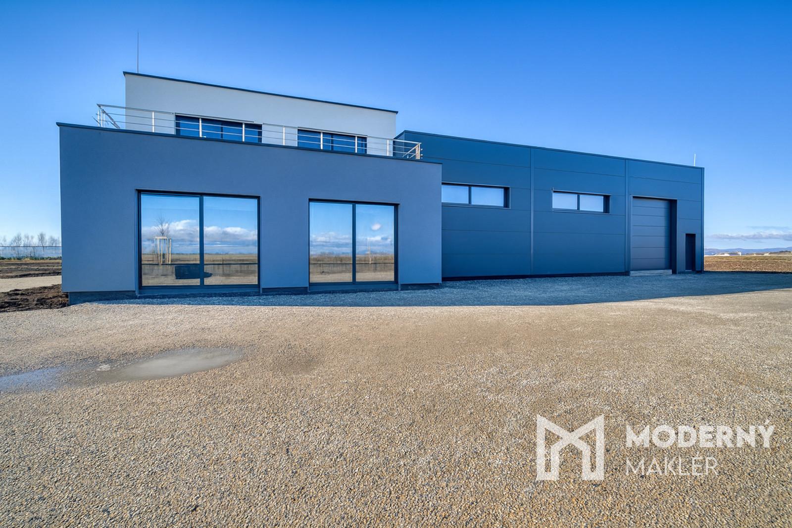 Objekt je rozdelený na administratívnu časť a skladovú halu, pričom obe sú prepojené tak, aby tvorili praktický a funkčný celok pre moderný chod firmy. Administratívna časť má spolu 177,85 m² (116,53 m² na prízemí + 61,32 m² na poschodí) a skladová hala disponuje výmerou 211,89 m². Súčasťou druhého podlažia je navyše terasa so zelenou strechou o rozlohe 39 m².