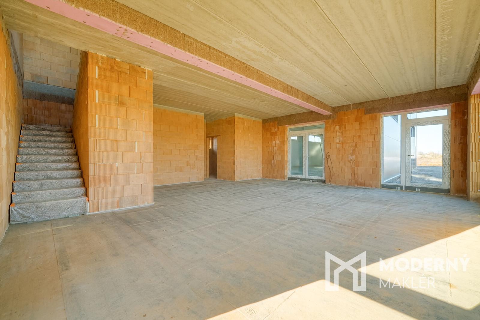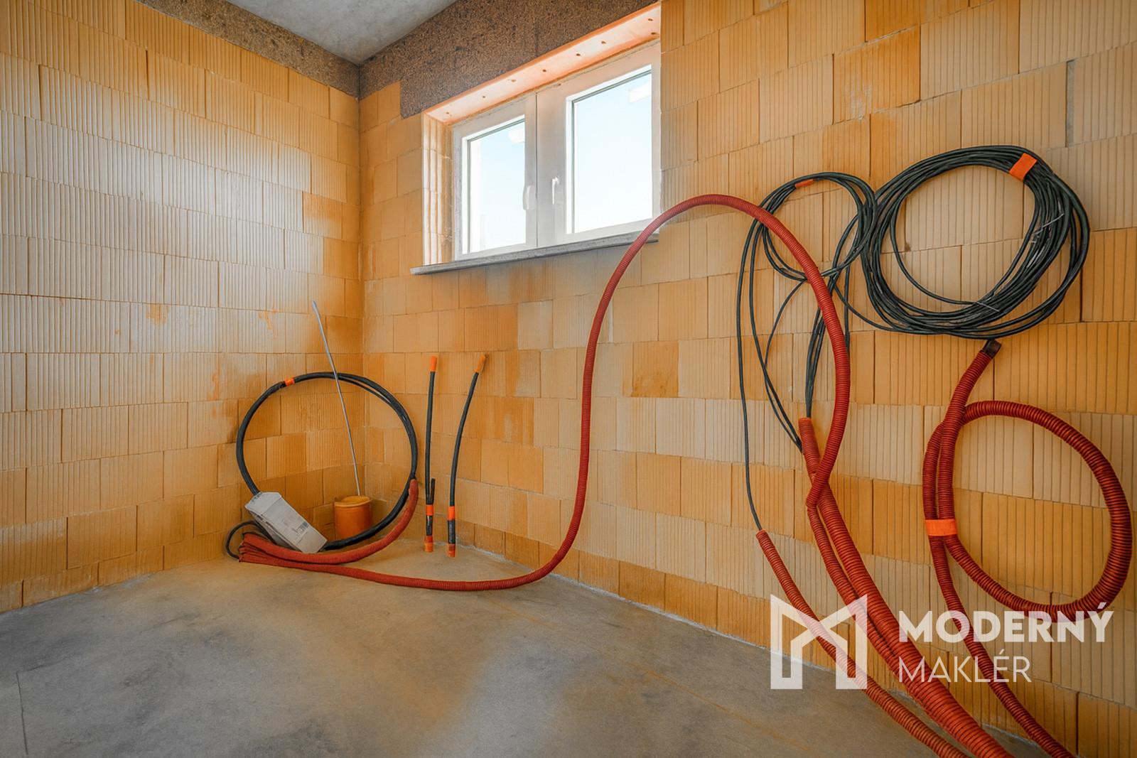 Nehnuteľnosť je postavená z kvalitných materiálov s dôrazom na pevnosť, odolnosť a nízke prevádzkové náklady. Administratívna časť je realizovaná z tehál 300 mm, vnútorné priečky majú hrúbku 100–150 mm a stropy sú zo železobetónových panelov Spiroll s hrúbkou 265 mm. Zateplenie pozostáva z kombinácie EPS a PIR v hrúbkach 150–200 mm. Strecha je jednoplášťová, tepelne izolovaná PIR/EPS a prekrytá PVC fóliou so systémom bezpečného odvodnenia. Skladová hala je vyhotovená zo sendvičových panelov, ktoré poskytujú vysokú pevnosť a dlhú životnosť. Navrhnutý zdroj vykurovania (tepelné čerpadlo) nie je súčasťou ceny, avšak rozvody podlahového kúrenia budú pripravené spolu s rozvodmi elektriny a vody. V tomto štádiu výstavby budú zároveň dokončené aj potery.