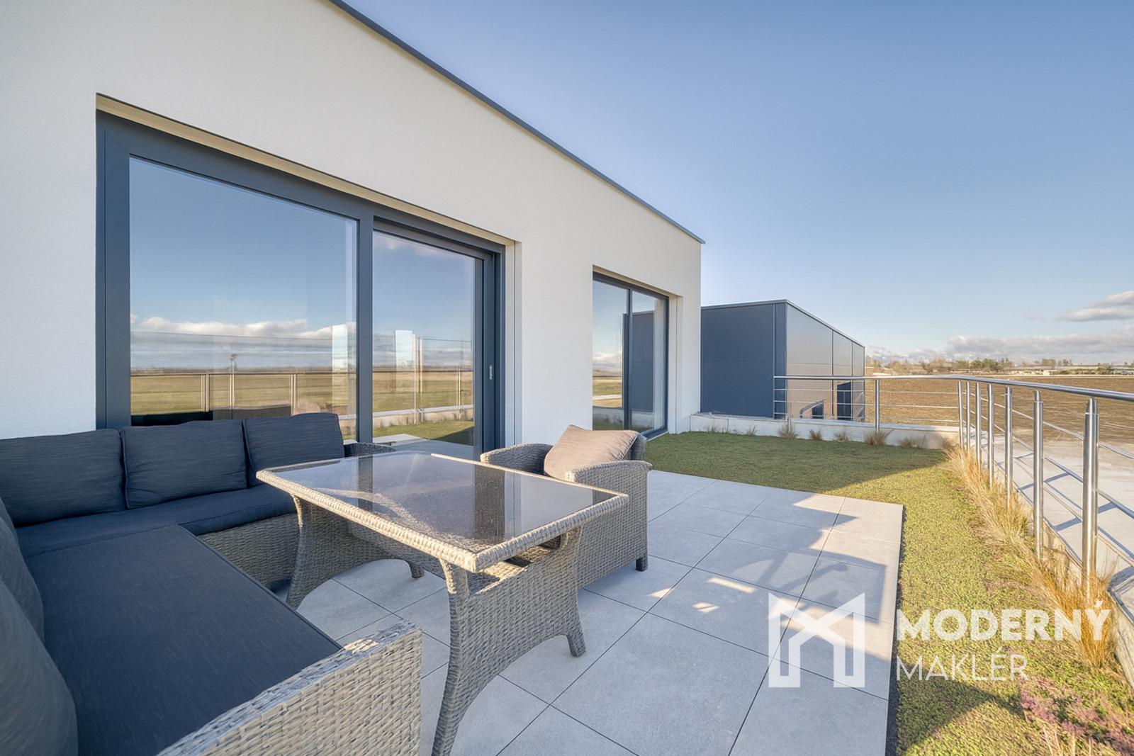 Na druhom podlaží sa nachádza priestranná kancelária (57,00 m²), predsieň (2,52 m²) a samostatné WC (1,80 m²). Z kancelárie je prístup na terasu so zelenou strechou (39 m²), ktorá vytvára atraktívny priestor na oddych, reprezentáciu aj neformálne pracovné stretnutia.