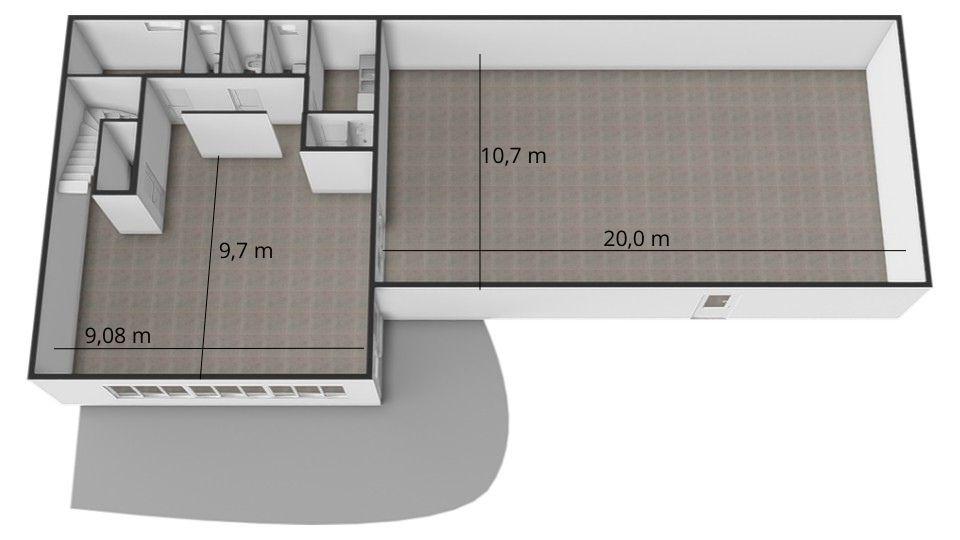 Na prízemí sa nachádza aj priestranná skladová hala s povrchom, ktorý je vhodný pre vyššie zaťaženie a priemyselné využitie. Výmera 211,89 m² poskytuje dostatok priestoru pre regálové systémy, manipulačnú techniku alebo technologické vybavenie. Prepojenie s administratívnou časťou umožňuje plynulý pohyb tovaru a efektívnu internú logistiku.