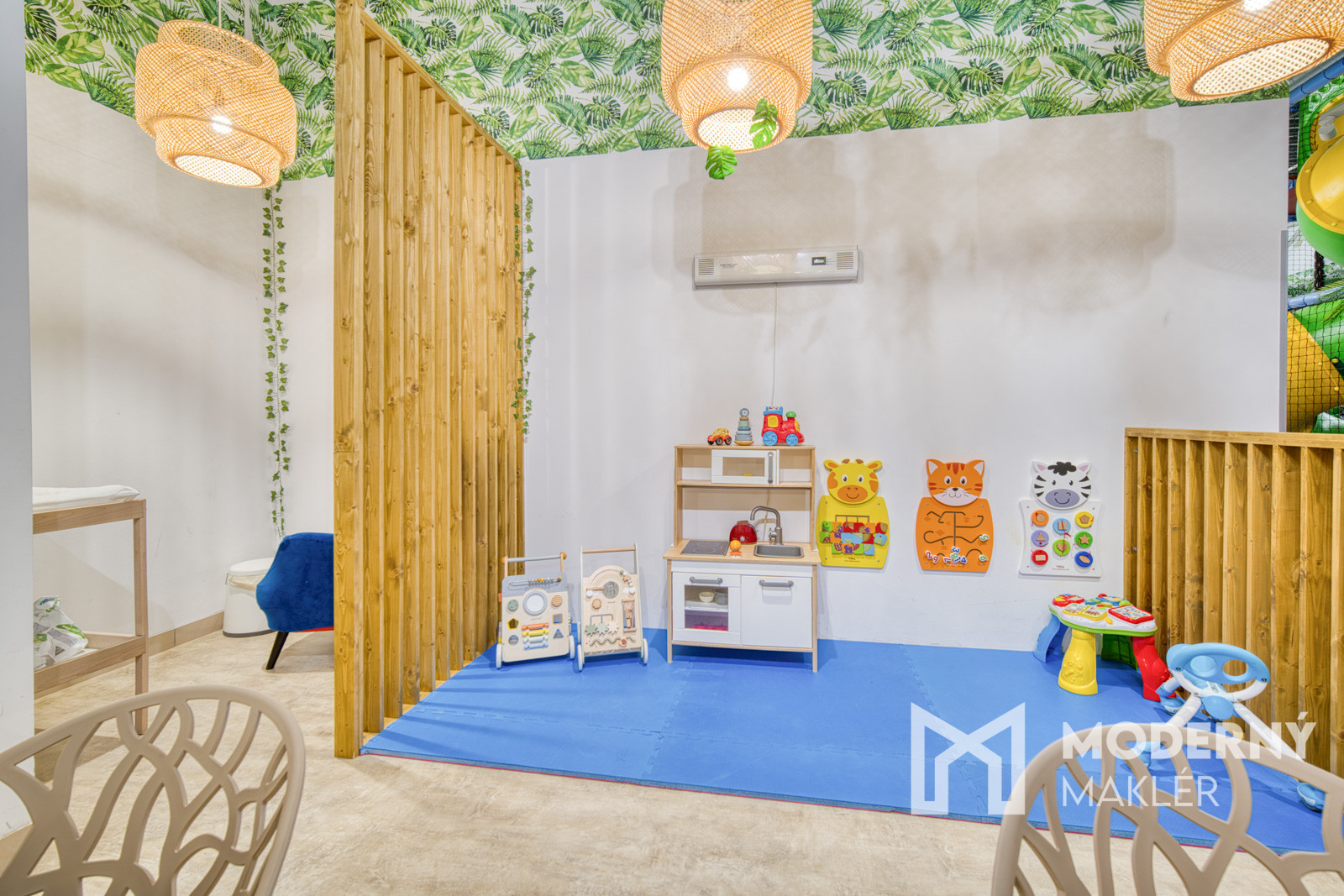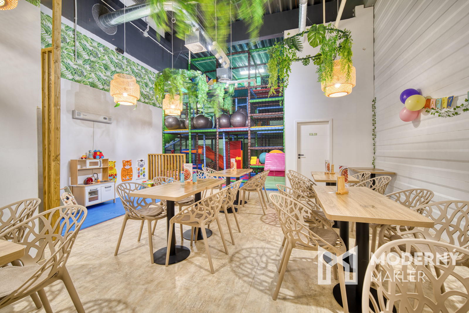 Súčasťou odstúpenia je plne vybavená kaviareň s profesionálnym kávovarom, chladničkami, vitrínou, gastro vybavením a zázemím na prípravu občerstvenia. Odstúpenie zahŕňa aj nábytok navrhnutý na mieru architektom, tematické dekorácie a doplnky na detské oslavy a eventy, všetky úložné priestory, organizačné vybavenie a funkčný pokladničný a personálny systém.