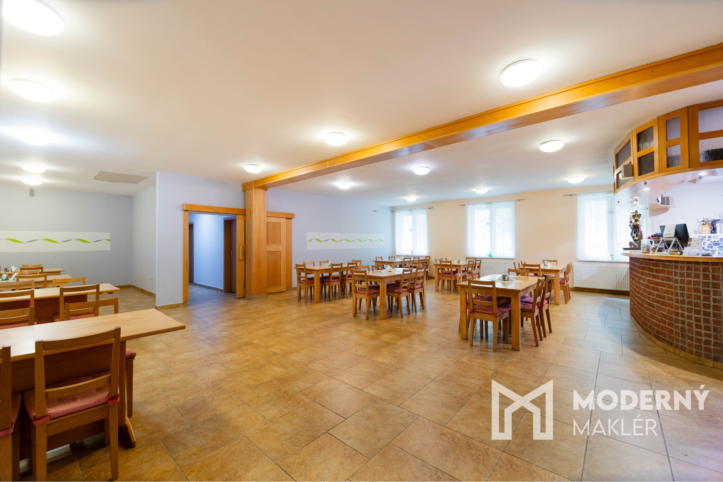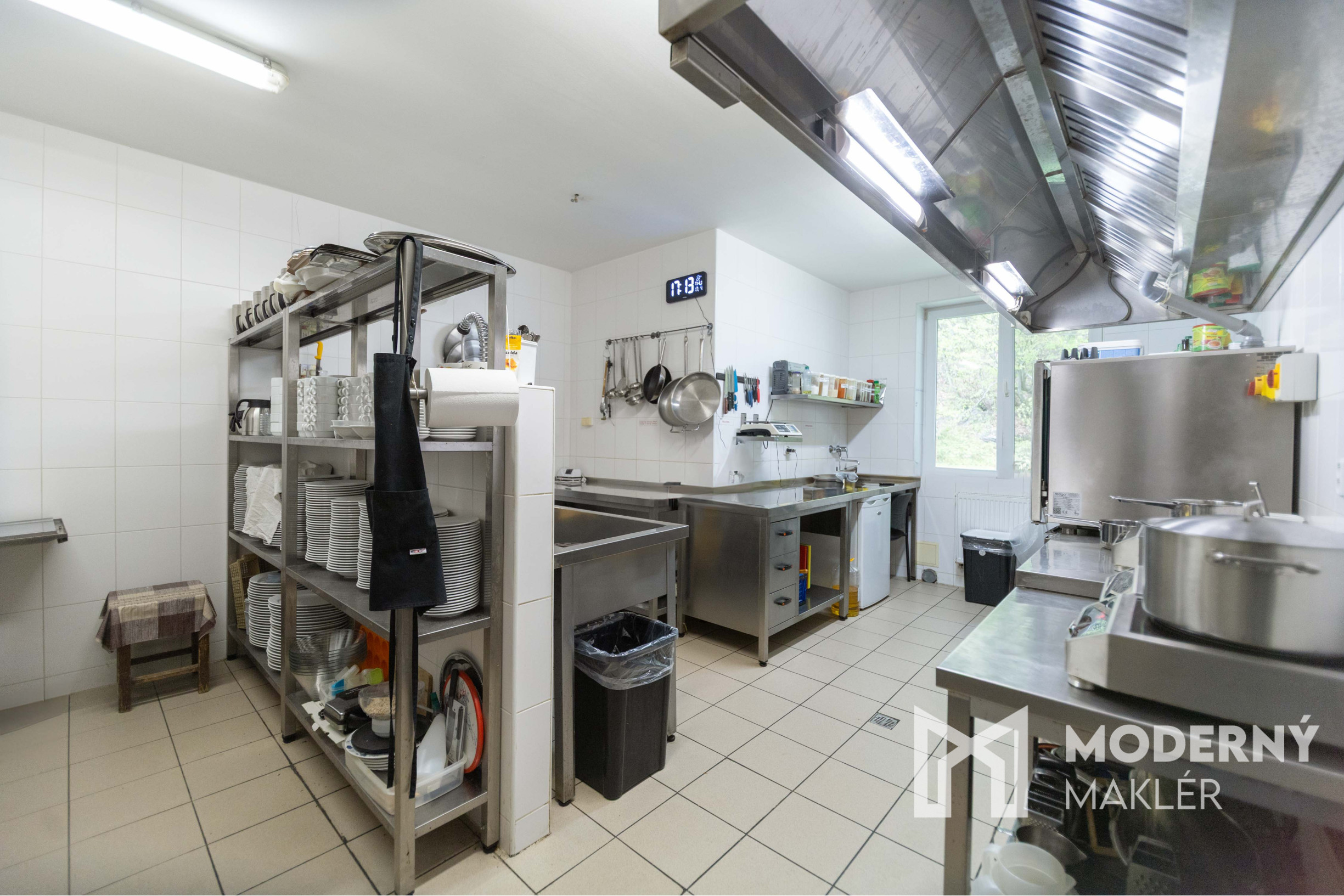 Gastro-prevádzka zahŕňa recepciu, profesionálne vybavenú kuchyňu, kanceláriu, skladové priestory, toalety a výstup na krytú terasu s možnosťou sedenia.