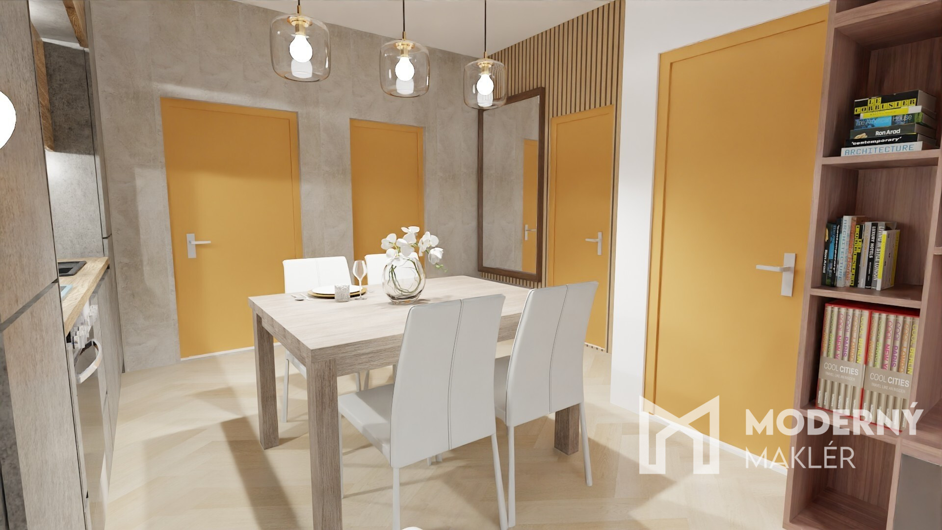 Moderný maklér ponúka na predaj úplne nový, slnečný 3-izbový apartmán v štádiu HOLOBYT, ktorý sa nachádza na Duklianskej ulici v Bardejove. Apartmán je situovaný na 3/6 podlaží domu s výťahom a prislúcha k nemu aj parkovacie miesto, ktoré je súčasťou predaja. Benefitom nehnuteľnosti je aj možnosť prenosu daňovej povinnosti na inú firmu (platcu DPH), nakoľko v cene je zarátaná aj DPH. Súčasťou inzerátu sú aj vizualizácie pre inšpiráciu nového majiteľa.