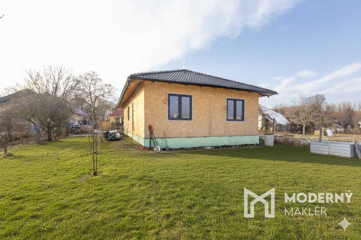Rok výstavby nehnuteľnosti je 2026. Jedná sa o novostavbu rodinného domu, ktorý predstavuje samostatne stojaci, jednopodlažný, nepodpivničený objekt so šikmou strechou bez obytného podkrovia. Dom je konštruovaný ako drevodom zo sendvičovej stenovej konštrukcie, ktorá zabezpečuje výborné tepelno-izolačné vlastnosti a ekologický charakter stavby. Tepelná izolácia bude realizovaná pomocou minerálnej vlny, čo zaručuje efektívnu energetickú úspornosť a komfort bývania. Vykurovací systém bude riešený moderným tepelným čerpadlom, ktoré predstavuje ekonomické a environmentálne šetrné riešenie pre celoročné vykurovanie objektu.