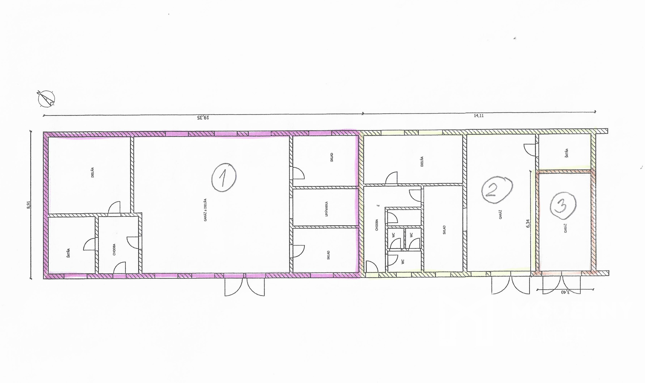 Obchodný skladovací priestor č.1 - výmera 174m2 + pozemok/ spevnené plochy196m2