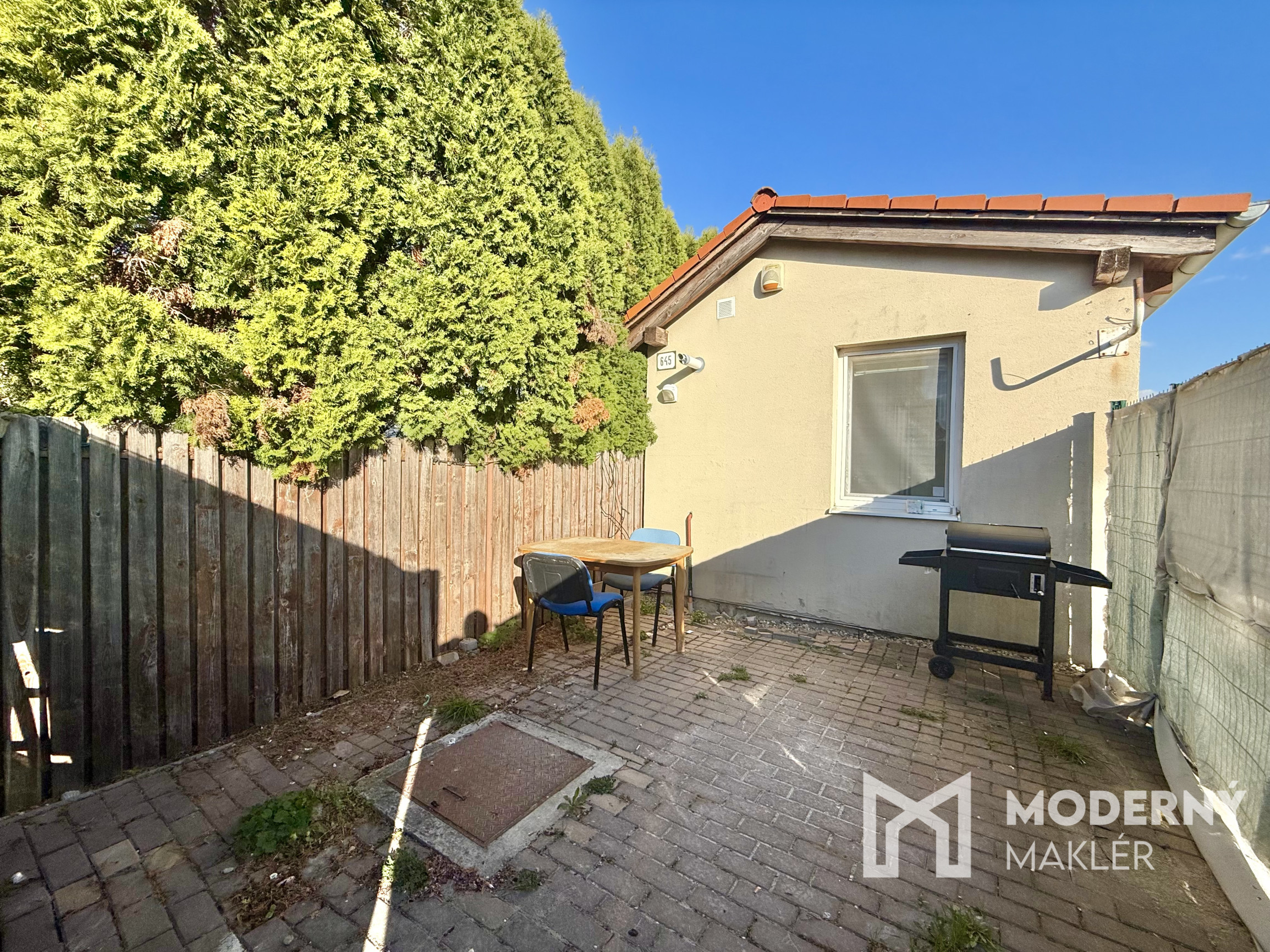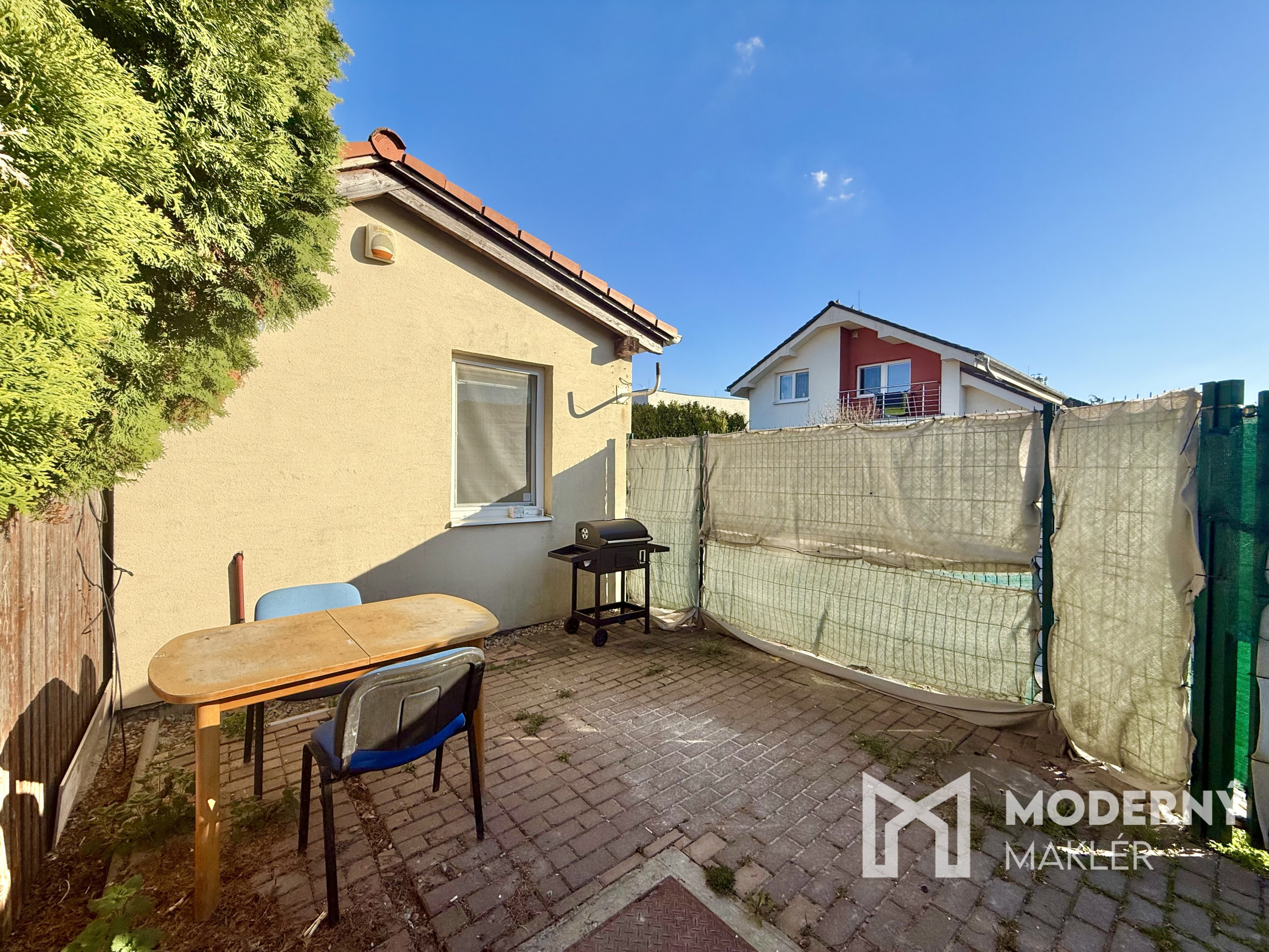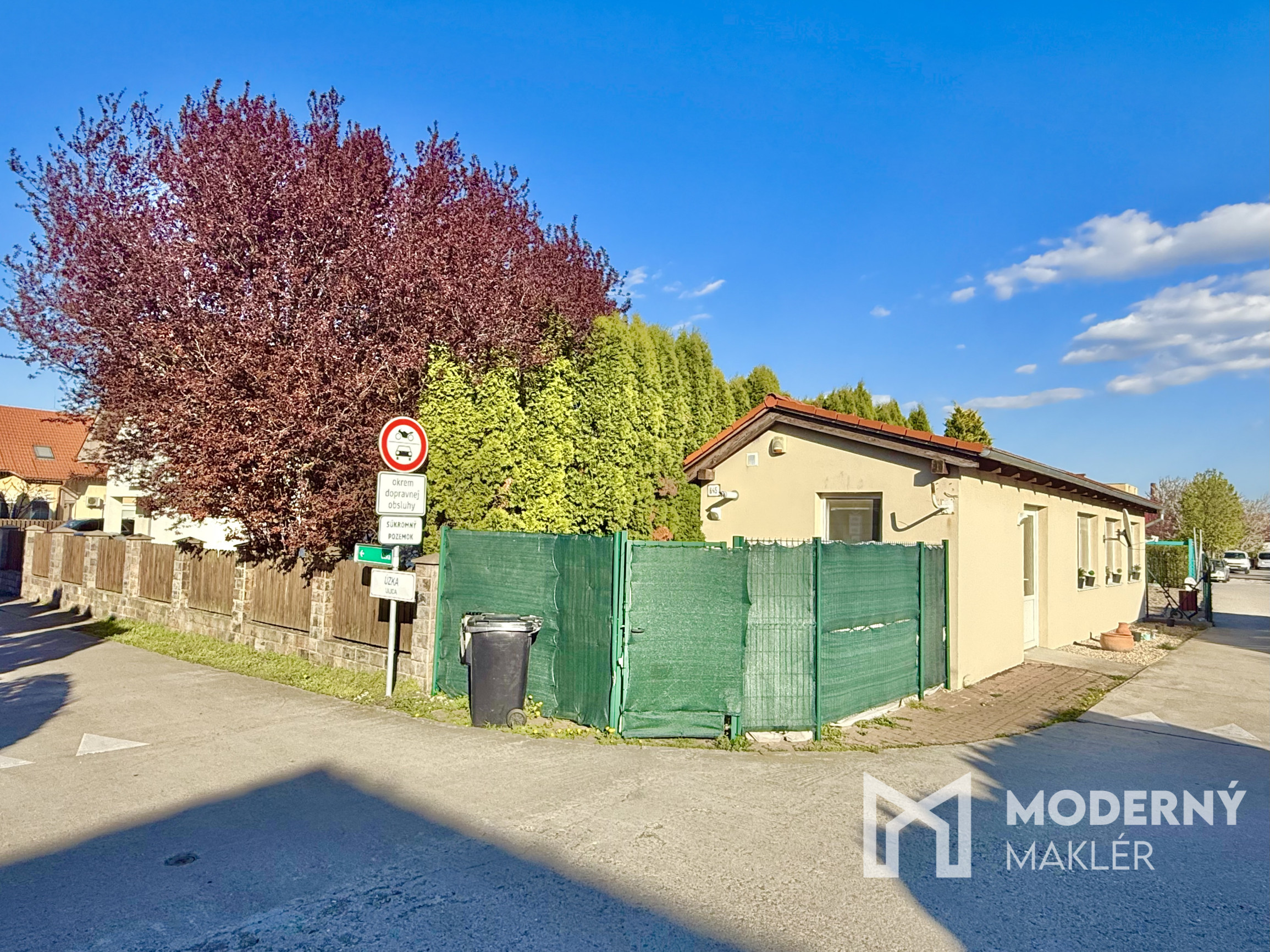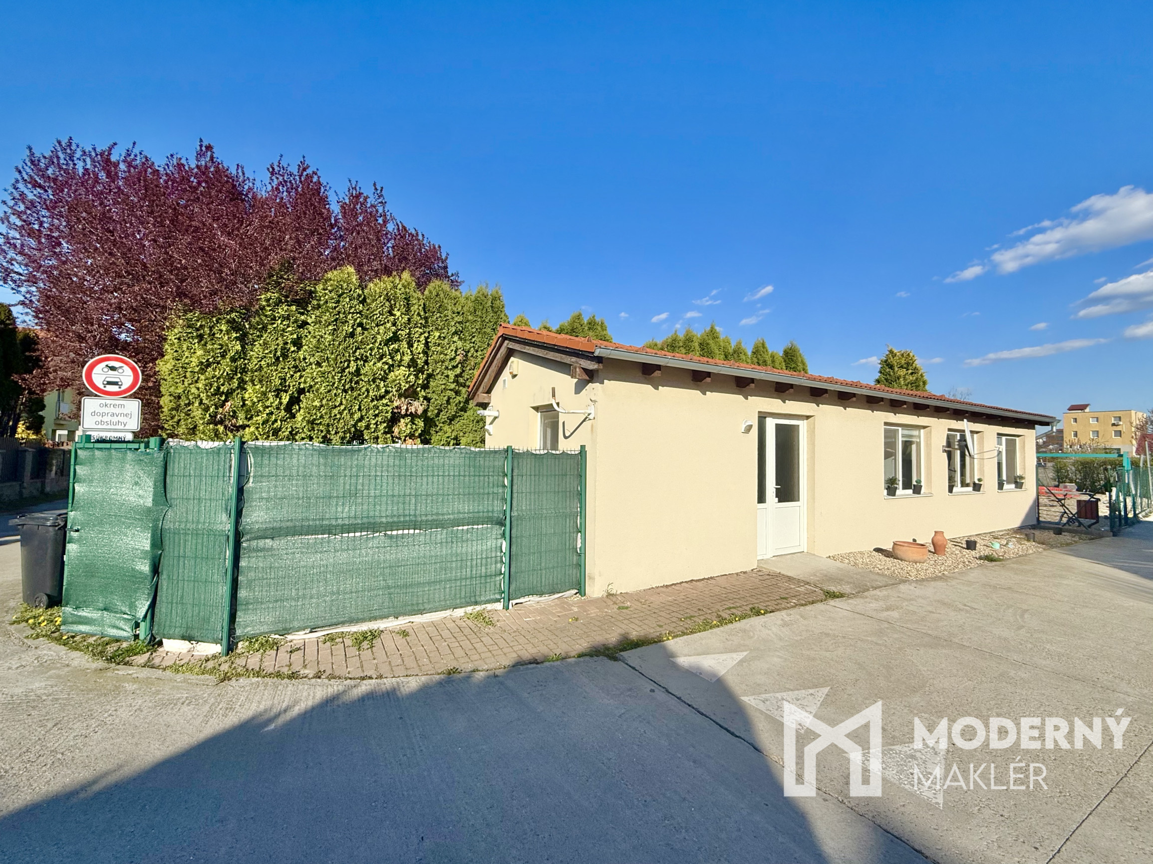 Ponúkaný dom sa nachádza na Úzkej ulici v Rovinke v tichej lokalie v zástavbe rodinných domov. K domu prislúcha oplotená vydláždená terasa o výmere približne 15 m2. Dom pozostáva z 2 obytných miestností – obývačka prepojená s kuchyňou a samostatná spálňa, a príslušenstva: kúpeľňa so sprchovým kútom a toaletou. Zastavaná plocha domu je 60m2. Orientácia domu je juhozápadná. Ohrev teplej vody zabezpečuje vlastný plynový kotol a vykurovanie je doskovými radiátormi. Vstup do domu je priamo z tichej uličky. Pri vchode je miesto na parkovanie jedného vozidla.