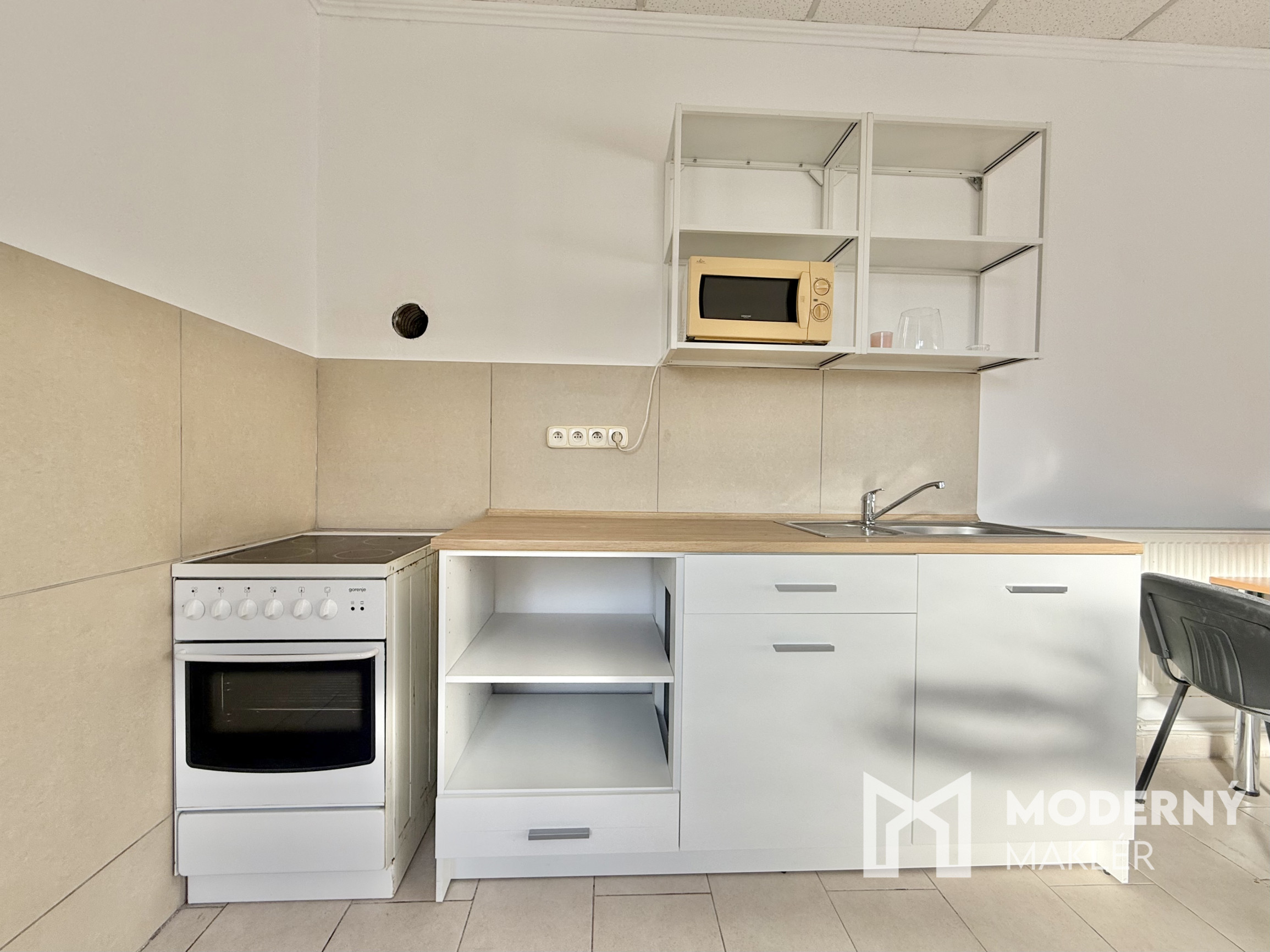 Zo vstupu sa vchádza priamo do kuchyne spojenej s obývacou izbou. Z priestoru pri kuchynskej linke je vľavo vstup do kúpeľne so sprchovým kútom a samostatná toaleta s umývadlom a nachádza sa tu aj vlastný elektrický kotol na ohrev teplej vody a kúrenie. Z obývacej izby sa vstupuje do samostatnej spálne. Kuchynská linka je vybavená spotrebičmi: elektrický sporák s rúrou, mikrovlnná rúra. Bytový dom je tehlový, zateplený (rok výstavby 2007), má plastové okná s vnútornými Alu žalúziami a plastové vstupné dvere. V dome je dostupné Wi‑Fi pripojenie.