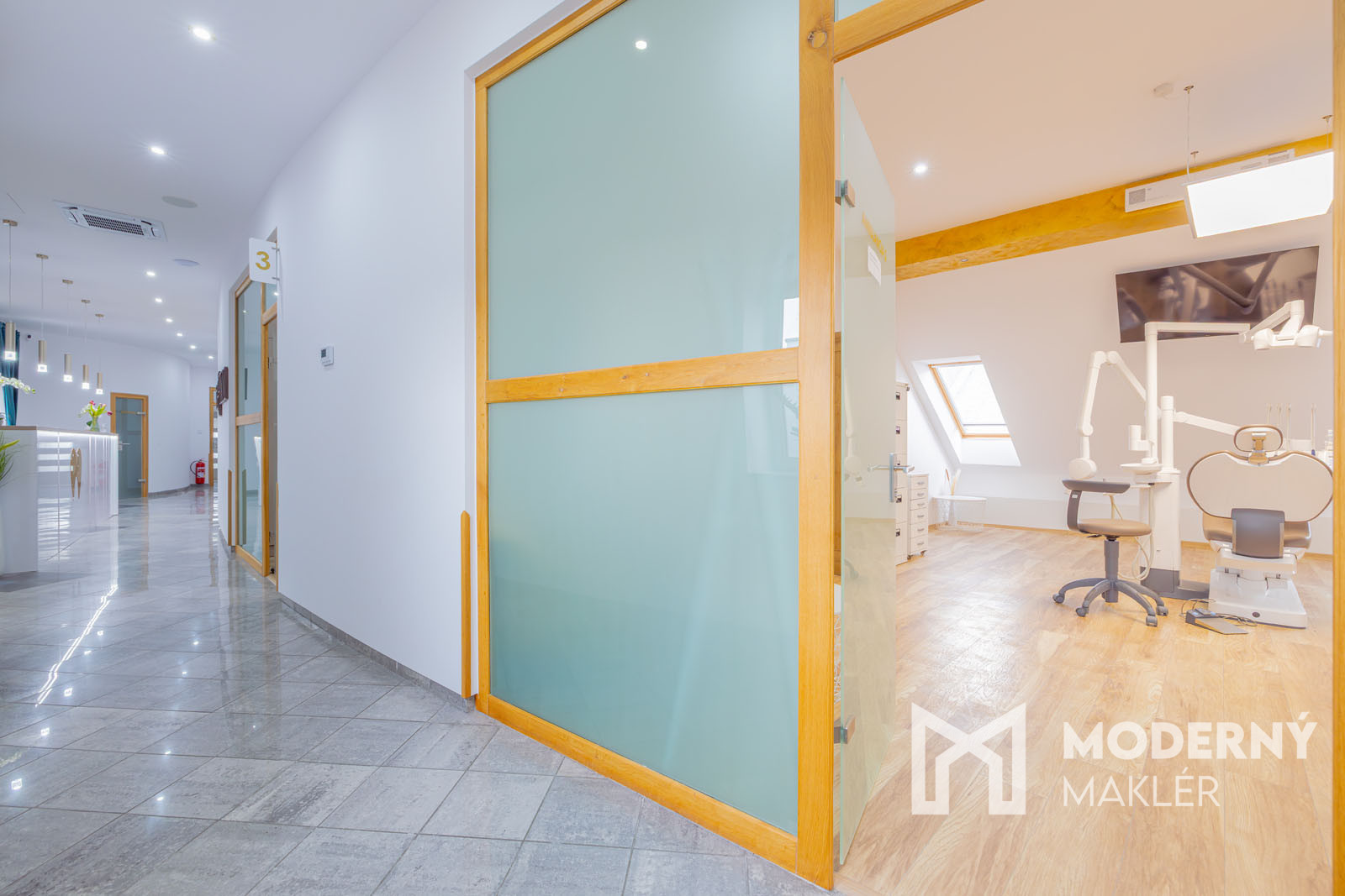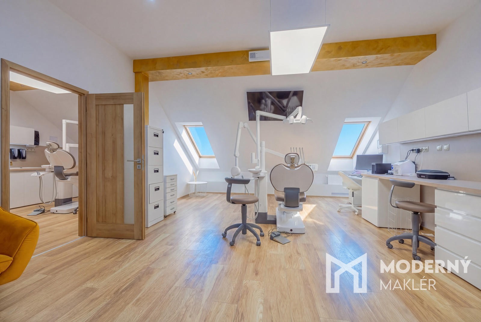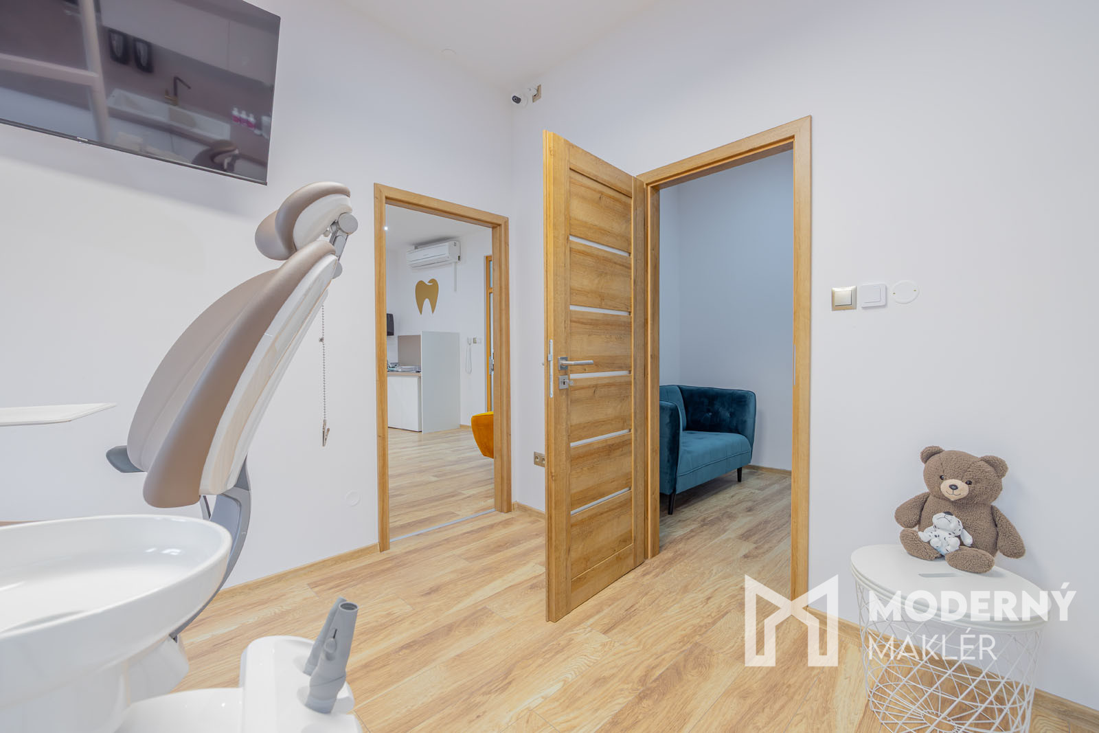 Dispozícia kliniky je navrhnutá s dôrazom na komfort lekárov aj pacientov. Okrem odborných pracovísk tu nájdete priestrannú čakáreň s detským kútikom, čo ocenia najmä rodiny s deťmi. Zázemie pre personál pozostáva z modernej kuchynky a šatne, zatiaľ čo administratívne záležitosti je možné riešiť v samostatnej, tichej kancelárii. Nehnuteľnosť obsahuje: 3x plne vybavenú ambulancia, 2x lokálny RTG priamo pri kresle, 1x veľký panoramatický 360° RTG.