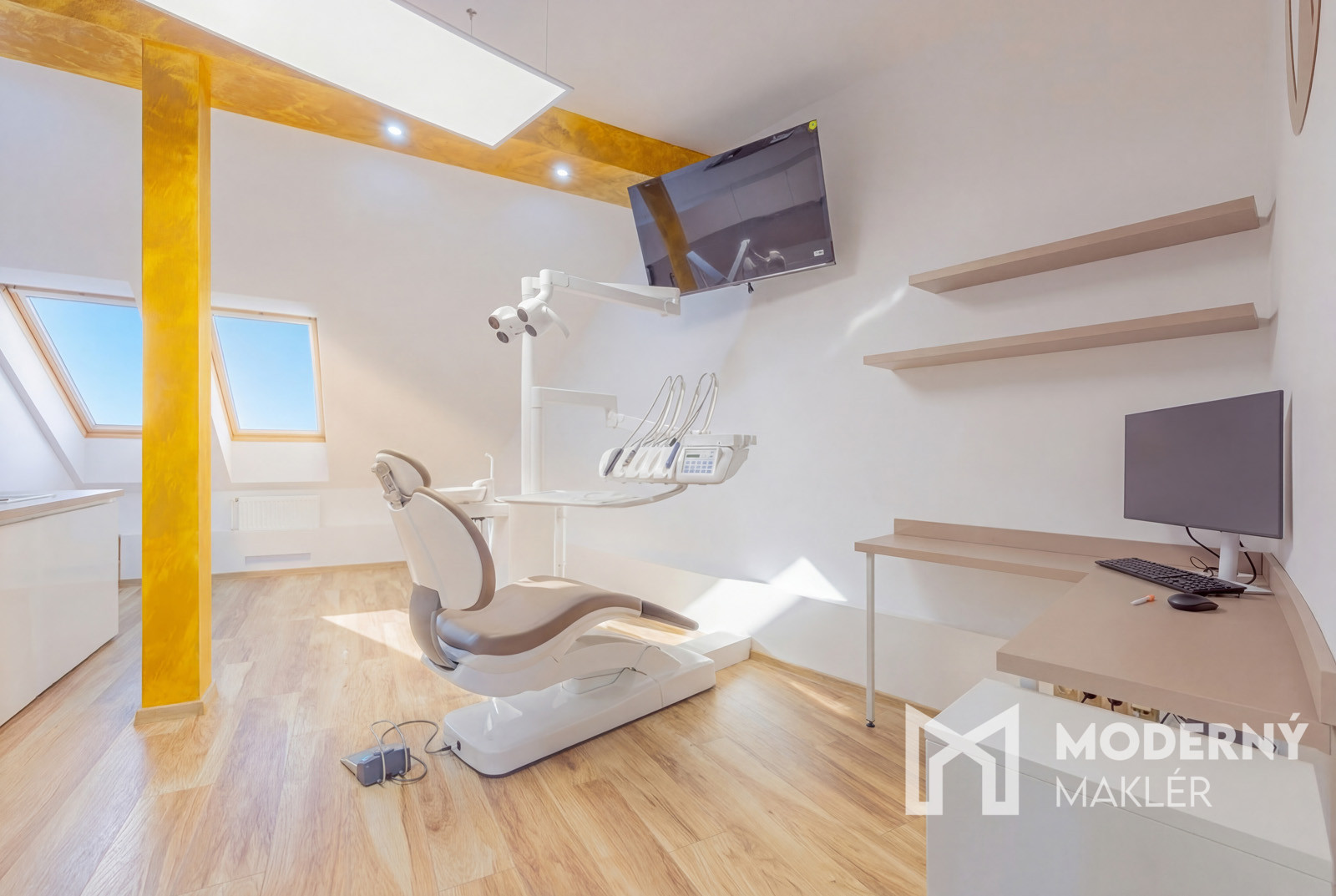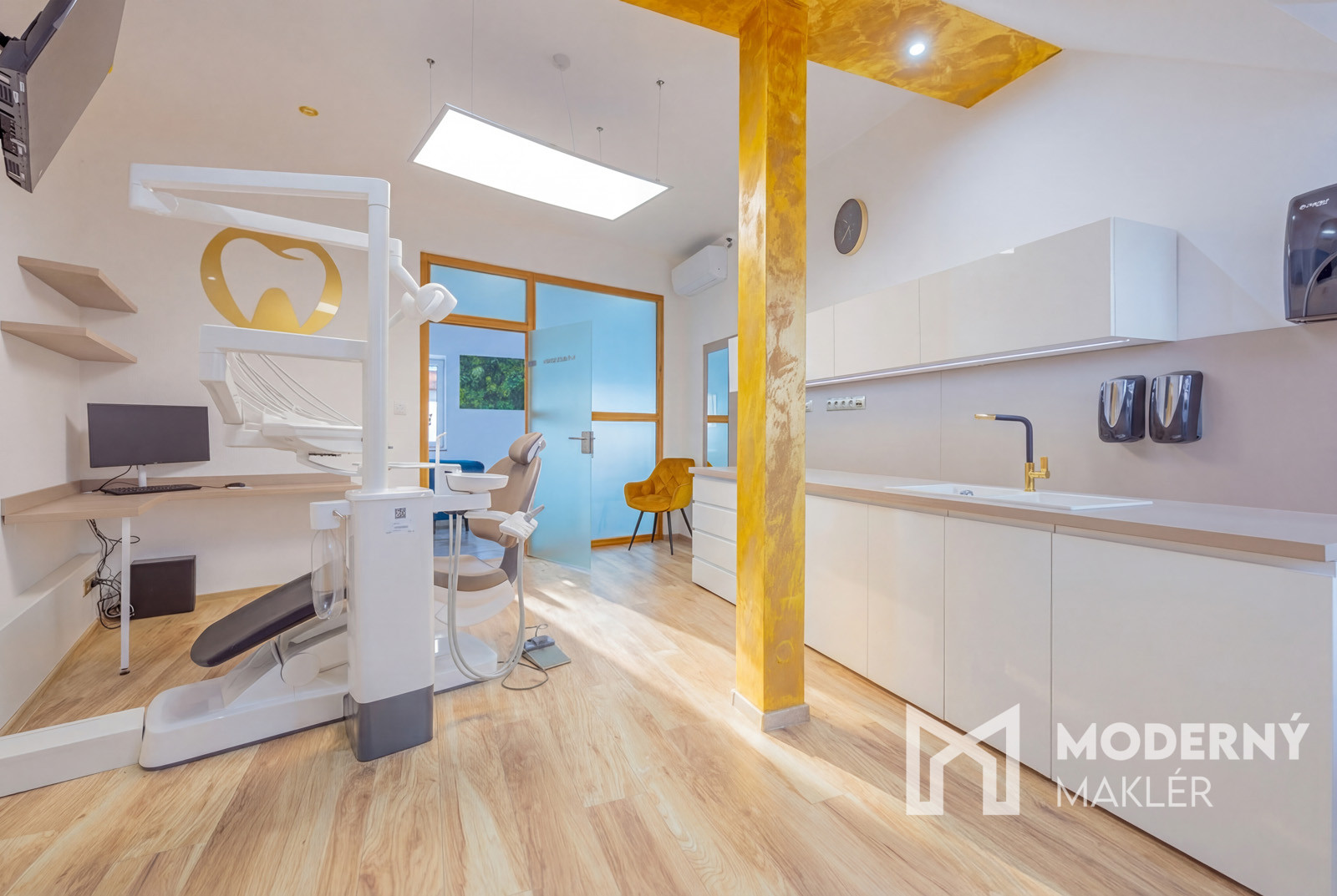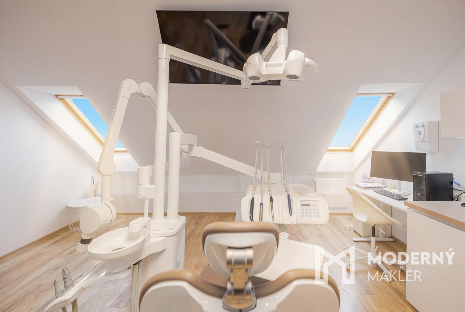 Dispozícia kliniky je navrhnutá s dôrazom na komfort lekárov aj pacientov. Okrem odborných pracovísk tu nájdete priestrannú čakáreň s detským kútikom, čo ocenia najmä rodiny s deťmi. Zázemie pre personál pozostáva z modernej kuchynky a šatne, zatiaľ čo administratívne záležitosti je možné riešiť v samostatnej, tichej kancelárii. Nehnuteľnosť obsahuje: 3x plne vybavenú ambulancia, 2x lokálny RTG priamo pri kresle, 1x veľký panoramatický 360° RTG.