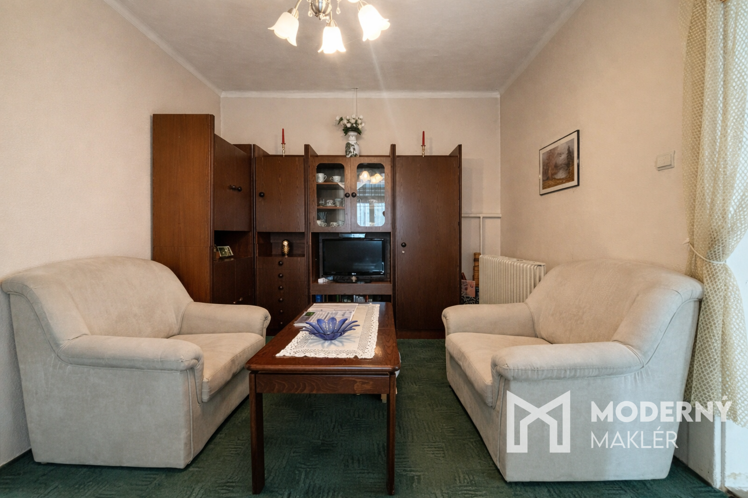 Rodinný dom pozostáva z dvoch izieb, priestrannej kuchyne, verandy, predsiene, praktickej špajze a kúpeľne. Nehnuteľnosť je orientovaná na juhovýchod, čo zabezpečuje výborné prirodzené osvetlenie počas celého dňa. Obytné priestory sú navrhnuté tak, aby maximálne využili slnečné svetlo a vytvorili príjemnú atmosféru v celom byte.