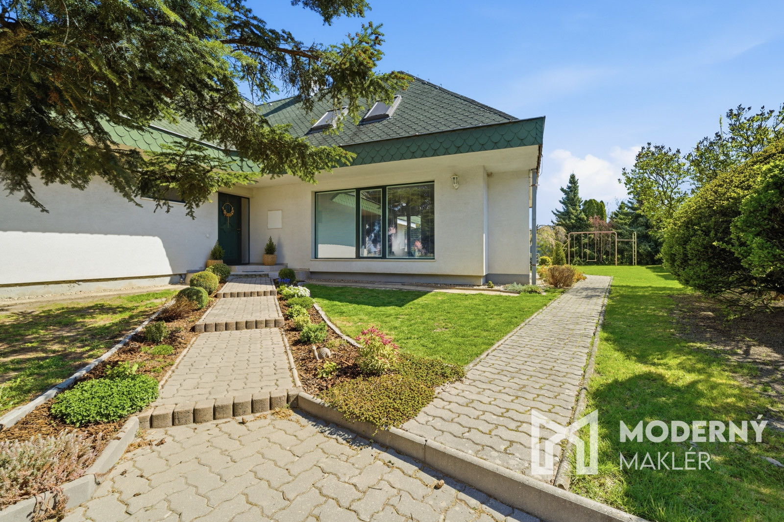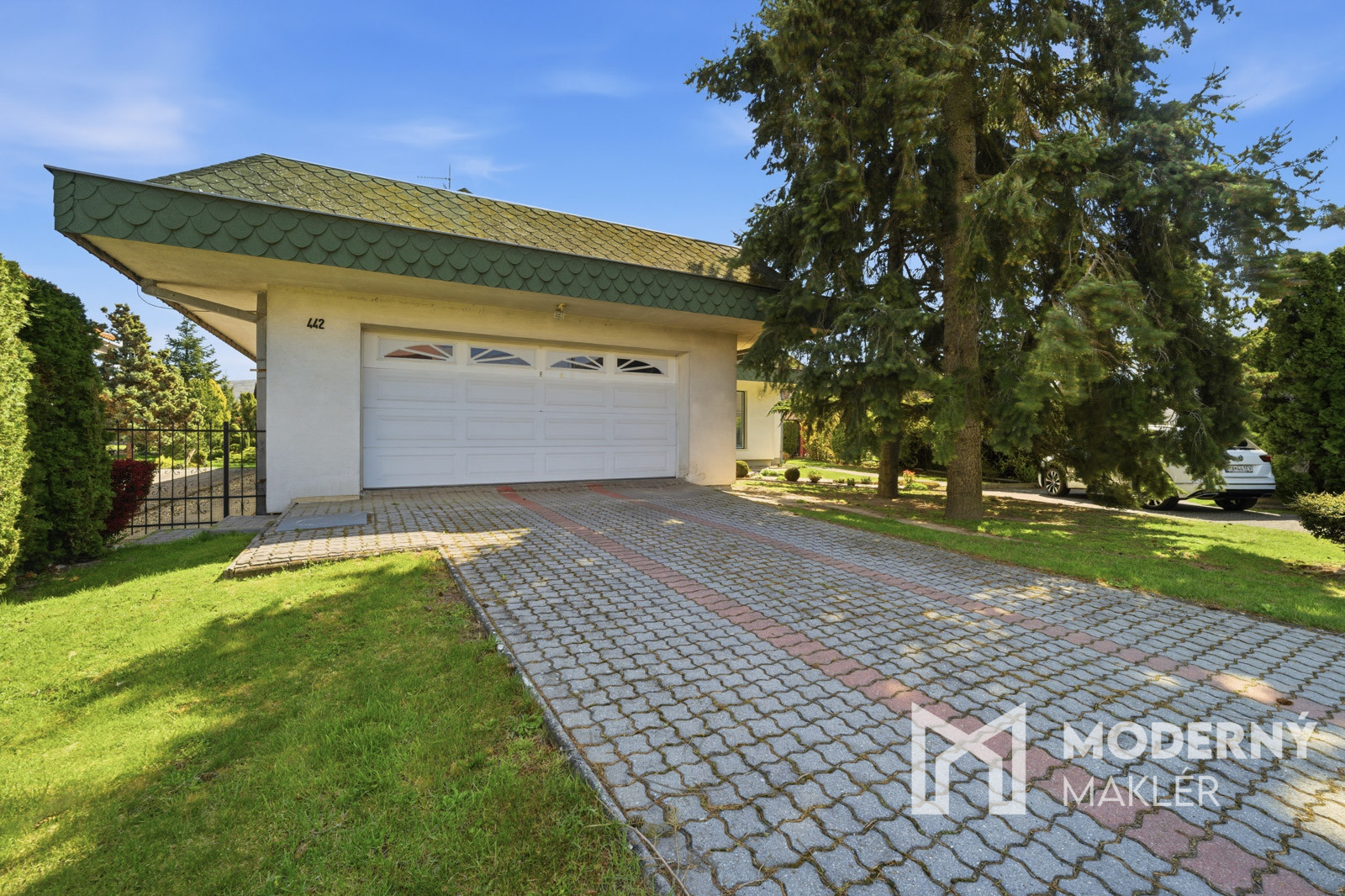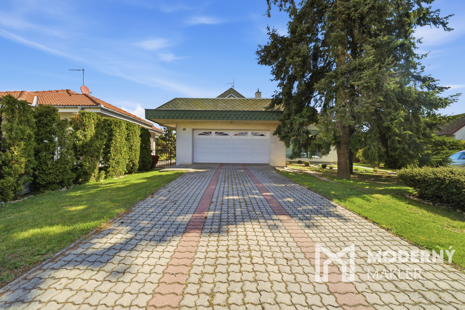 Moderný maklér ponúka na predaj 7-izbový samostatne stojaci dvojpodlažný rodinný dom s dvomi terasami, podpivničením a dvojgarážou, situovaný v pokojnej obci Jablonové, ktorá ponúka ideálne spojenie súkromia, prírody a komfortného rodinného bývania s výbornou dostupnosťou do Bratislavy ( cca 20–25 minút autom ) – čo predstavuje kompromis medzi pokojným bývaním a rýchlym dosahom mesta.