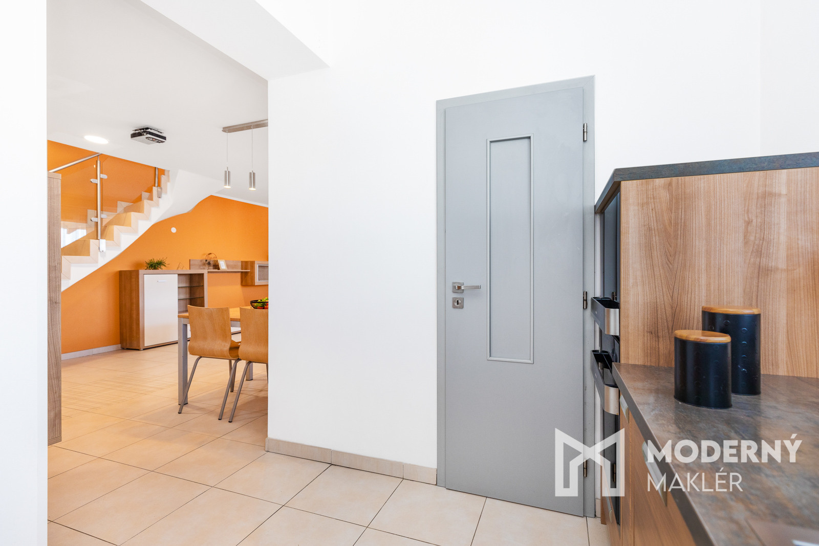 Po vstupe do nehnuteľnosti sa dostanete do priestrannej obývacej izby prepojenej s jedálenskou časťou, ktorá pôsobí mimoriadne vzdušne vďaka svojej veľkorysej rozlohe. Z obývacieho priestoru je priamy výstup na priestranný balkón, ktorý prirodzene rozširuje dennú zónu. Na dennú časť nadväzuje samostatná kuchyňa vybavená kuchynskou linkou vyrobenou na mieru a vstavanými spotrebičmi (sklo keramická varná doska, elektrická rúra, umývačka riadu a digestor). Pri kuchyni sa nachádza praktická komora pre dodatočné úložné priestory. Spodné podlažie dopĺňa samostatná toaleta spojená s práčovňou, ktorá ponúka dostatočný priestor pre umiestnenie práčky, sušičky a ďalšieho vybavenia.